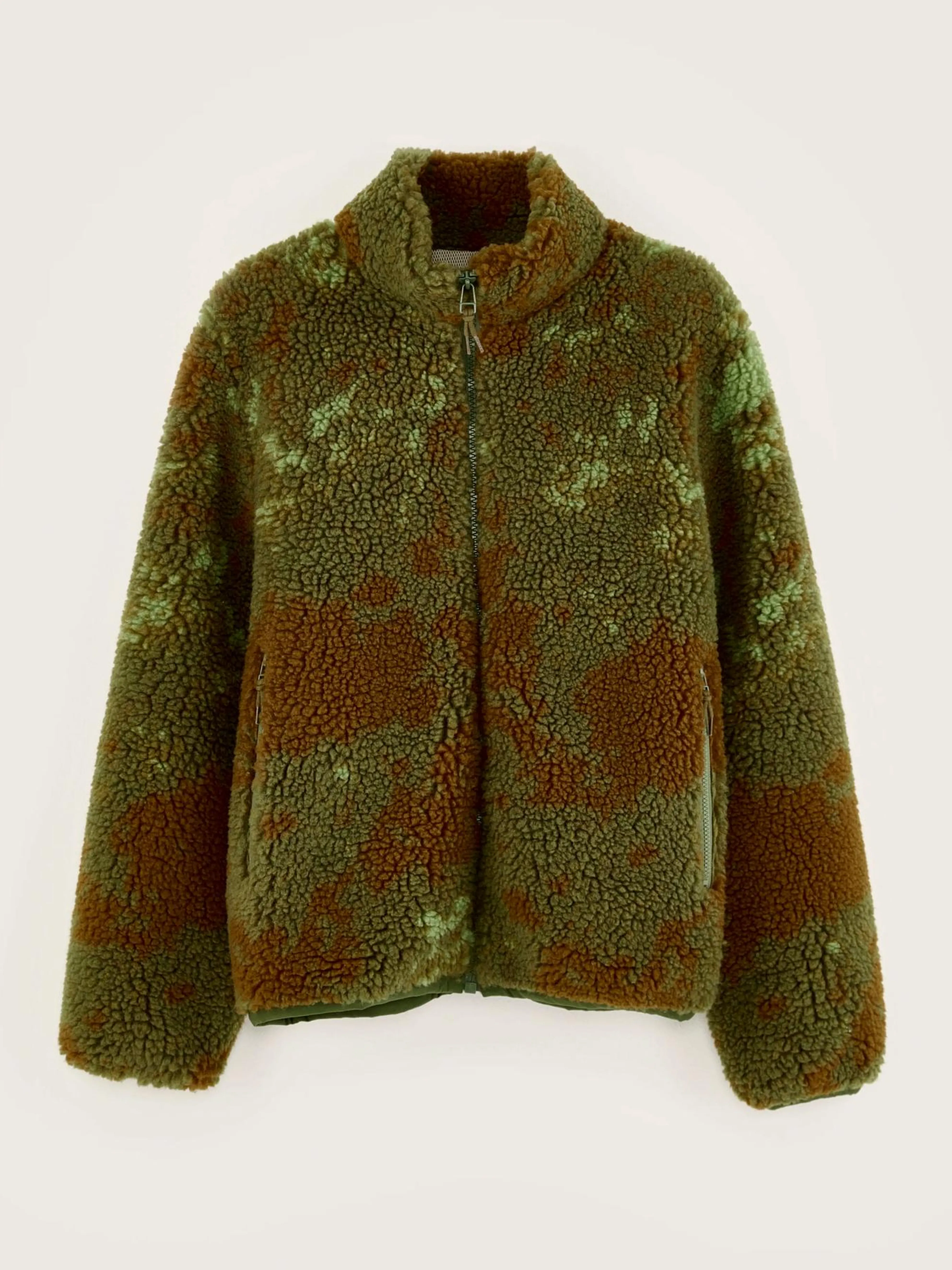 Relaxed sweatshirt met verlaagde mouwinzet en ritssluiting vooraan, van teddy met camouflageprint.