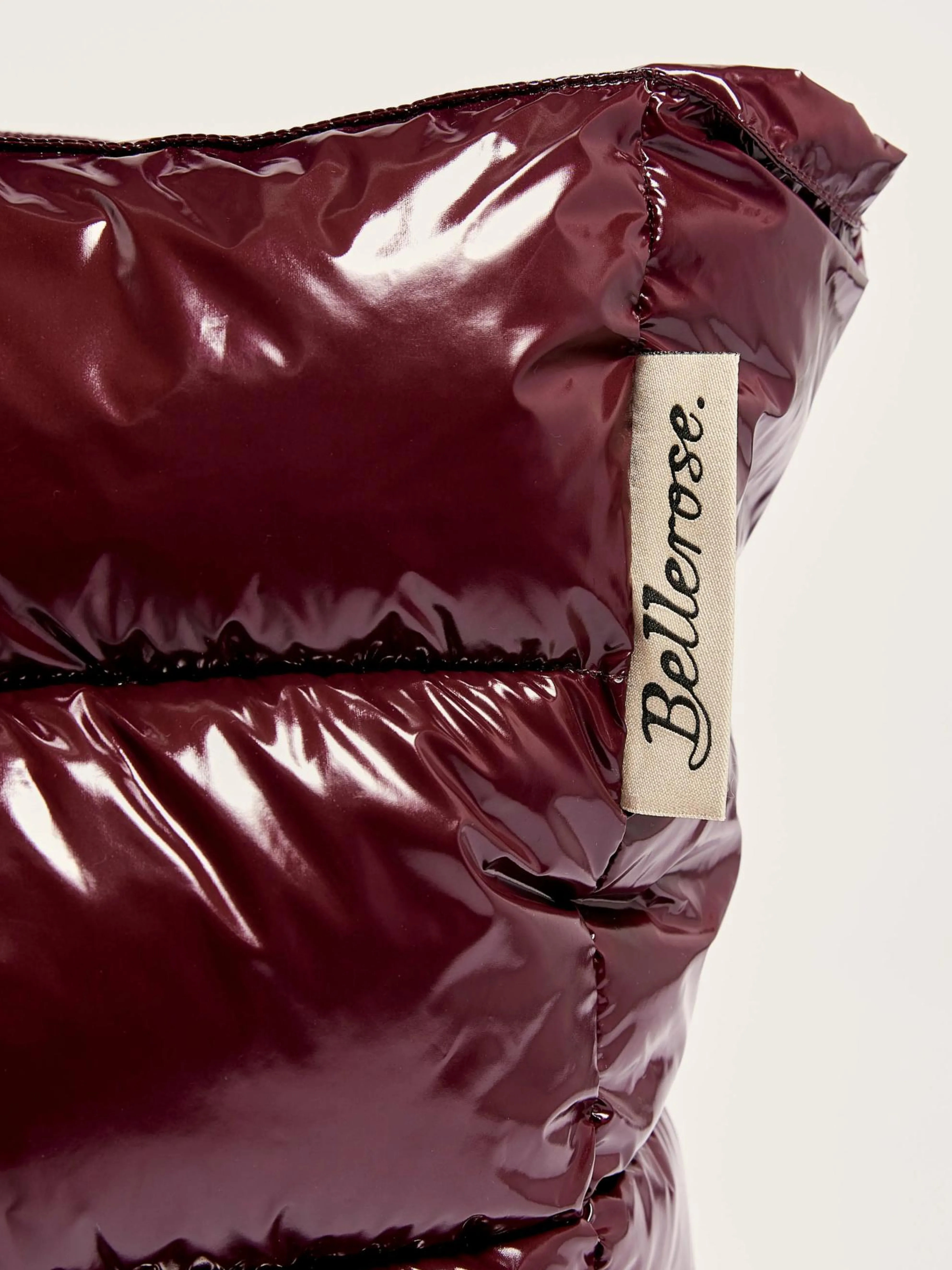 Gewatteerde totebag met ritssluiting bovenaan, van glanzend bordeaux ripstopnylon en met twee paar hengsels.