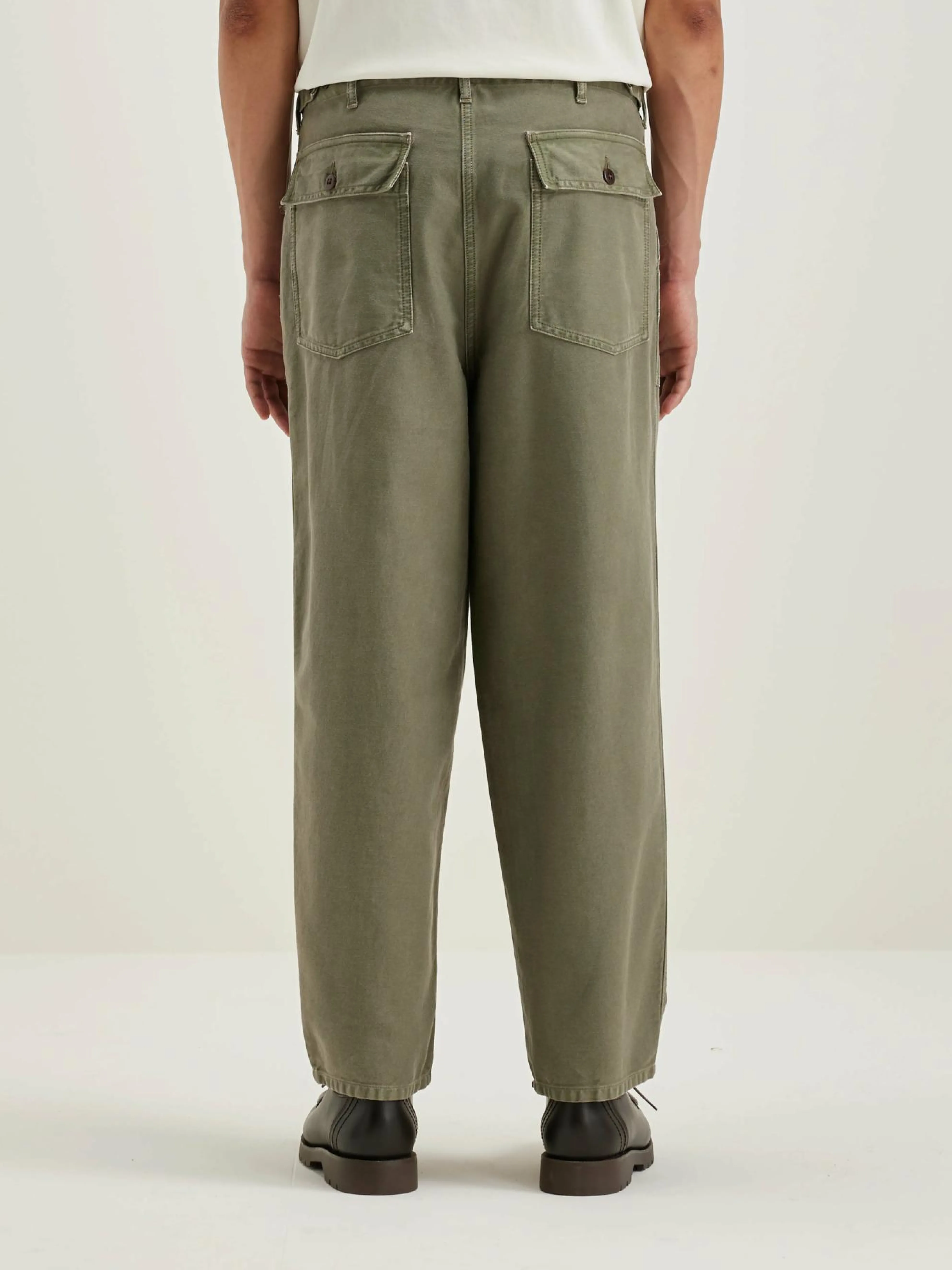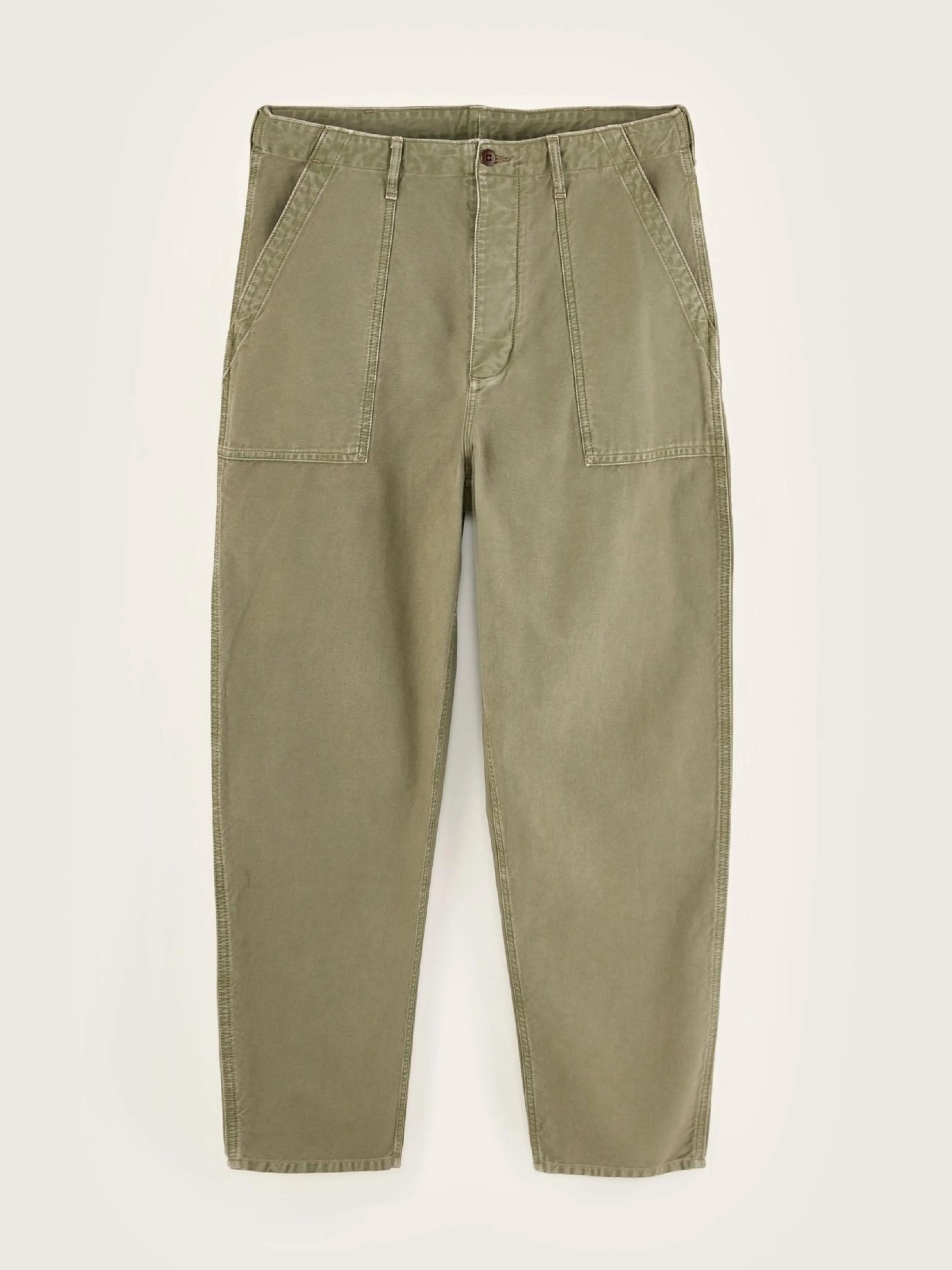 Relaxede broek in fatigue-stijl, van olijfgroen katoencanvas.