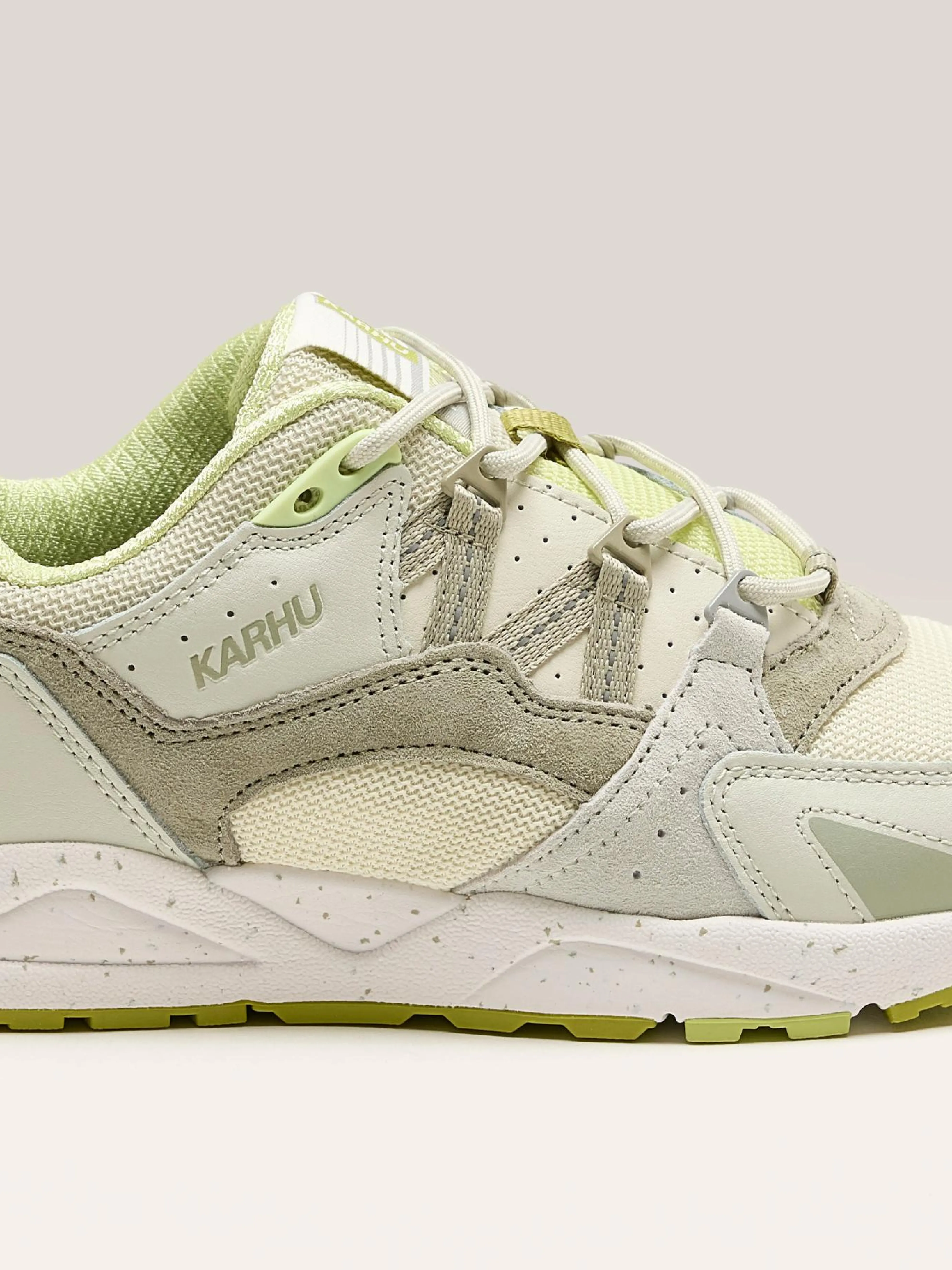 De Karhu Fusion 2.0 lifestyle sneakers hebben een bovenwerk van lederen, suède en waterafstotend mesh met iconische ontwerpdetails.