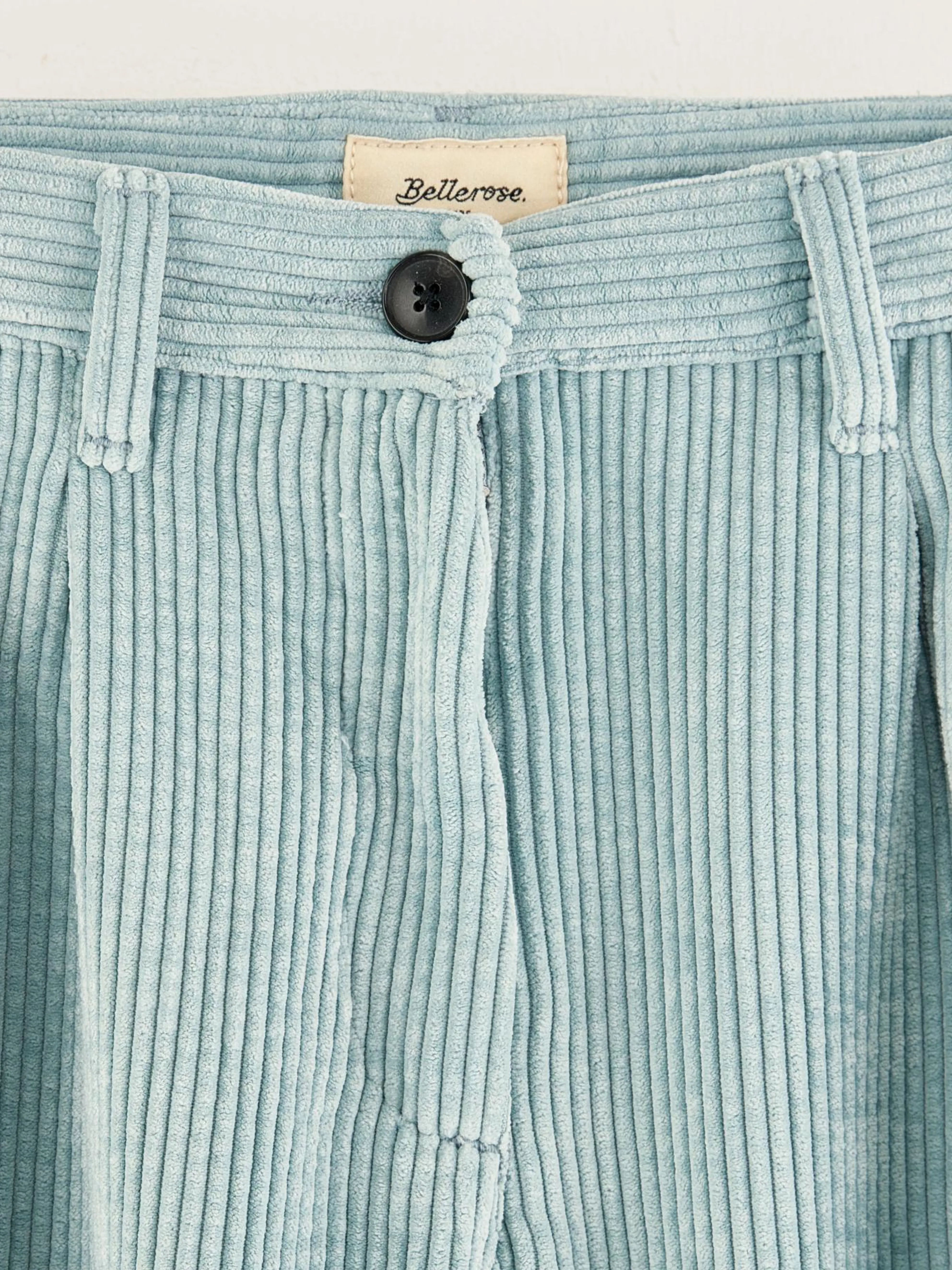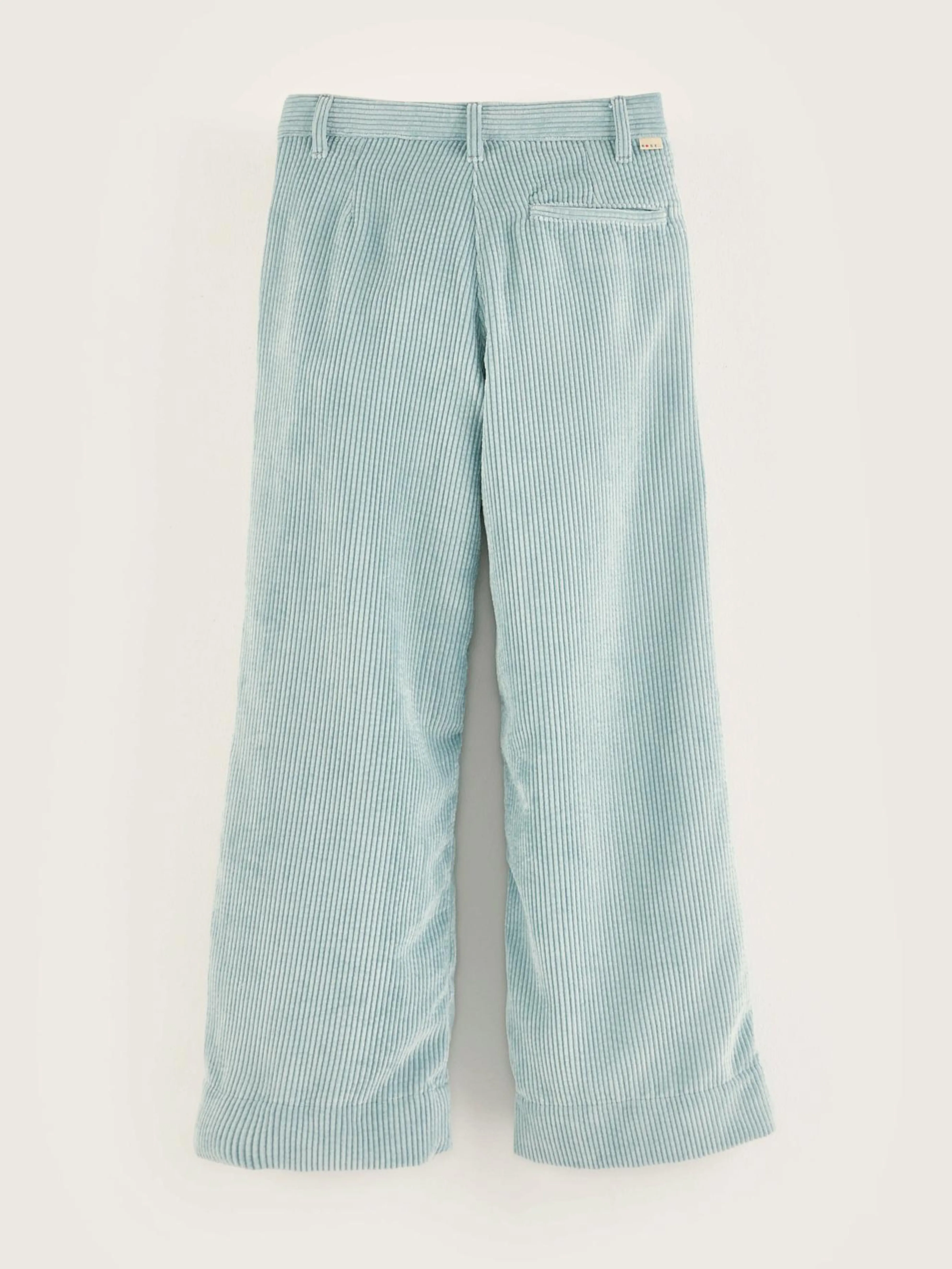 Blauwe broek met tailored fit en hoge taille, van corduroy met brede rib.