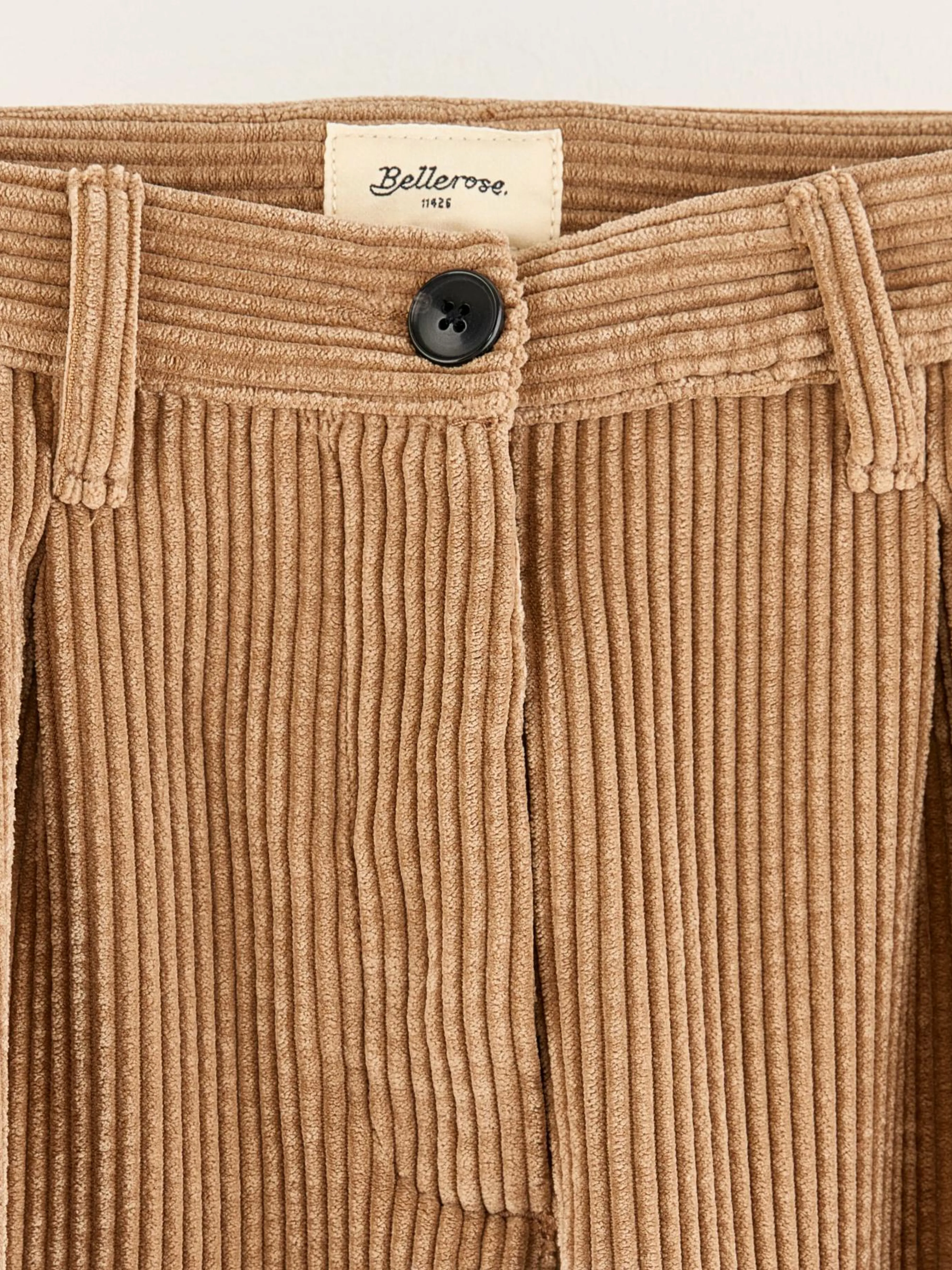 Beige broek met tailored fit en hoge taille, van corduroy met brede rib.