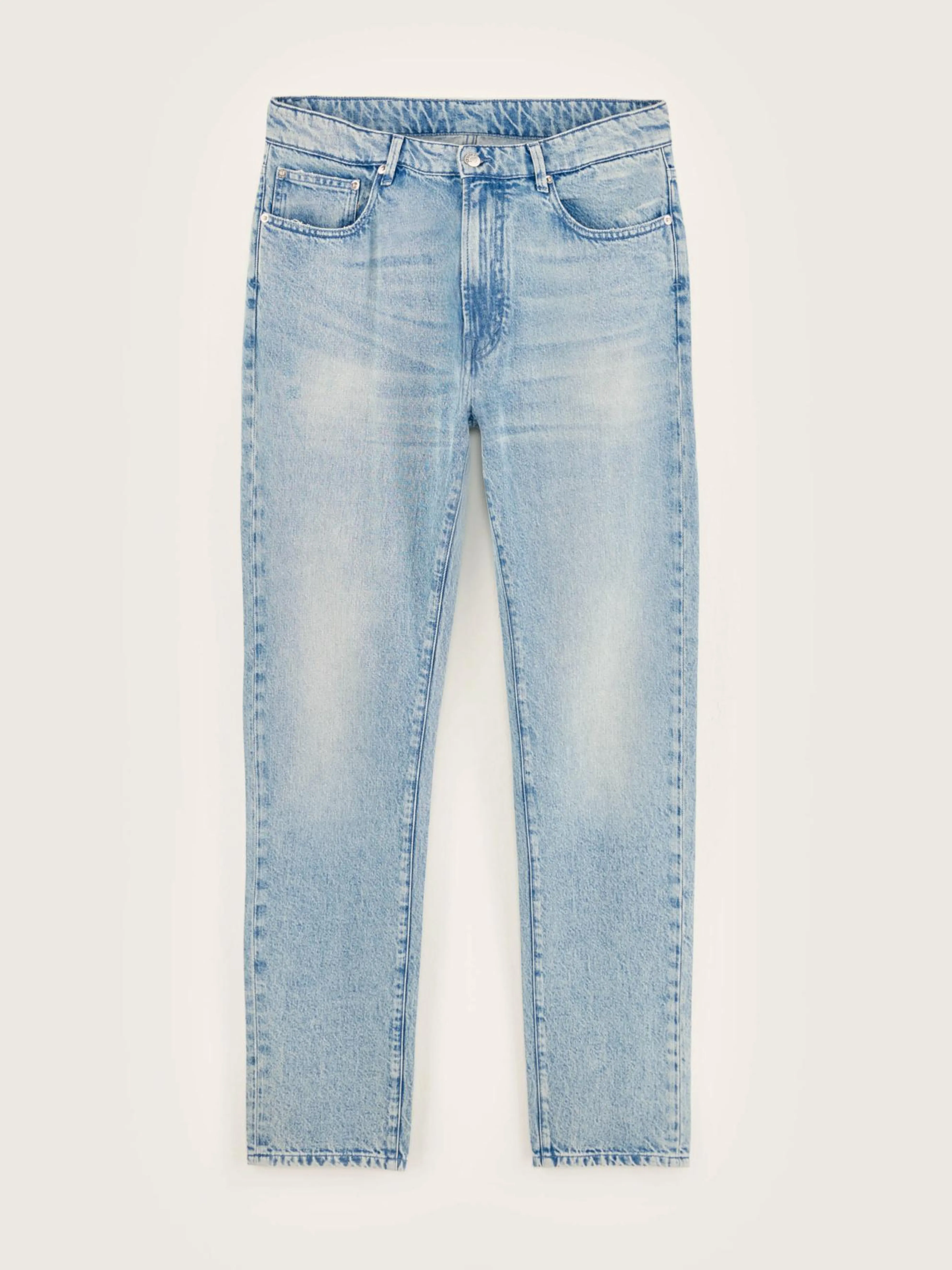 Regular fit jeans met normale taille, van lichtblauw gebleekt katoendenim.