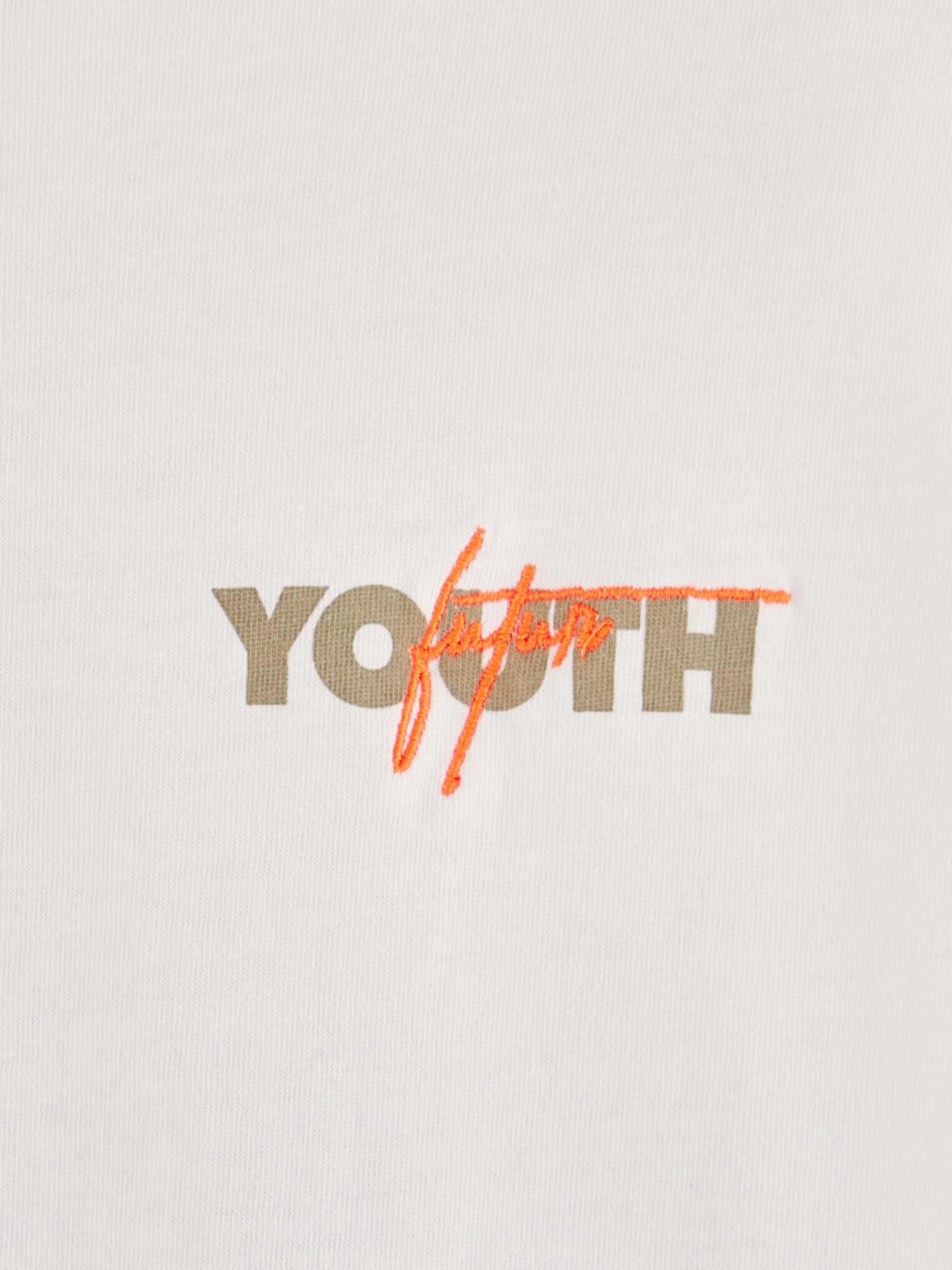 Comfortabel wit T-shirt van geborstelde katoenjersey met borduursel op de borst en een fotoprint op de rug.