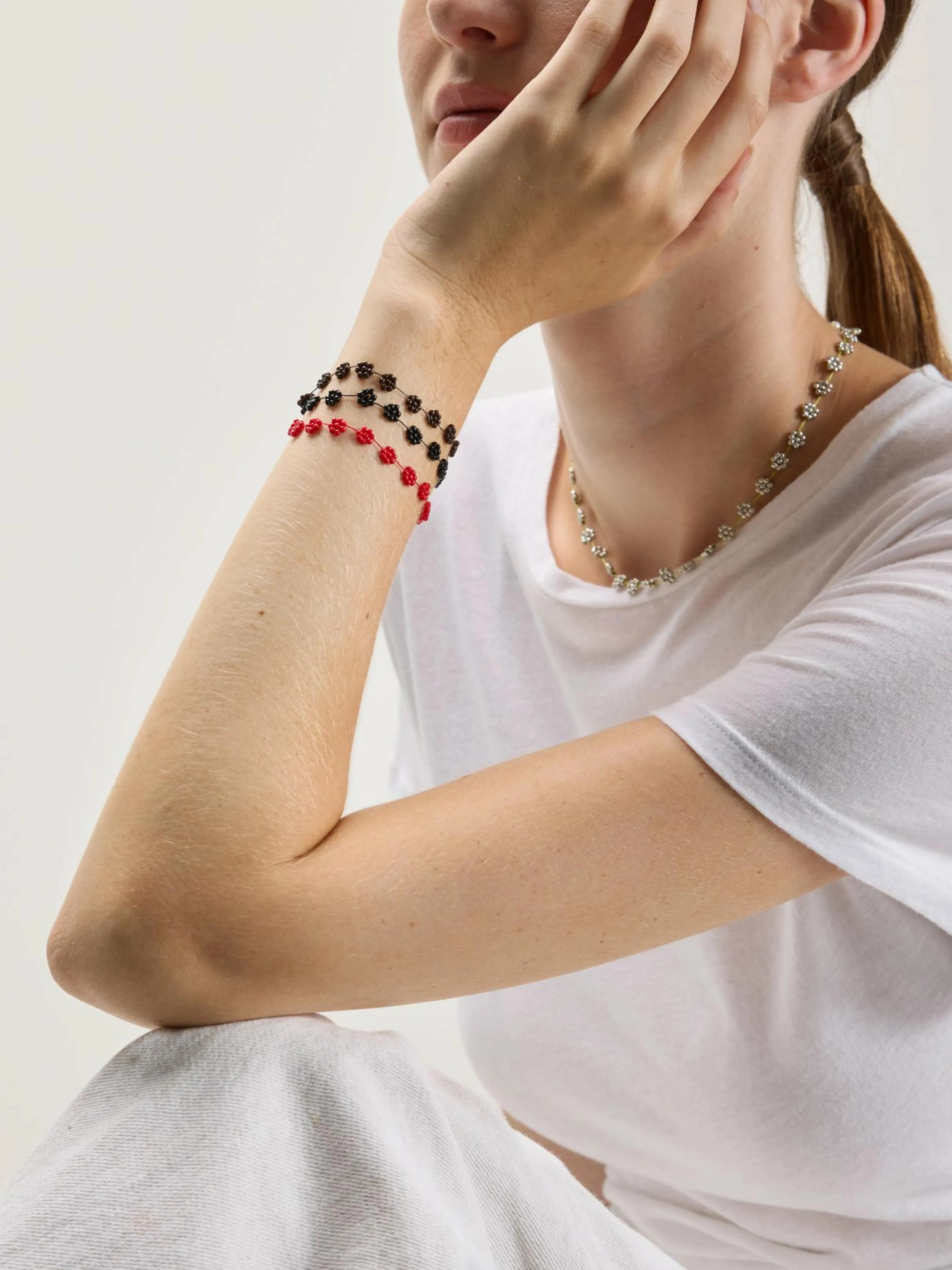 De prachtige Labro Fiori armband heeft glaskralen op een duurzaam nylondraad met een stevige sluiting.