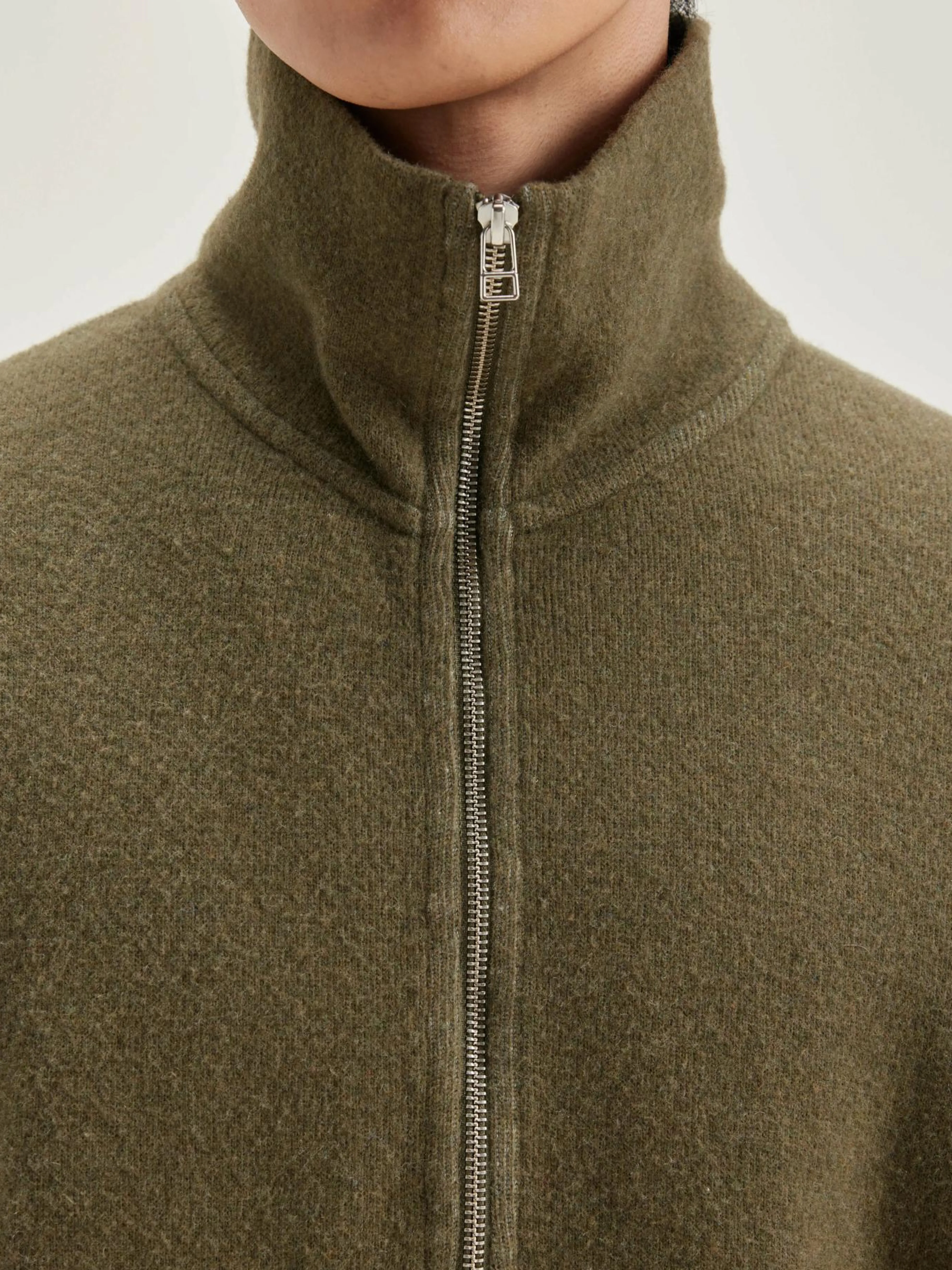 Comfortabele sweatshirt met opstaande kraag en halve ritssluiting, van kakigroene jersey.