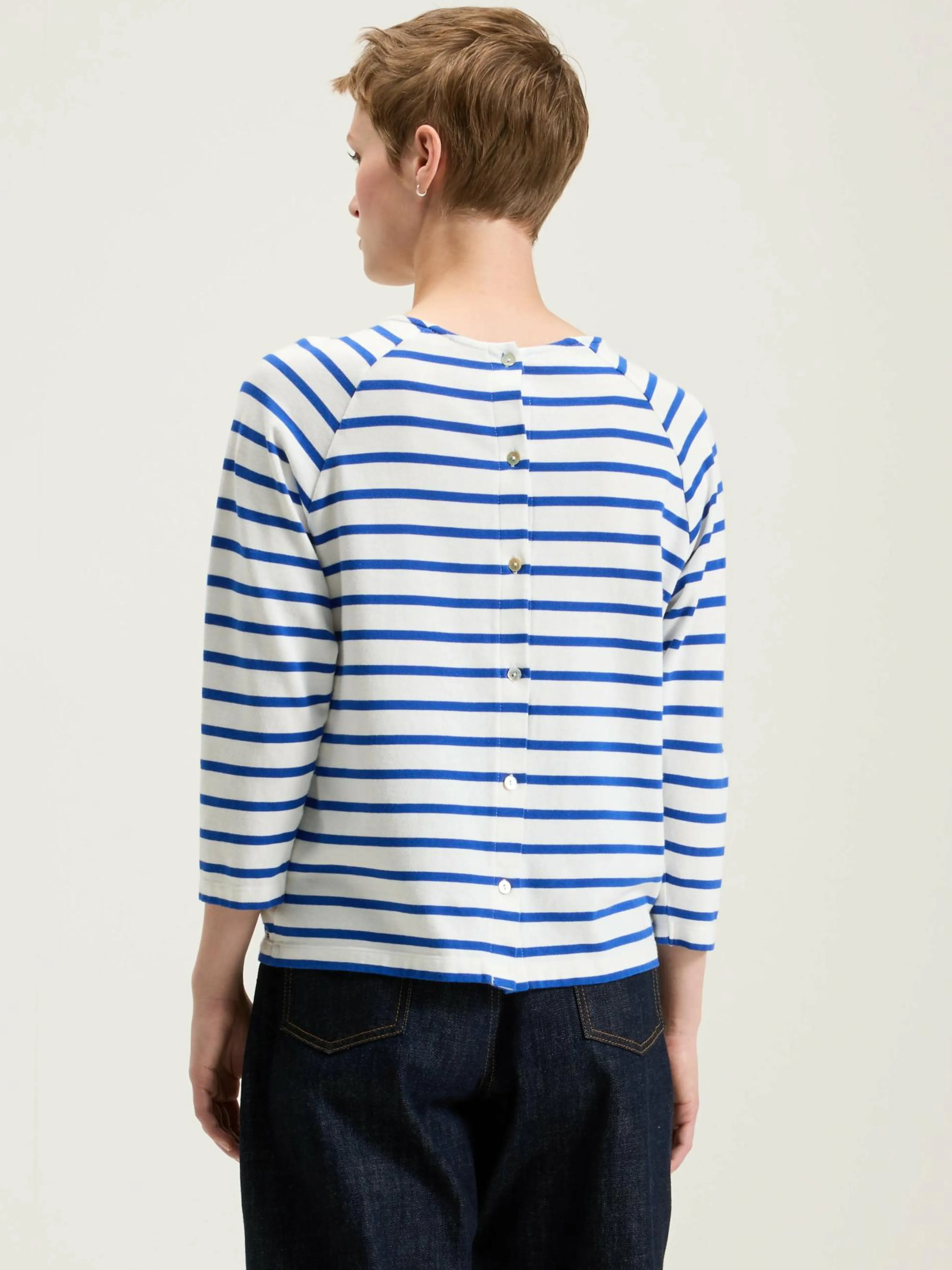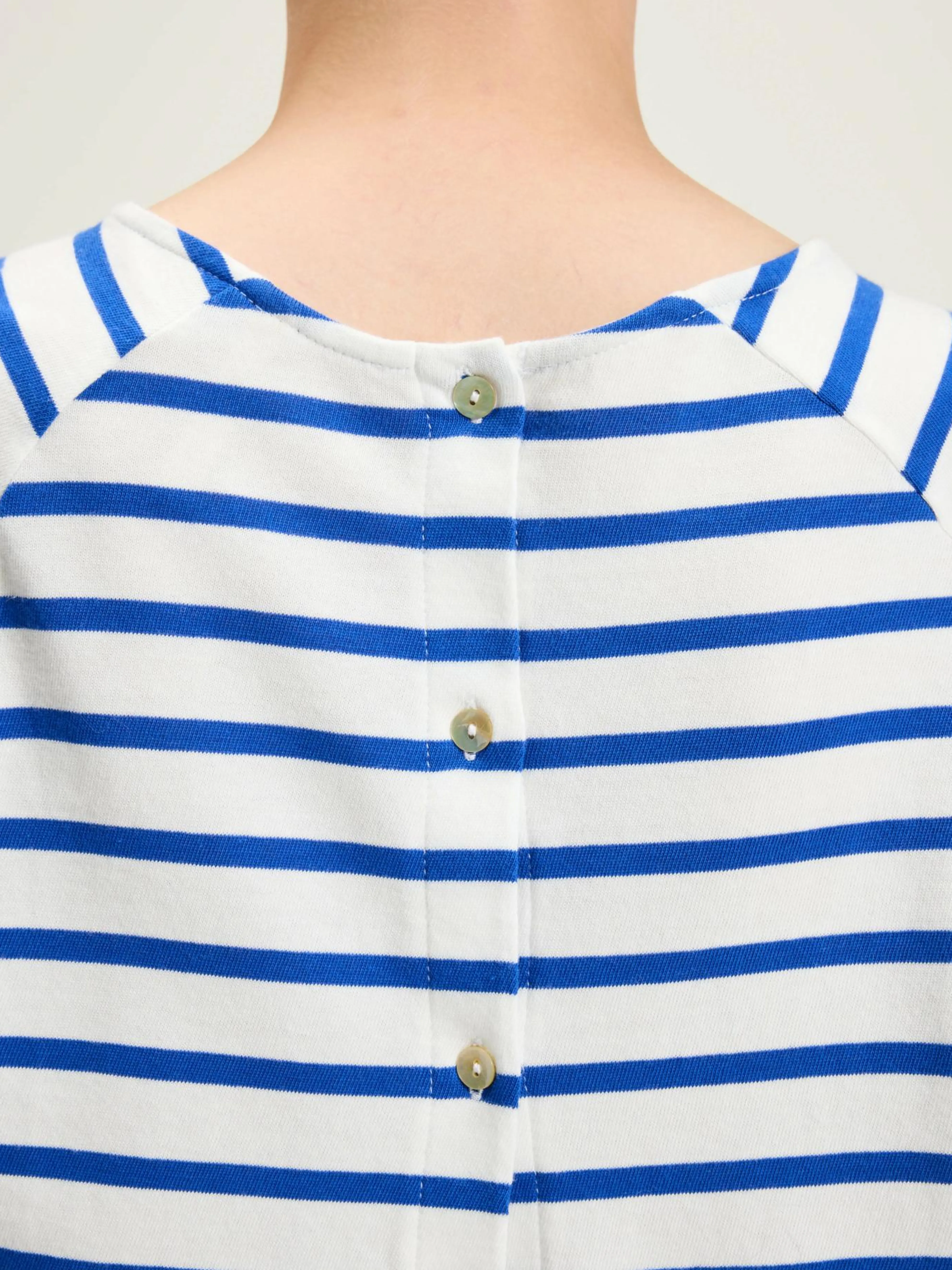 Klassiek crewneck t-shirt met raglanmouwen en knoop op de rug, gemaakt van zware, gestreepte katoenen jersey.
