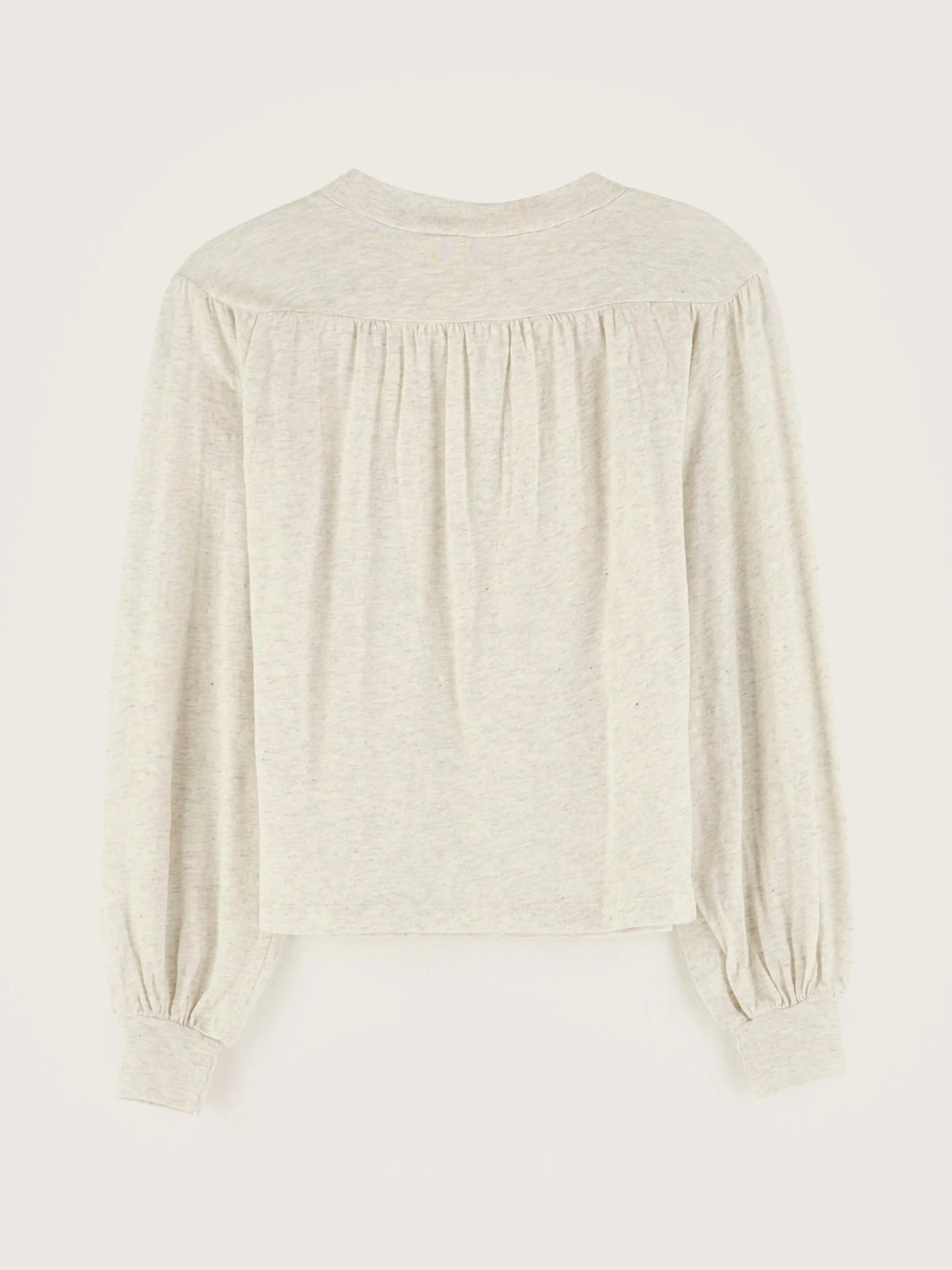 Heidegrijs, comfortabel T-shirt met lange mouwen.