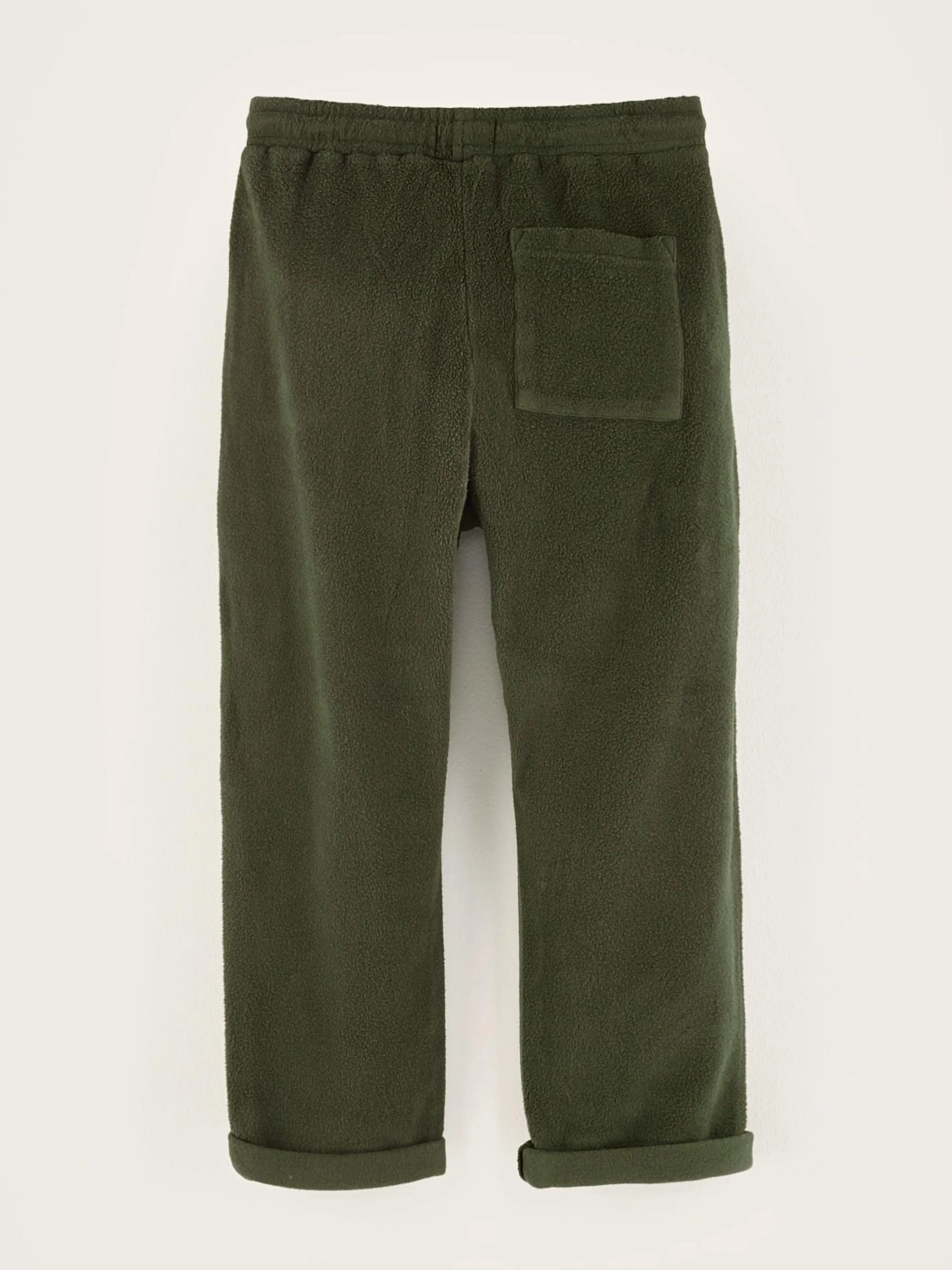 Comfortabele jogging broek van geborstelde legergroene katoenjersey.