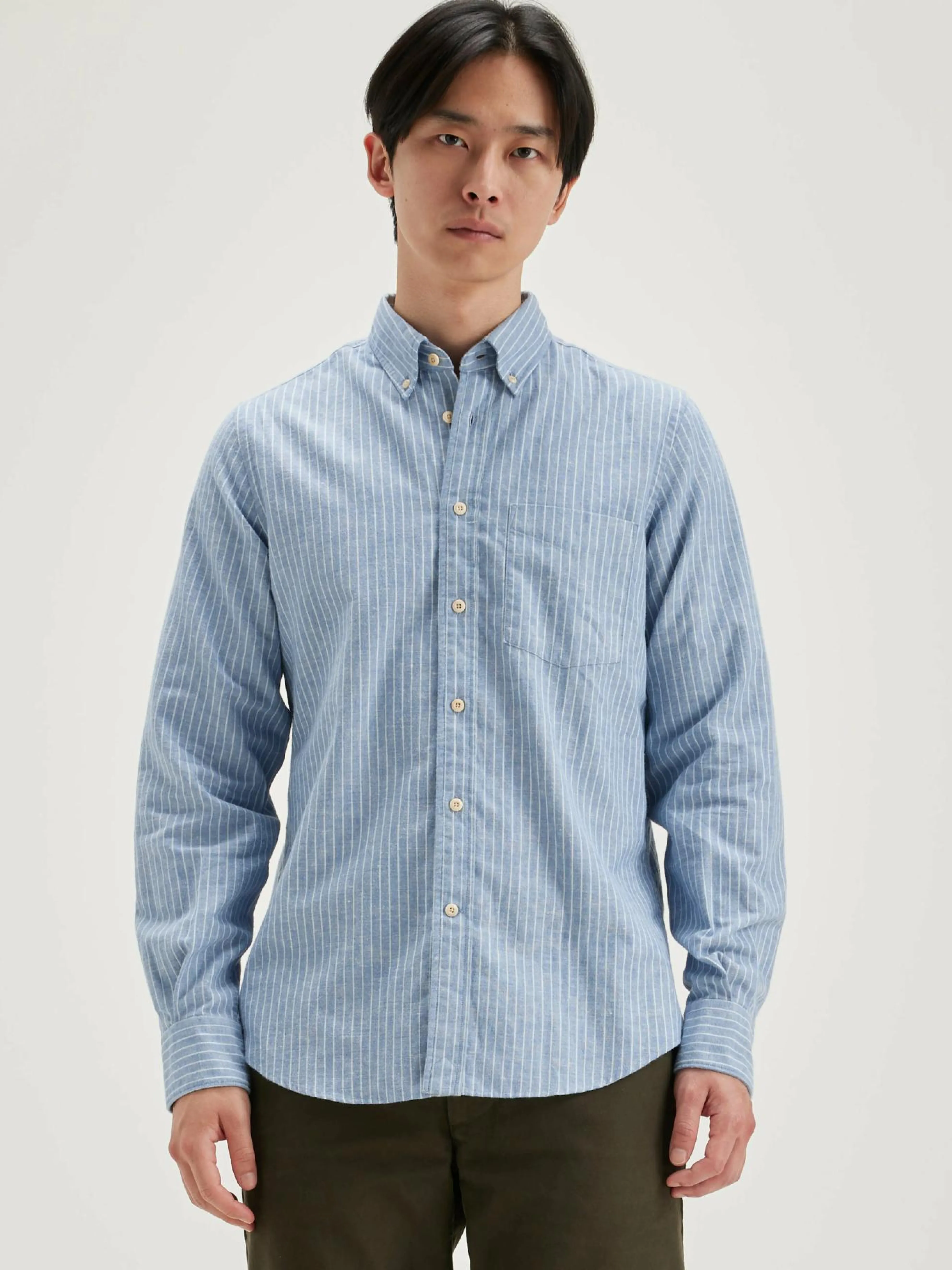 Aansluitend button-down overhemd van gestreept popeline katoen.