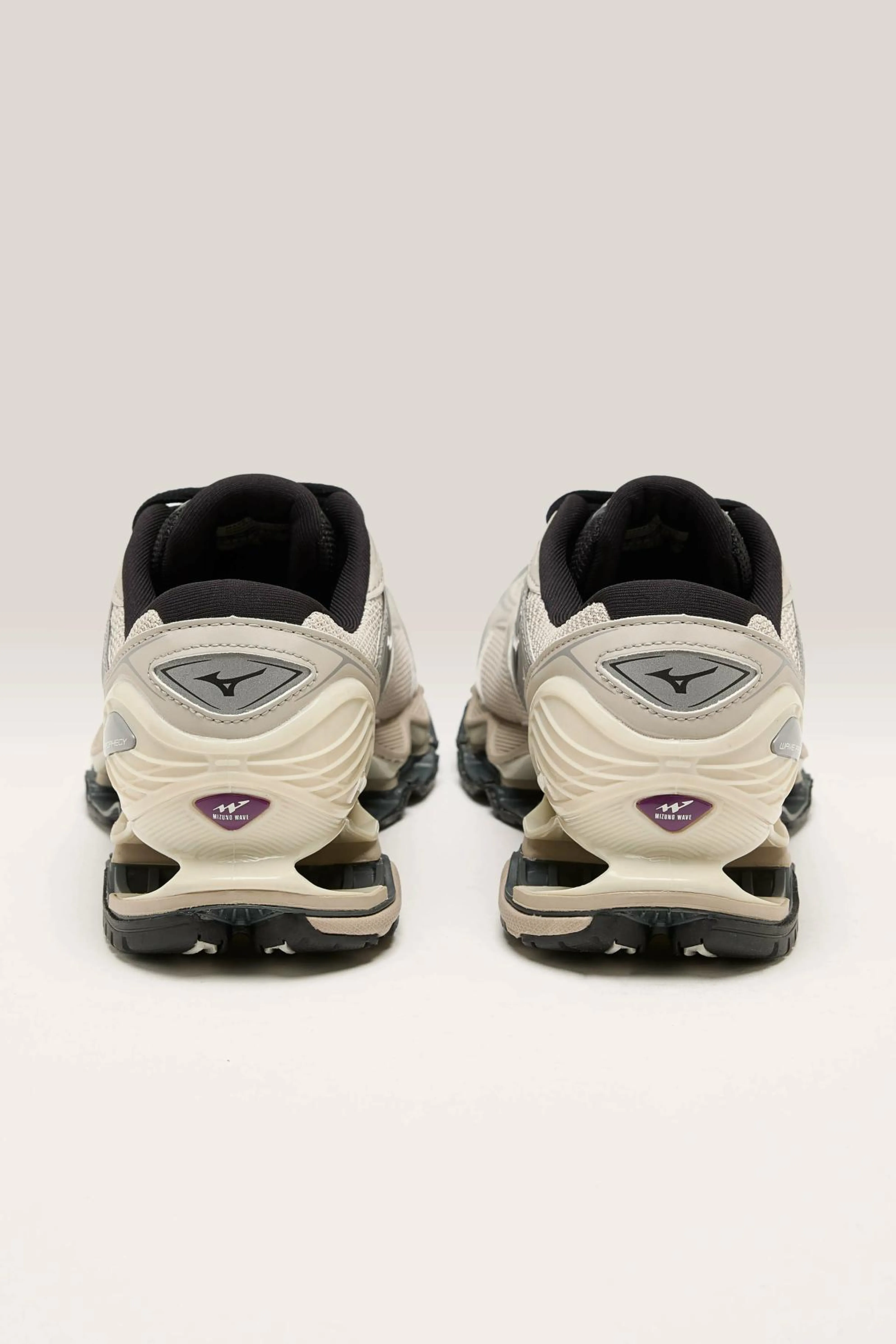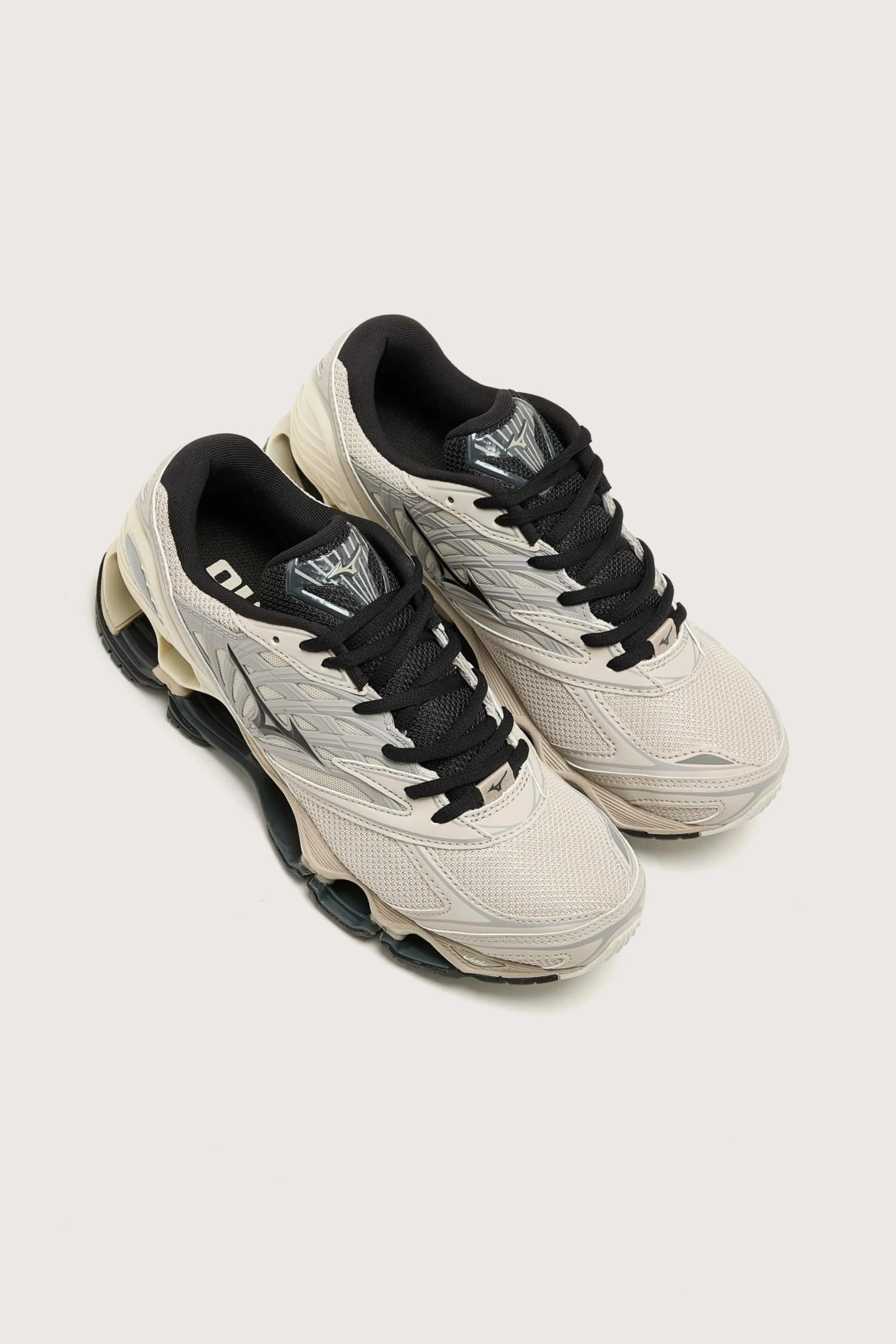 The Wave Prophecy LS sportstyle sneakers feature an evolutionary midsole with a Mizuno carbon rubber outsole for more extended wear with more cushion and traction.