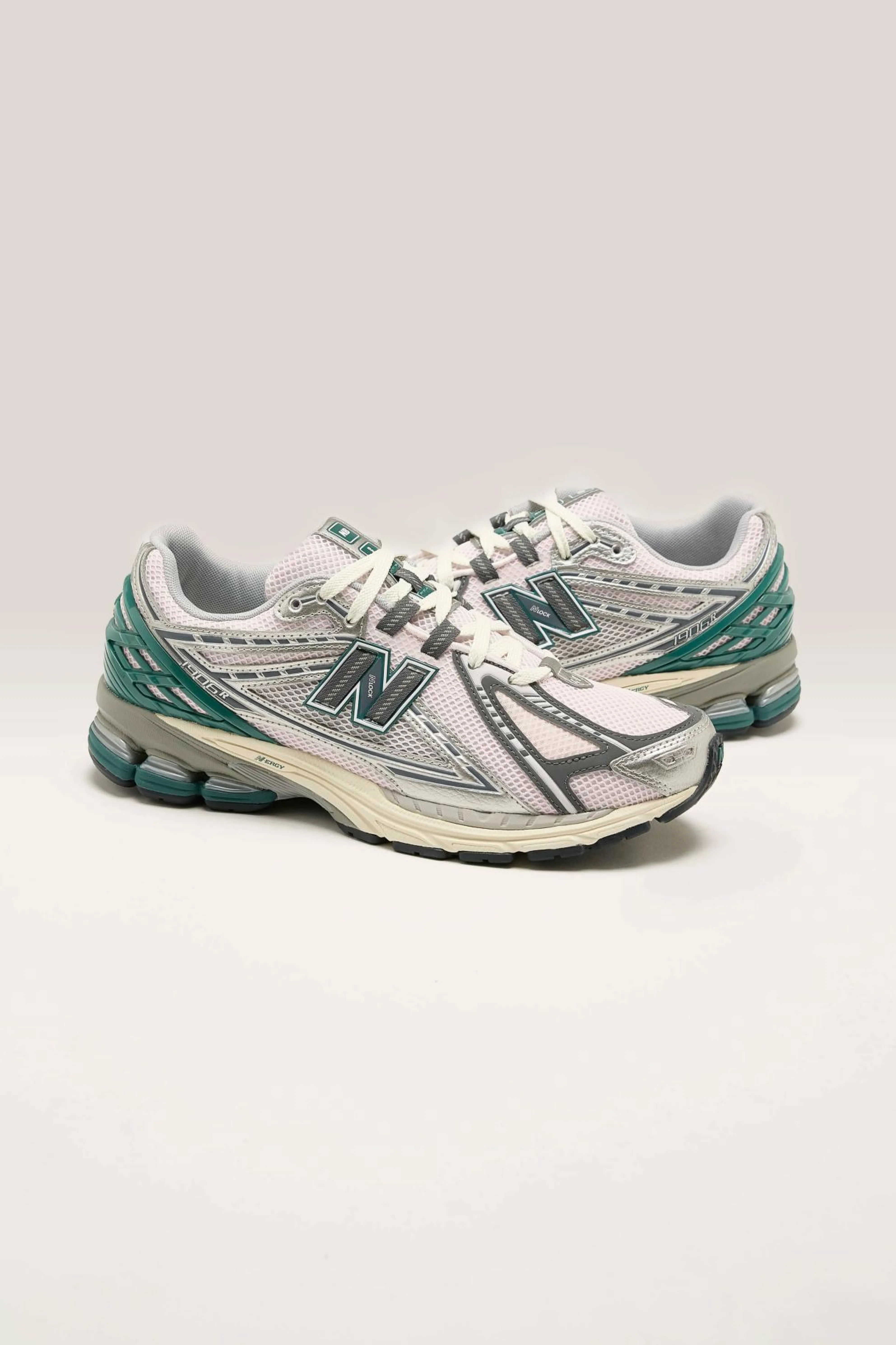 The New Balance 1906R lifestyle sneaker has a mesh upper with synthetic overlays and a specialized, cushioned midsole and heel.