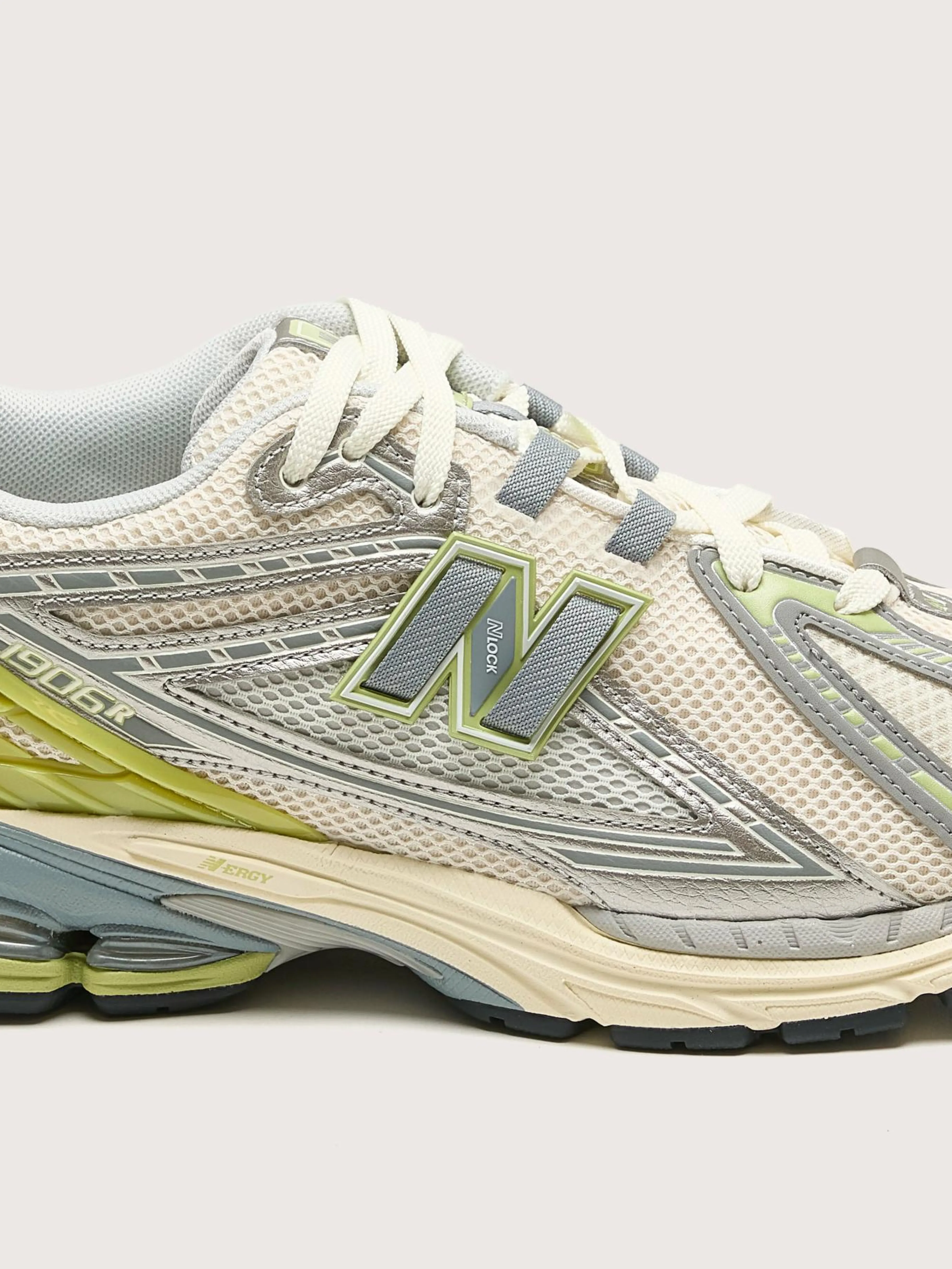 De New Balance 1906R hardloopschoenen hebben een bovenwerk van mesh met synthetische overlays en een gespecialiseerde, dempende middenzool en hiel.