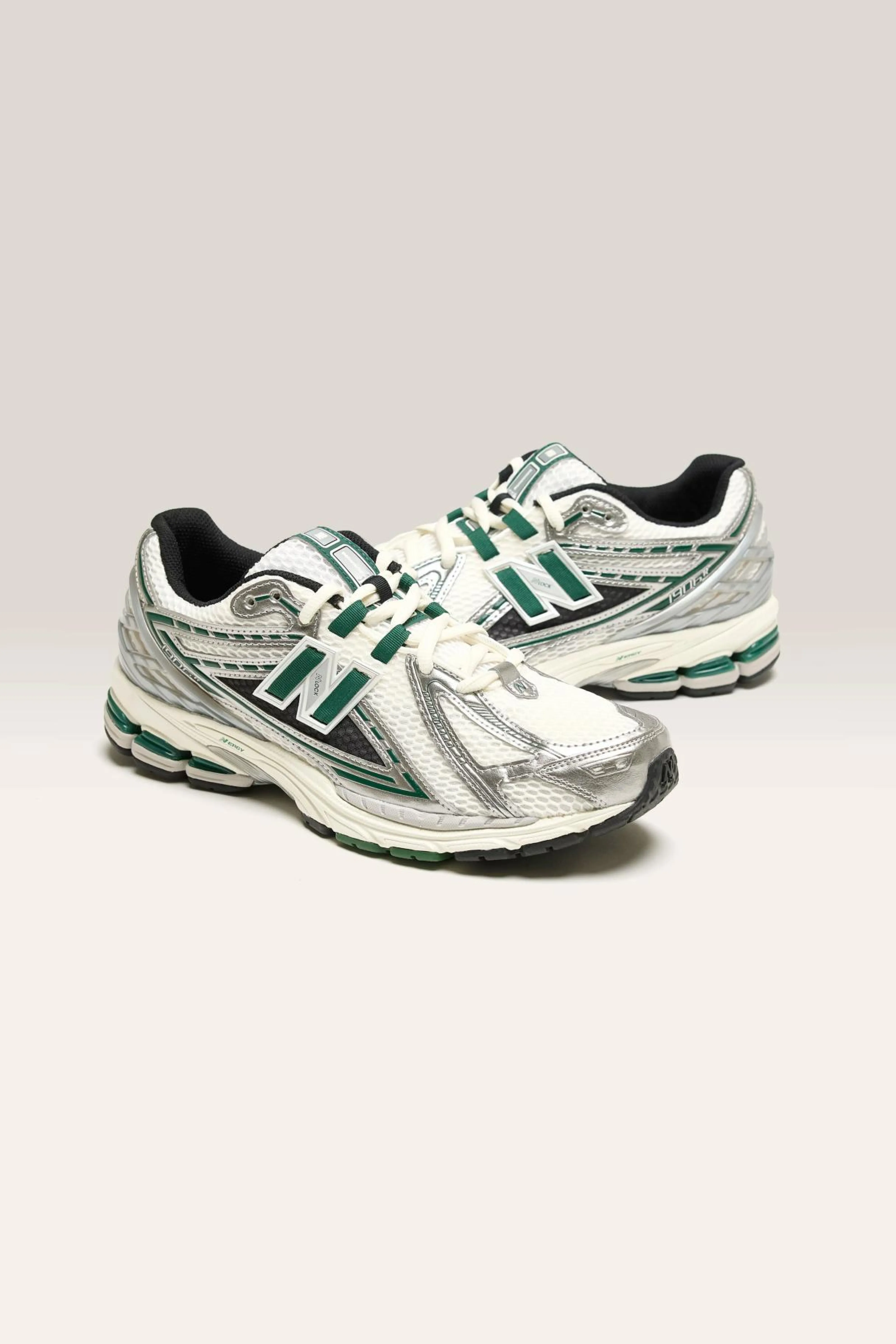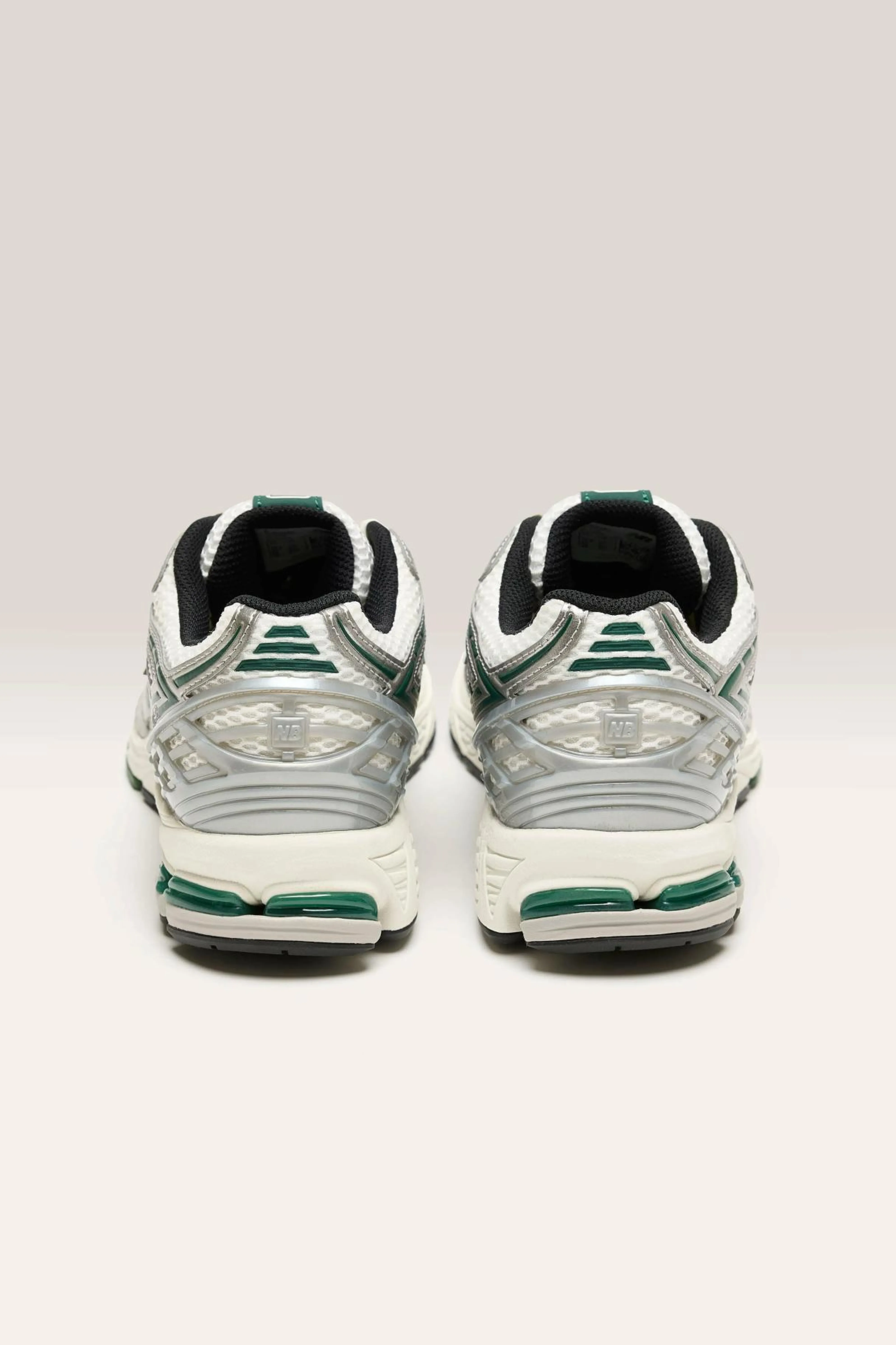 The New Balance 1906R lifestyle sneaker has a mesh upper with synthetic overlays and a specialized, cushioned midsole and heel.