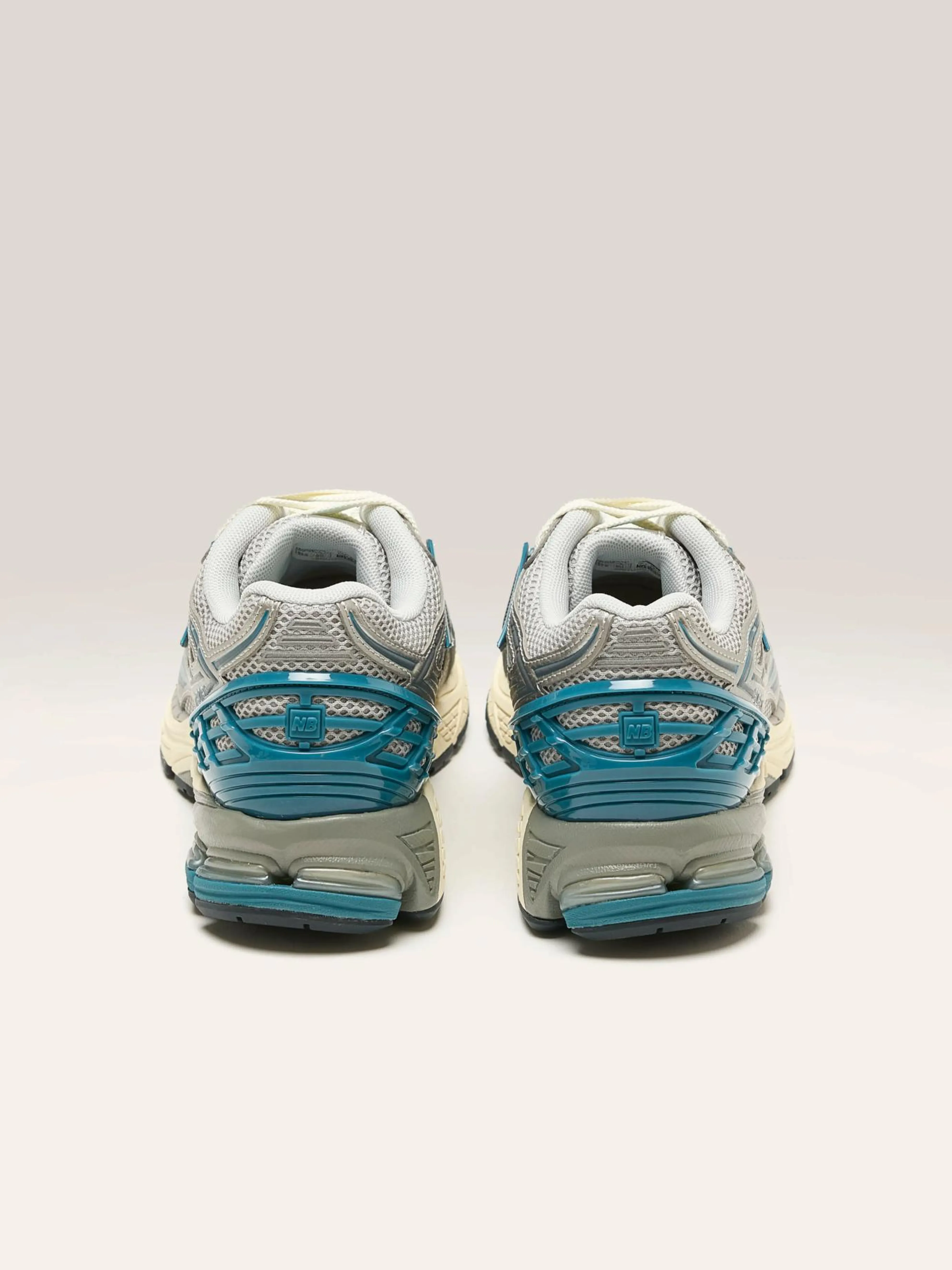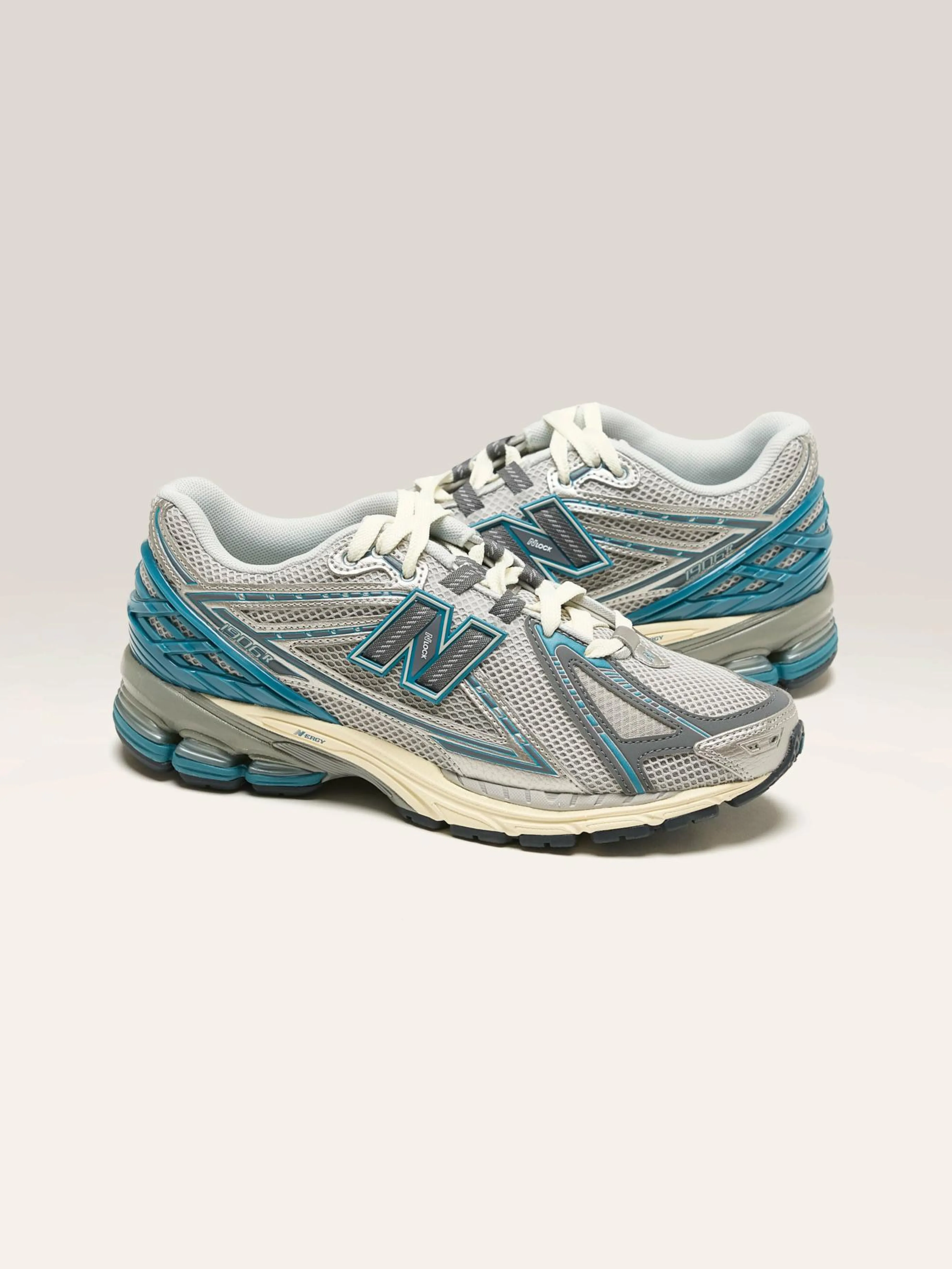 De New Balance 1906R hardloopschoenen hebben een bovenwerk van mesh met synthetische overlays en een gespecialiseerde, dempende middenzool en hiel.
