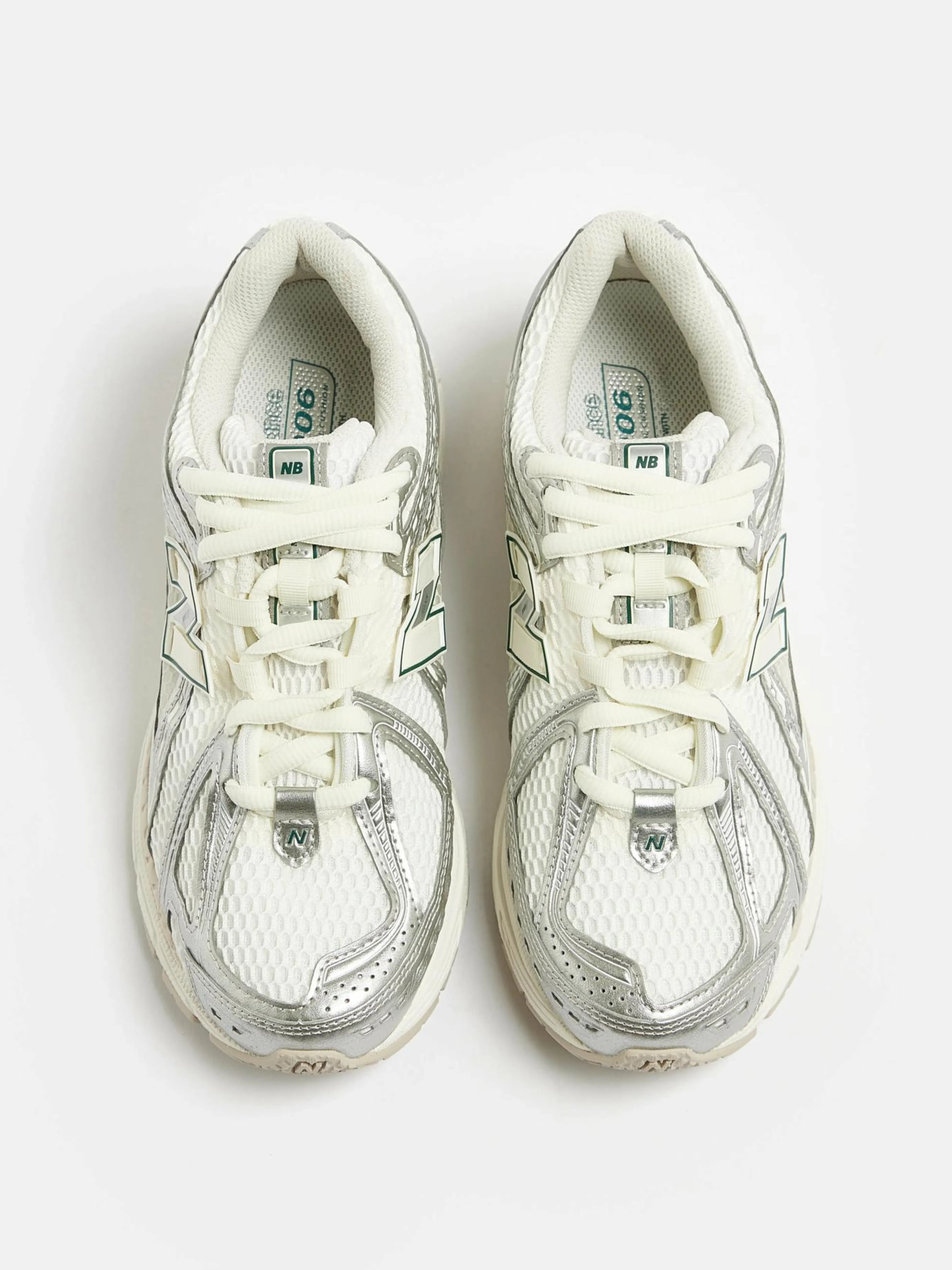De New Balance 1906R hardloopschoenen hebben een bovenwerk van mesh met synthetische overlays en een dempende ABZORB middenzool en hiel.