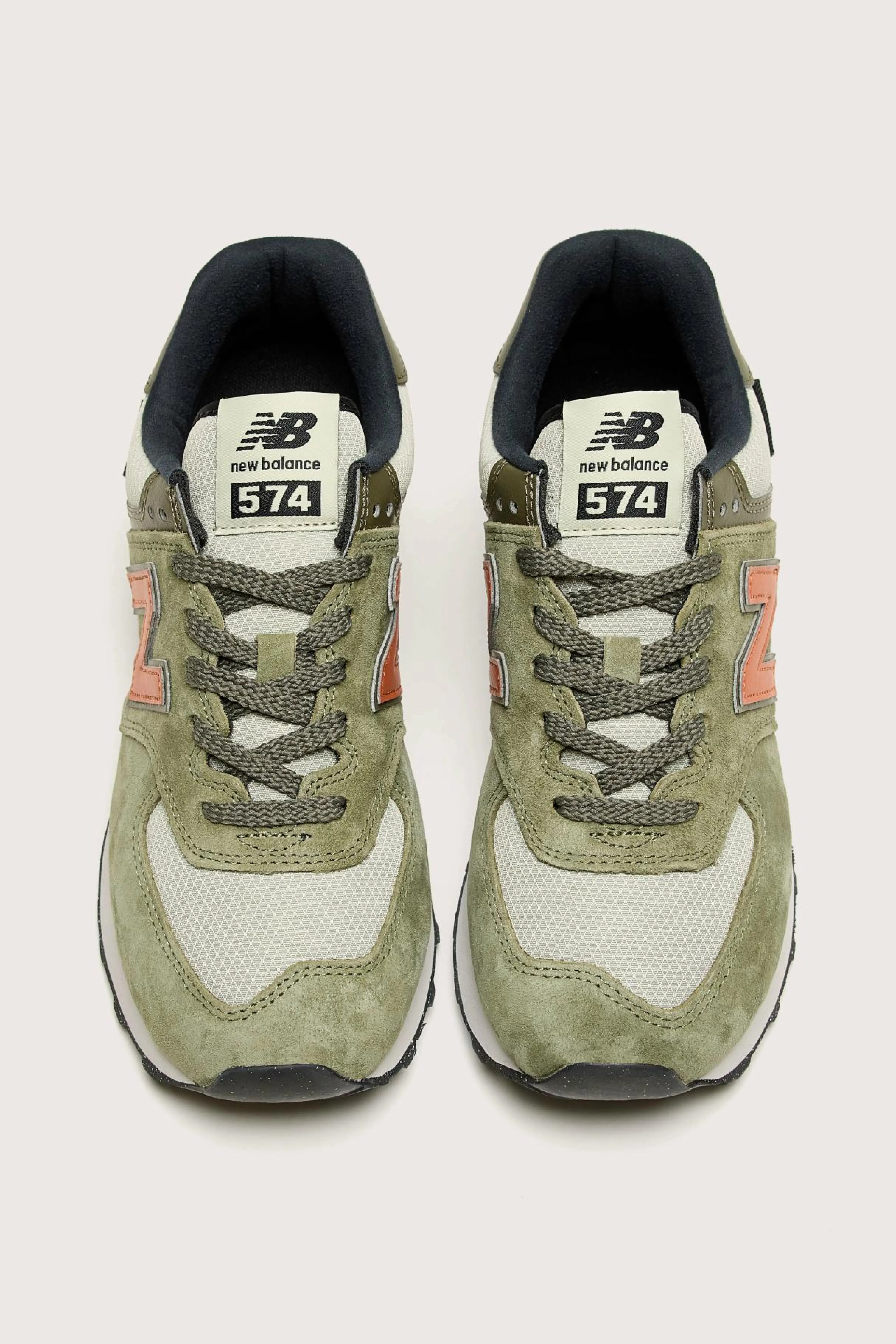The New Balance 574 lifestyle sneaker features a suede hybrid road/trail design with lightweight EVA cushioning.