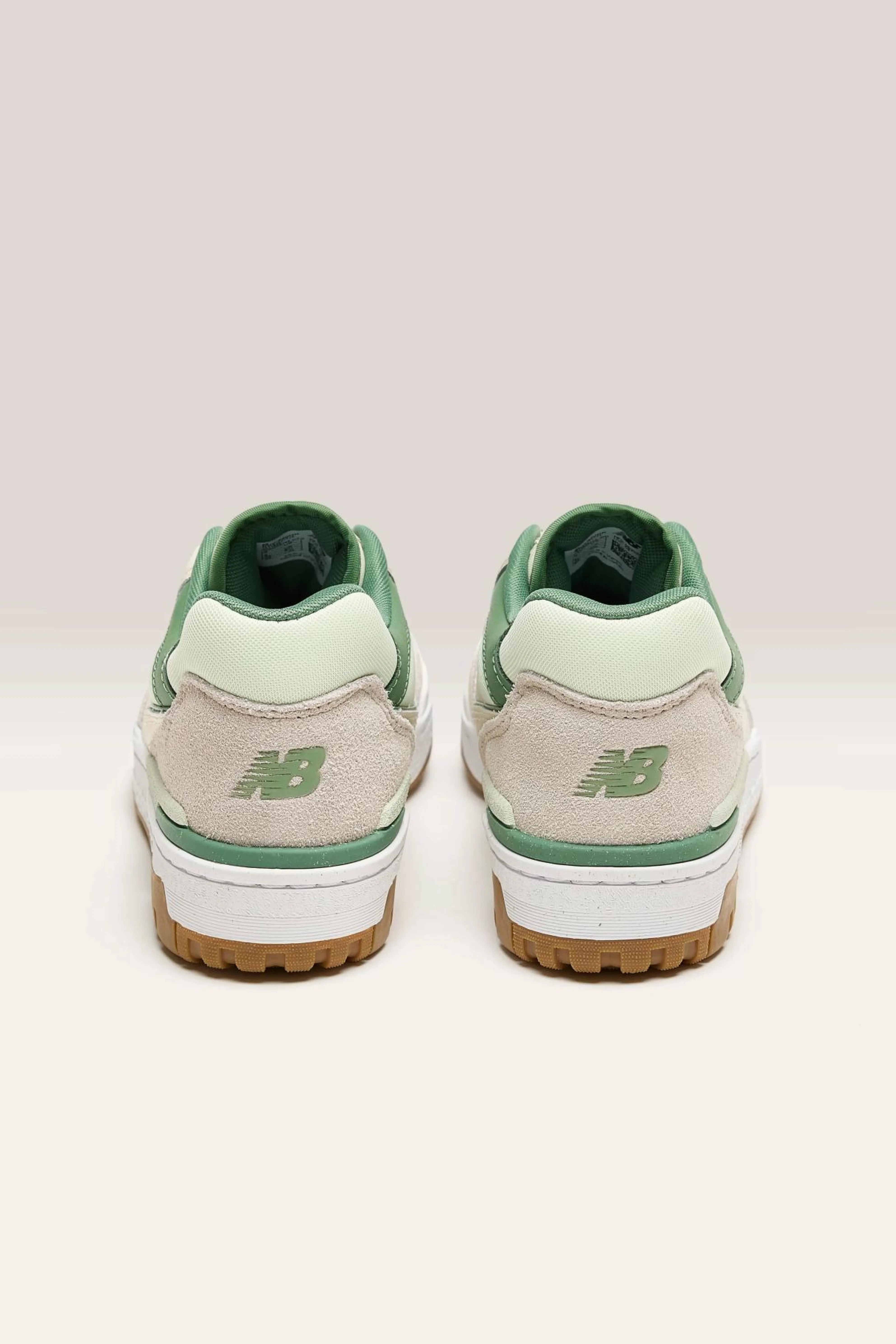 The New Balance BBW550 low-top lifestyle sneakers feature a dependable leather, synthetic suede, and mesh upper design.
