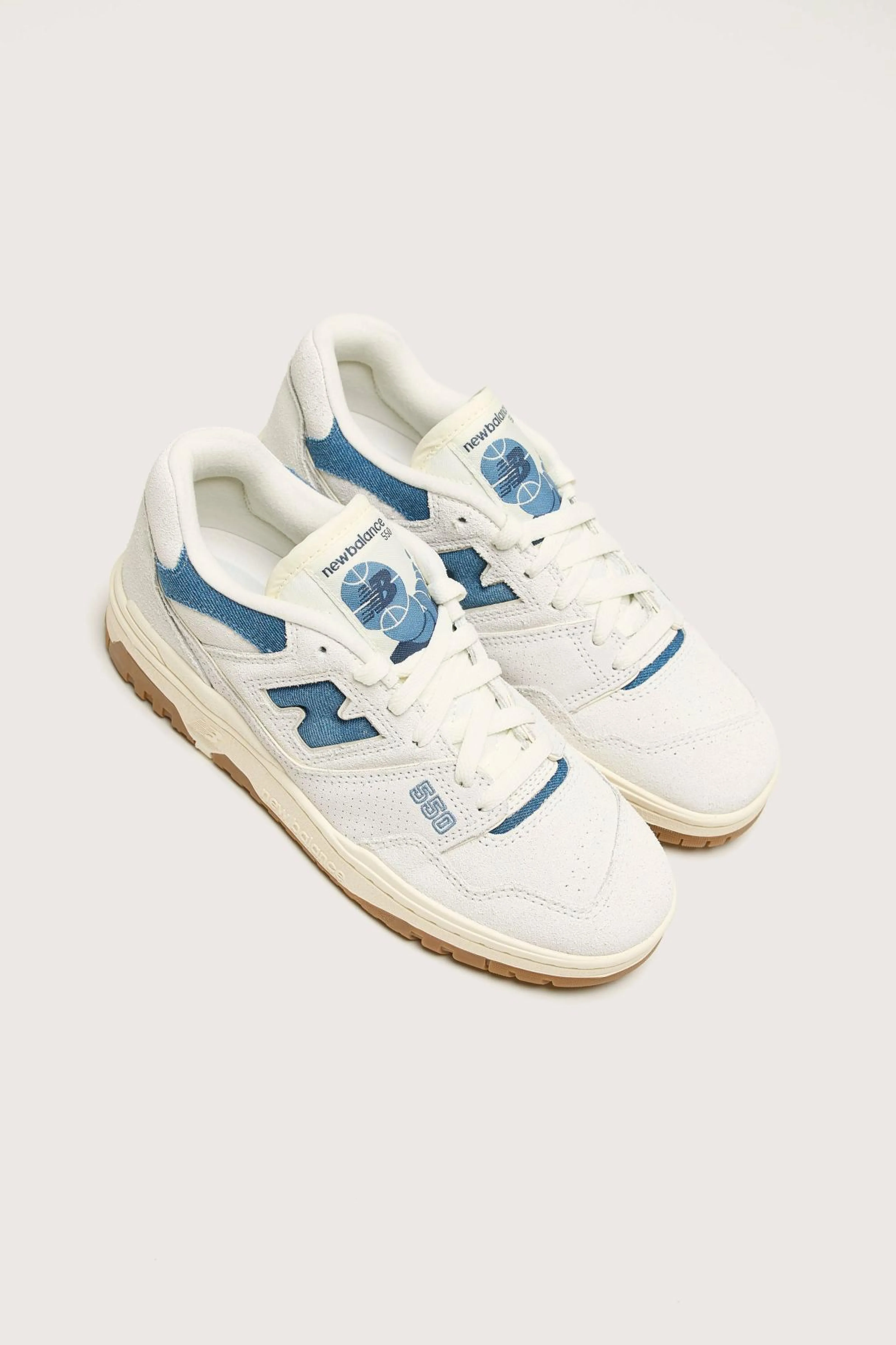 The New Balance BBW550 low-top lifestyle sneakers feature a dependable leather, synthetic, and mesh upper design.