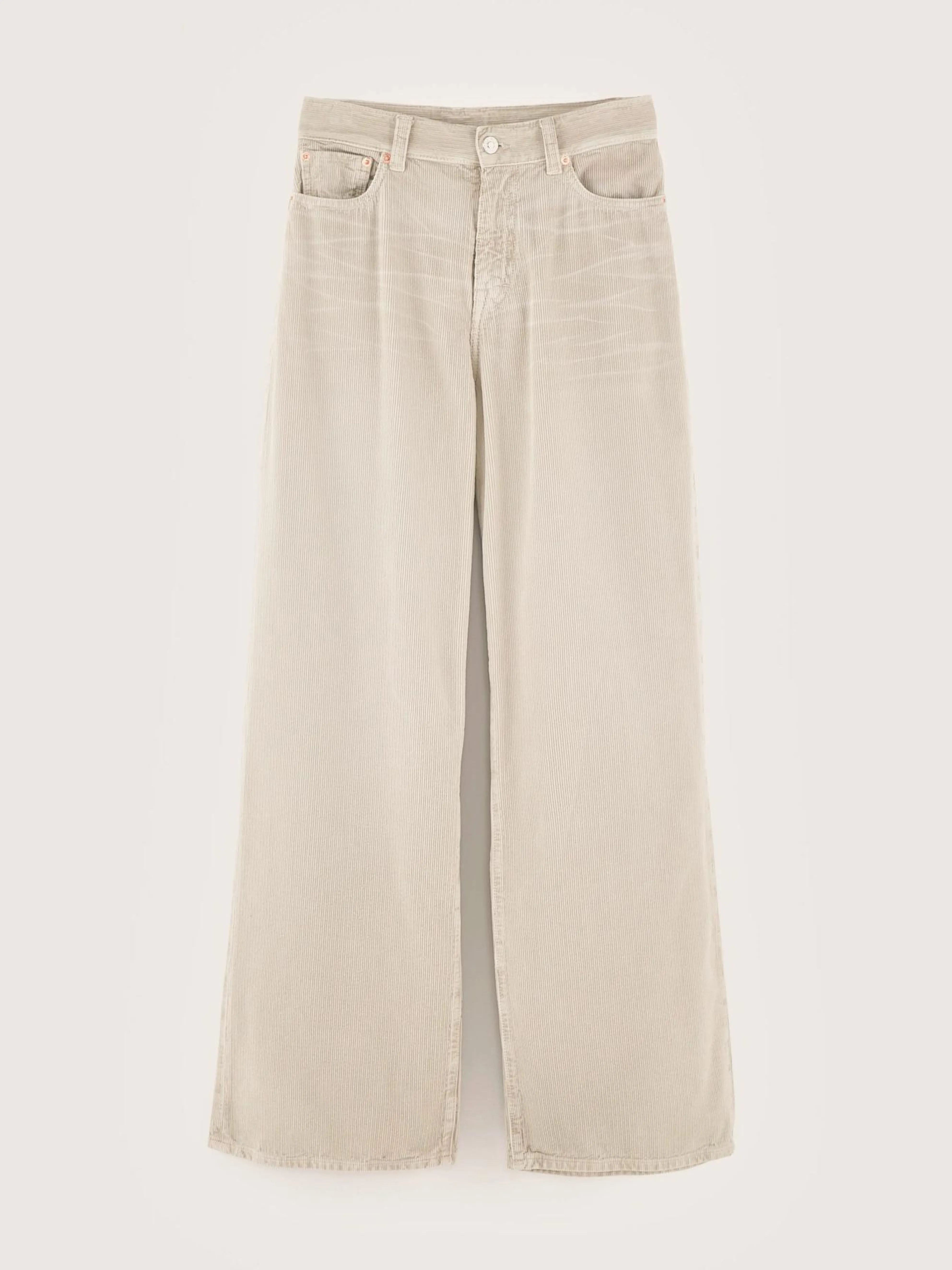 High-waist boyfriend jeans met wijde pijpen, van crèmekleurig corduroy katoen.