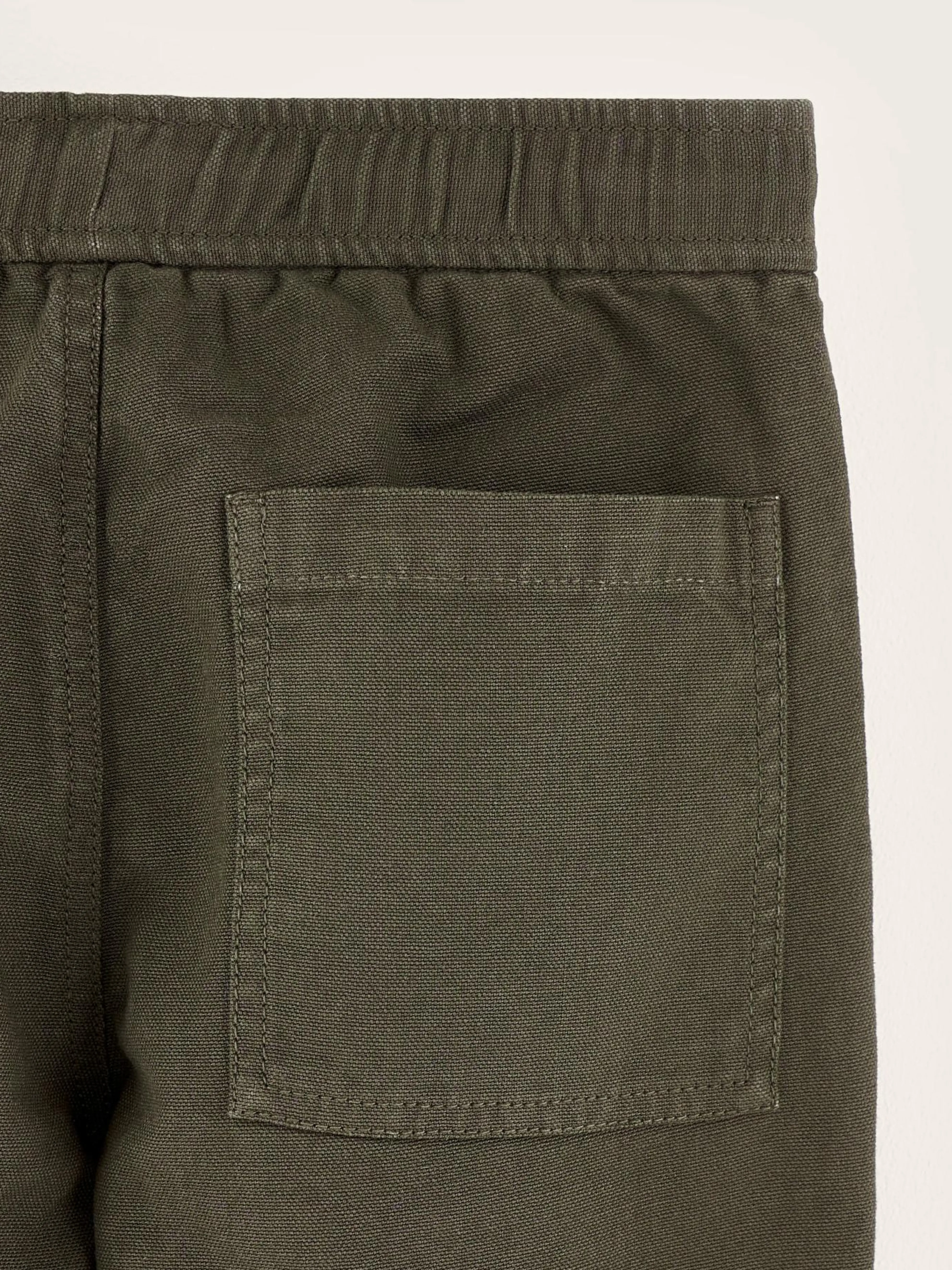 Relaxede, legergroene baggy broek met wijde pijpen en fatigue zakken, van katoencanvas.