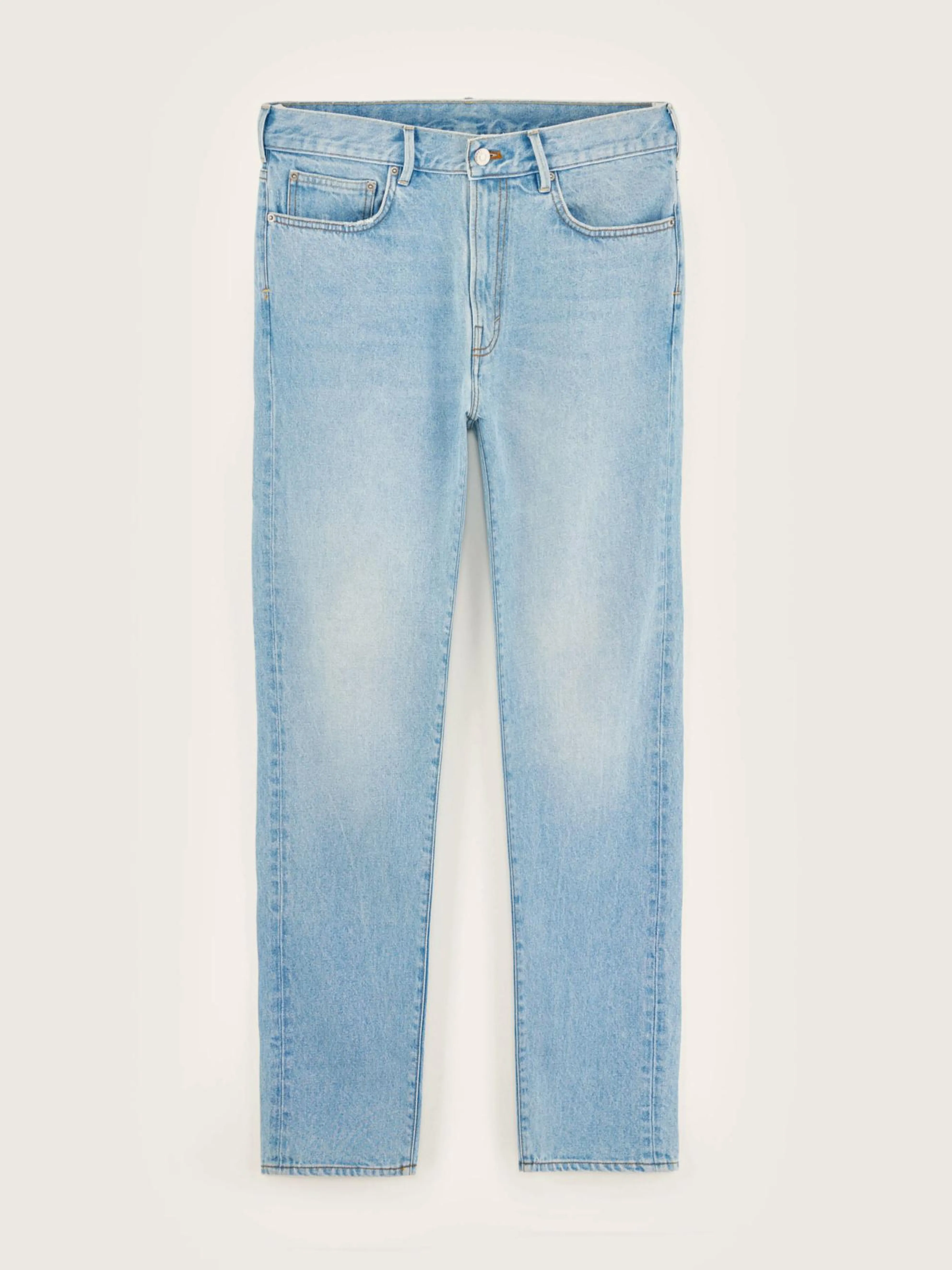 Slim fit jeans met taps toelopende pijpen in vintage lichtblauw katoendenim.