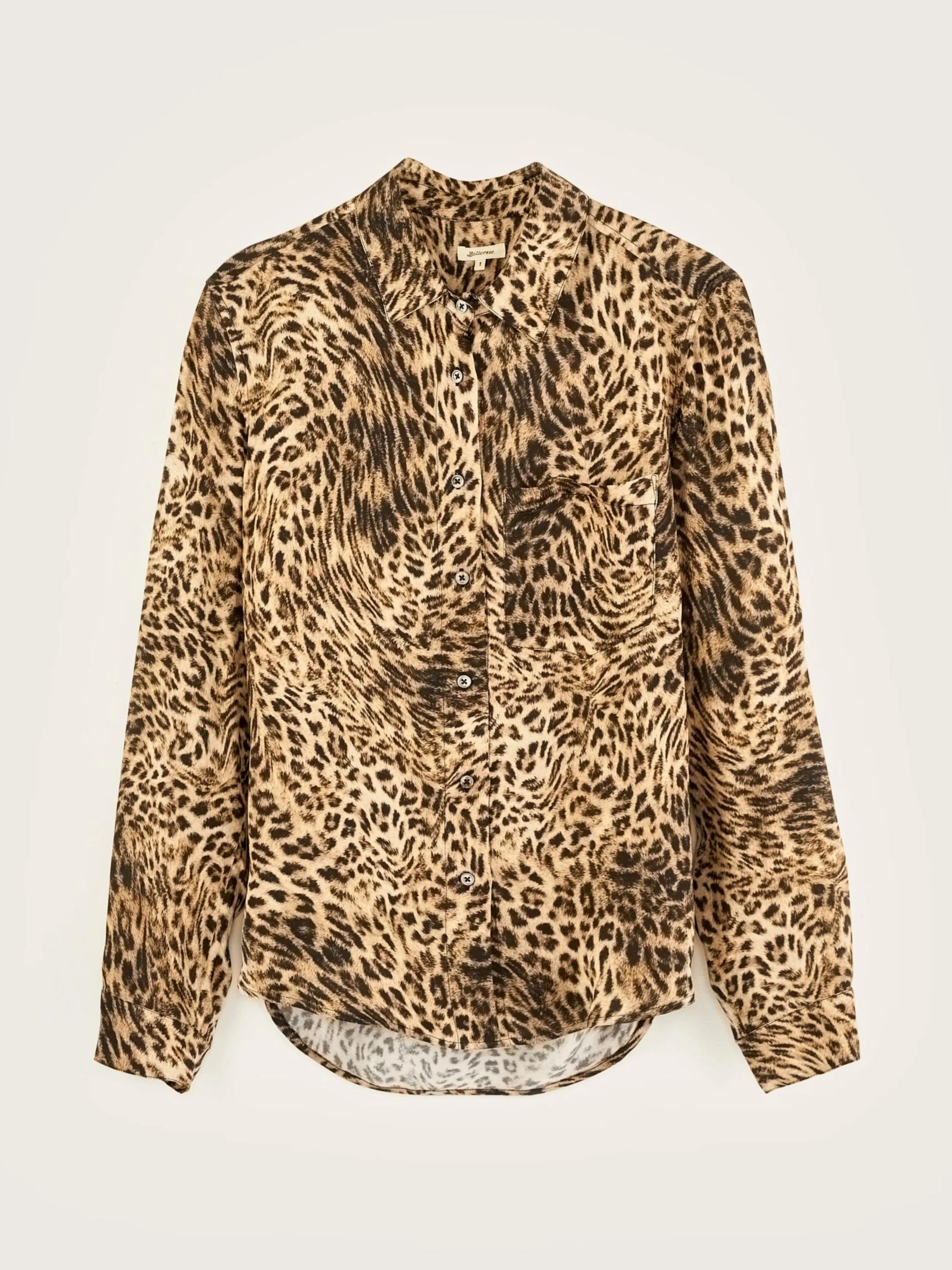 Lang hemd met een kraag en een recht model, van viscose met luipaardprint.