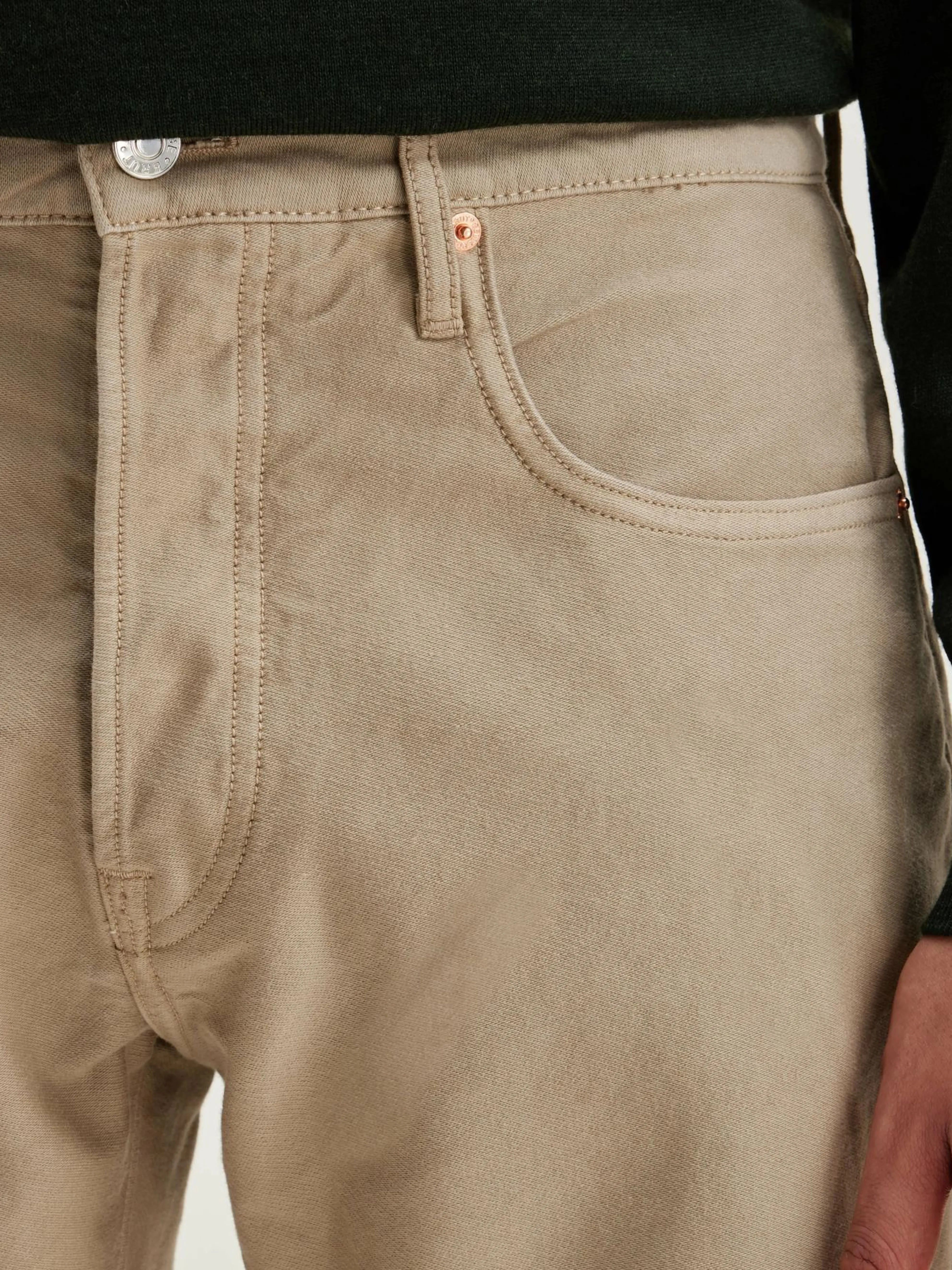 “Dad-style” broek met lage taille en rechte pijpen, in five-pocket uitvoering, van grijze katoen.