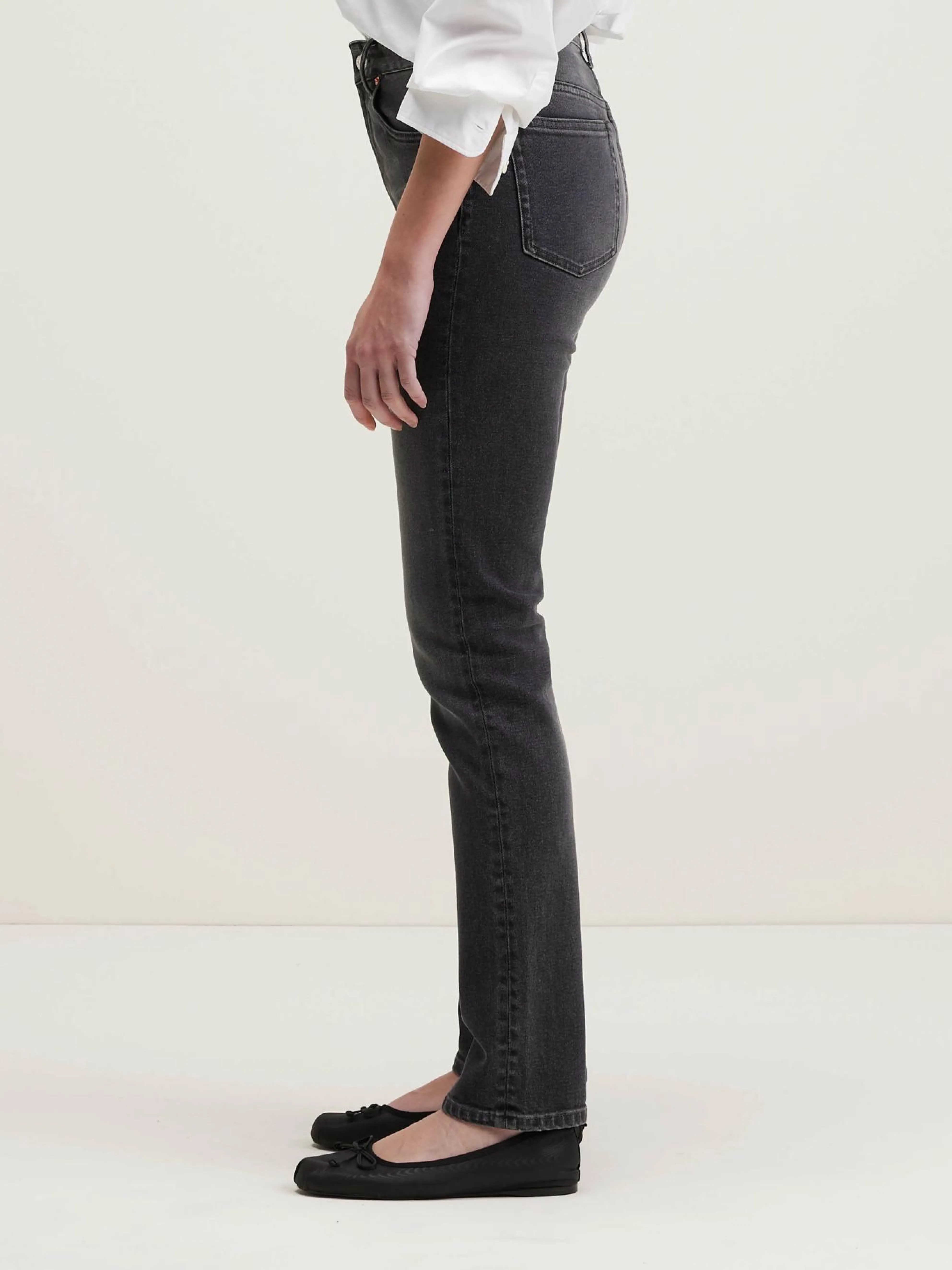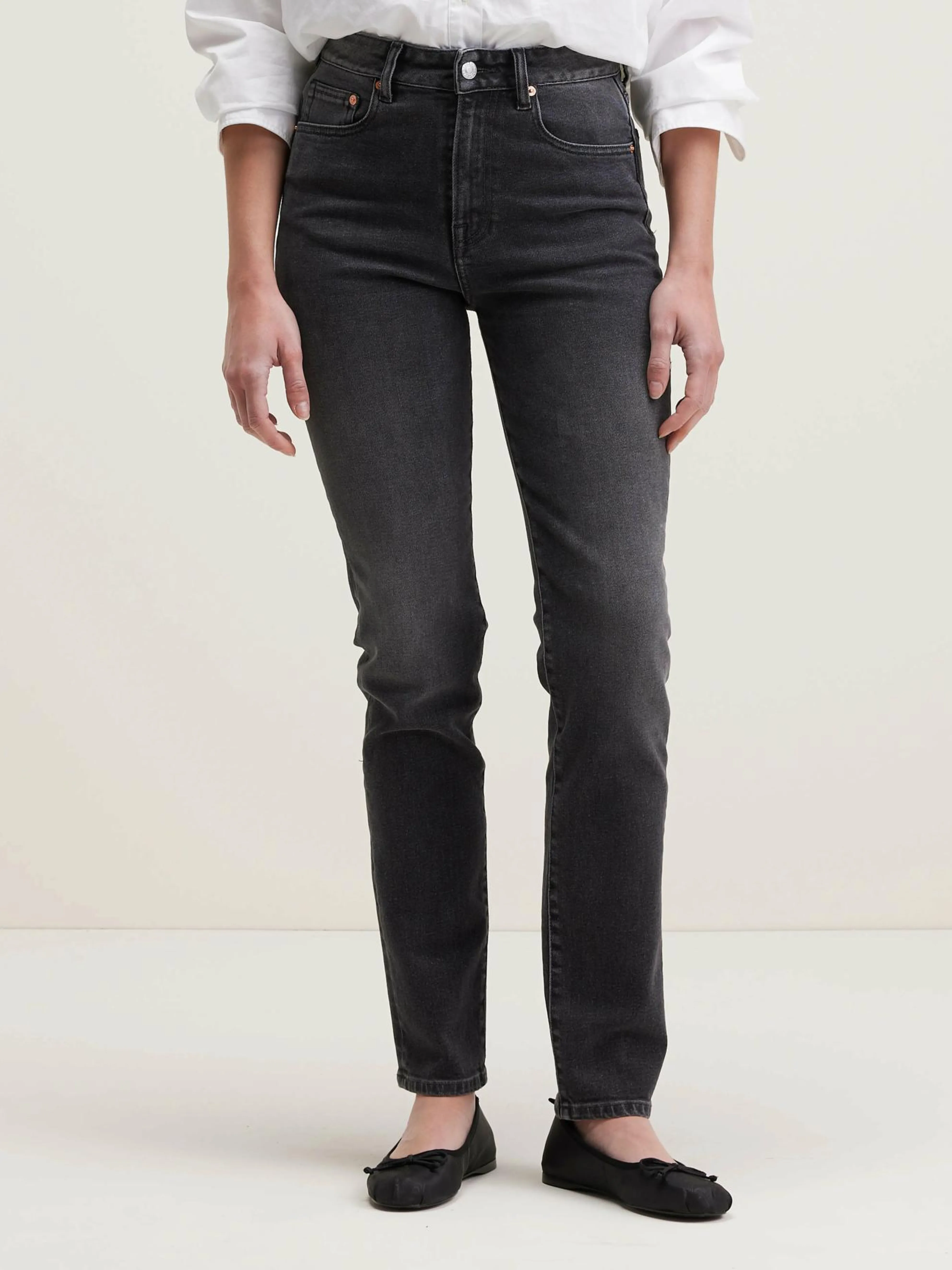 High-waist, vintagezwarte slim fit jeans.