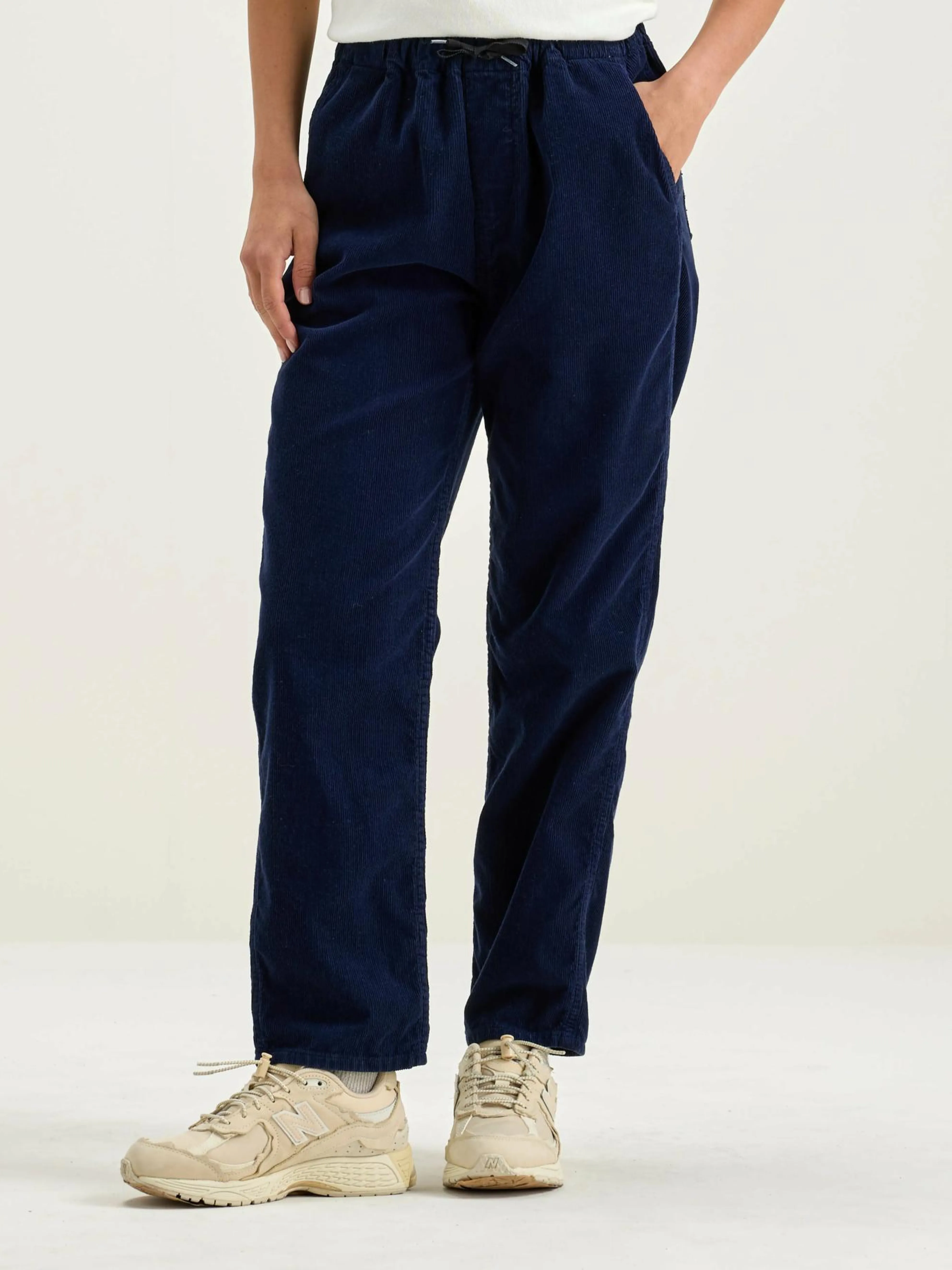 Relaxede marineblauwe broek met een elastische tailleband, van katoencorduroy.