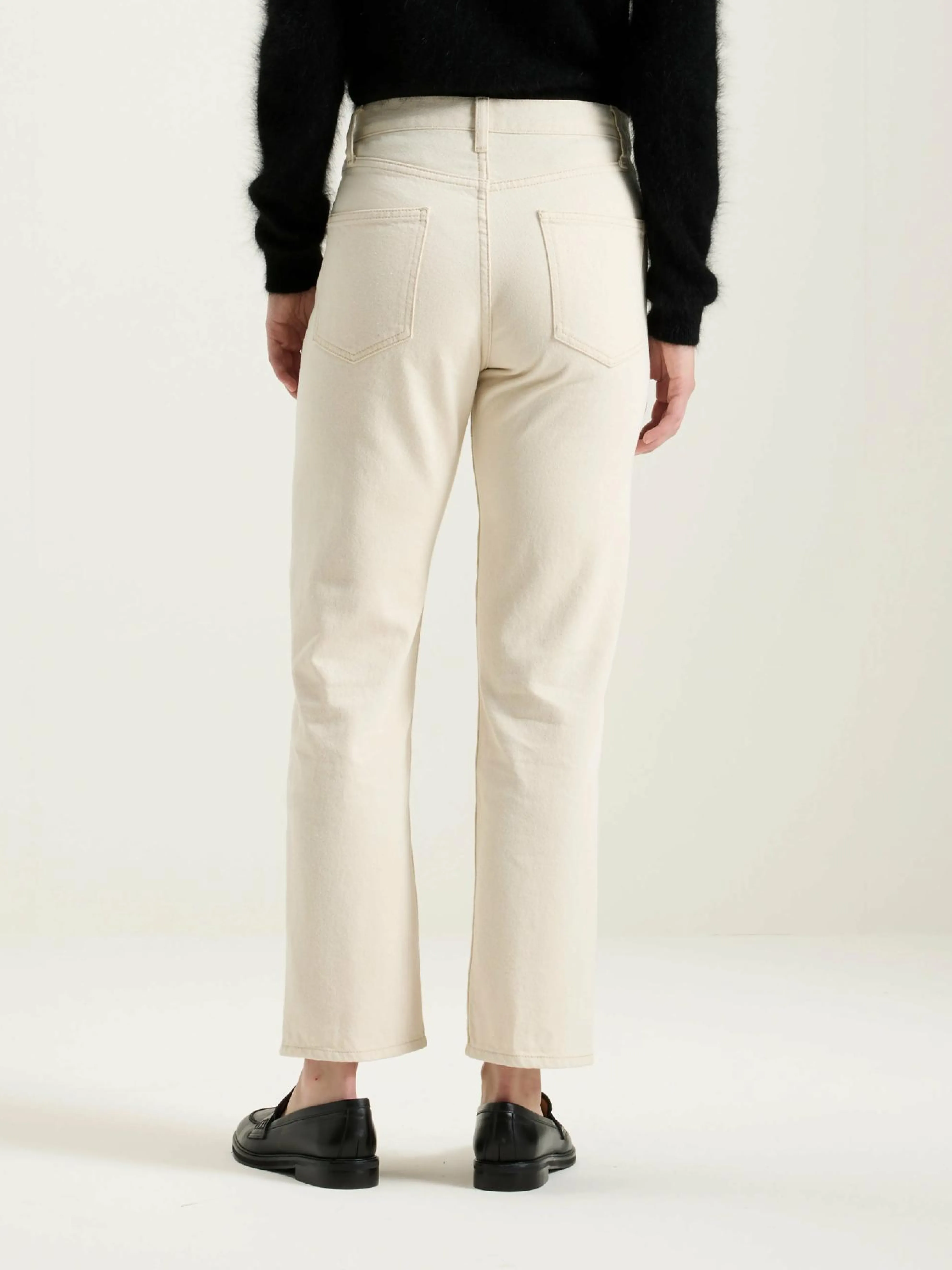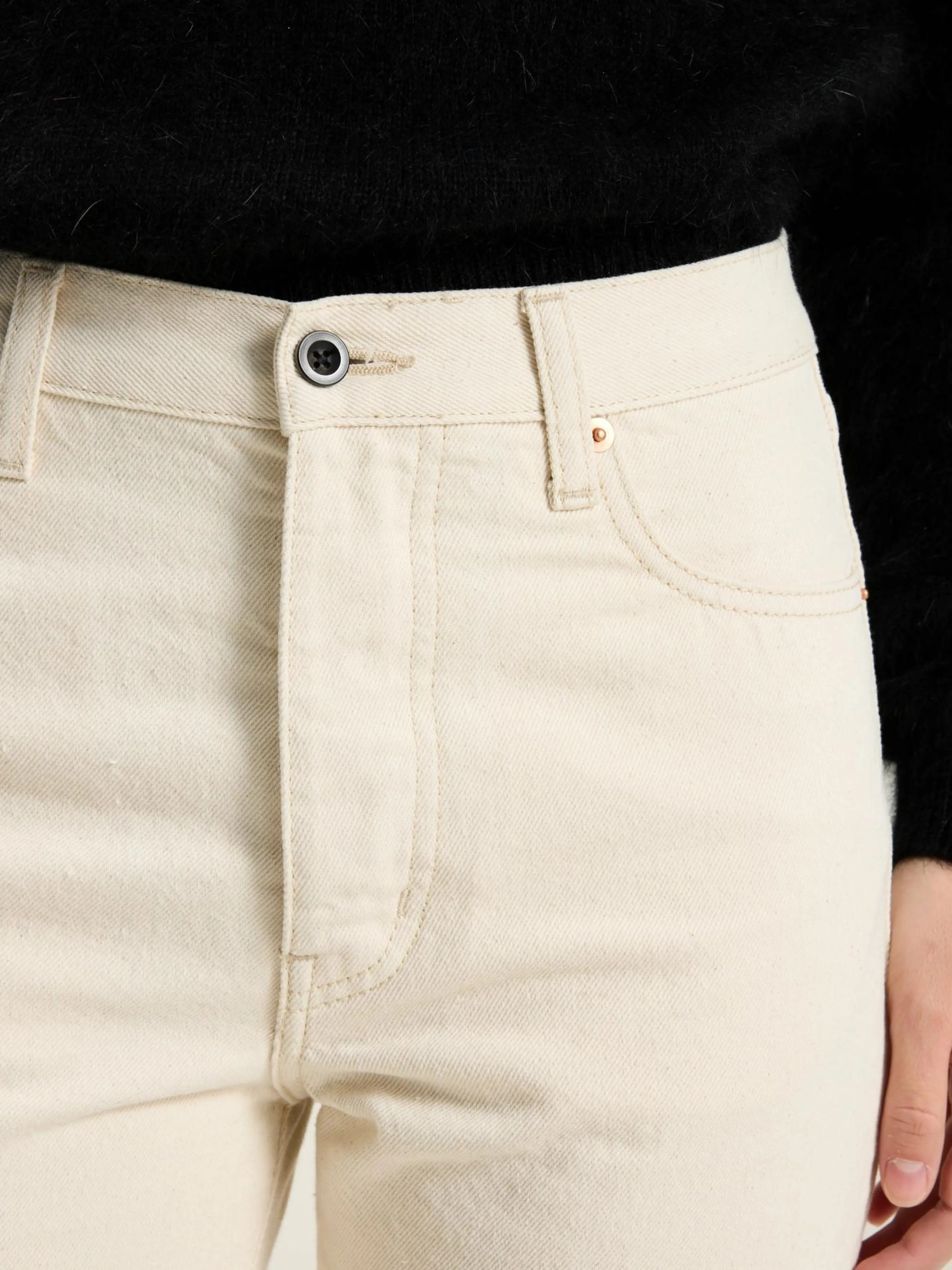 Klassieke, rechte jeans met hoge taille, van ecru katoendenim.