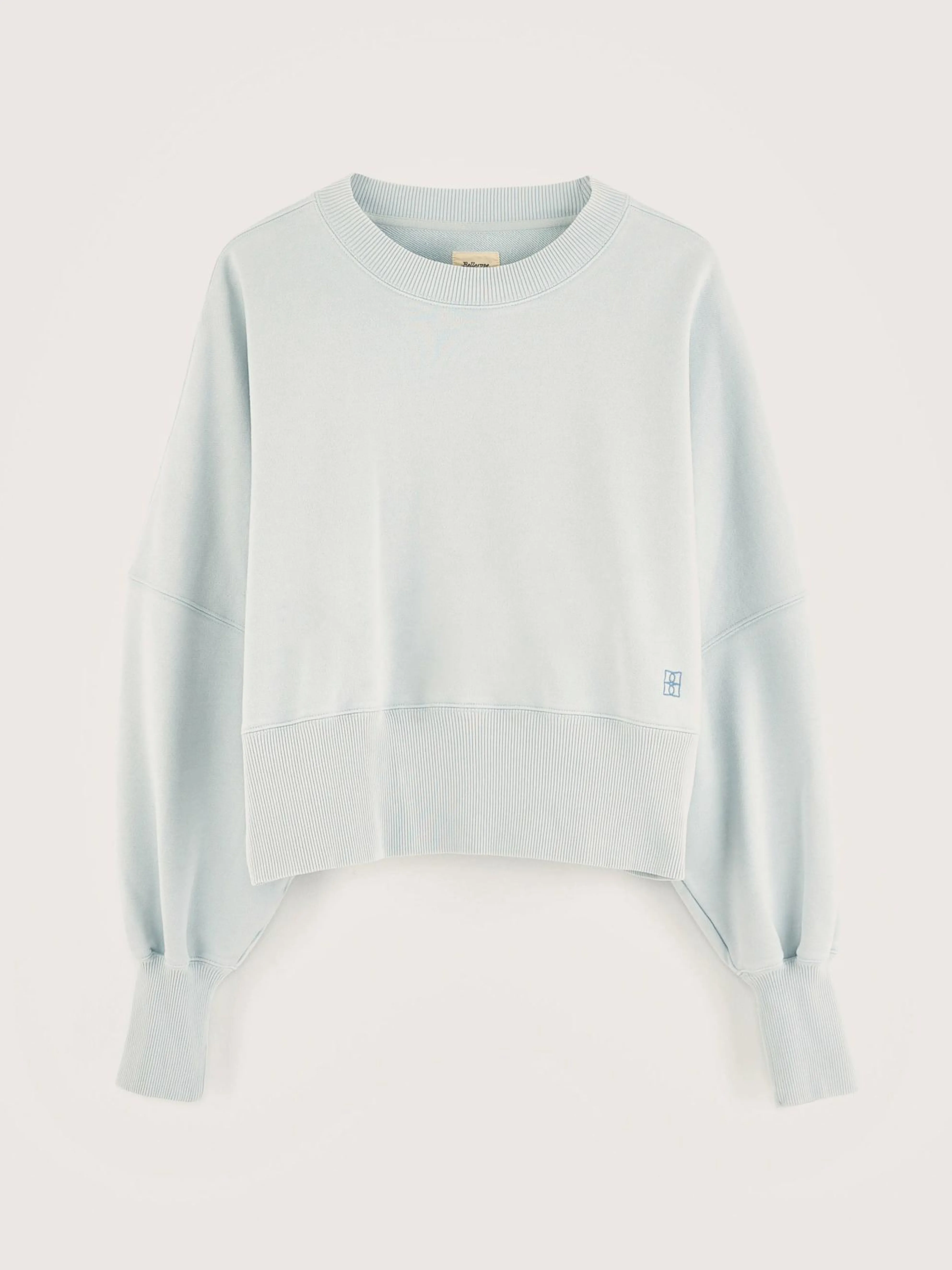 Oversized, cropped lichtblauw sweatshirt van biologische katoenfleece.