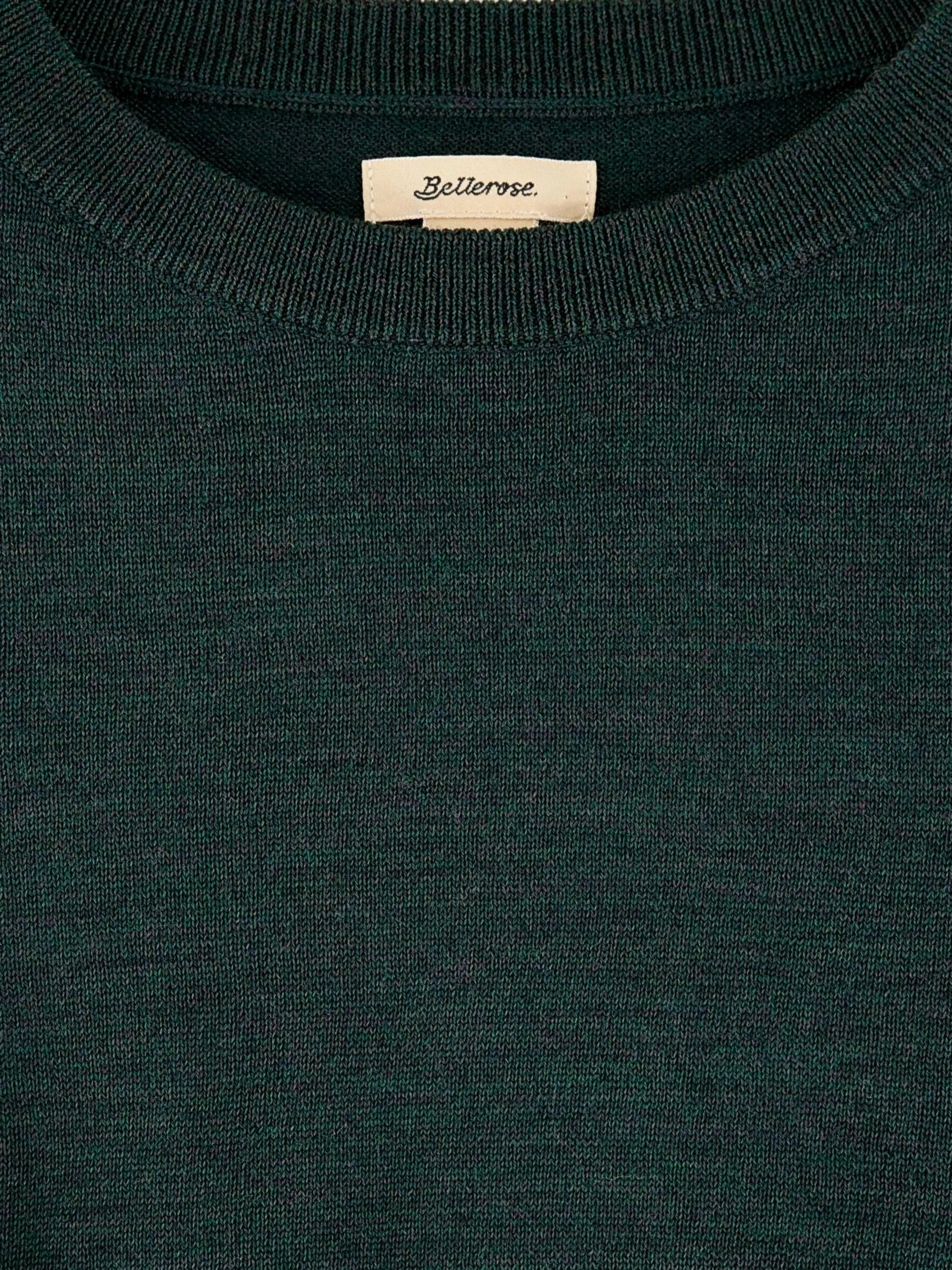 Flesgroene, cropped trui met korte mouwen, van merinowol.