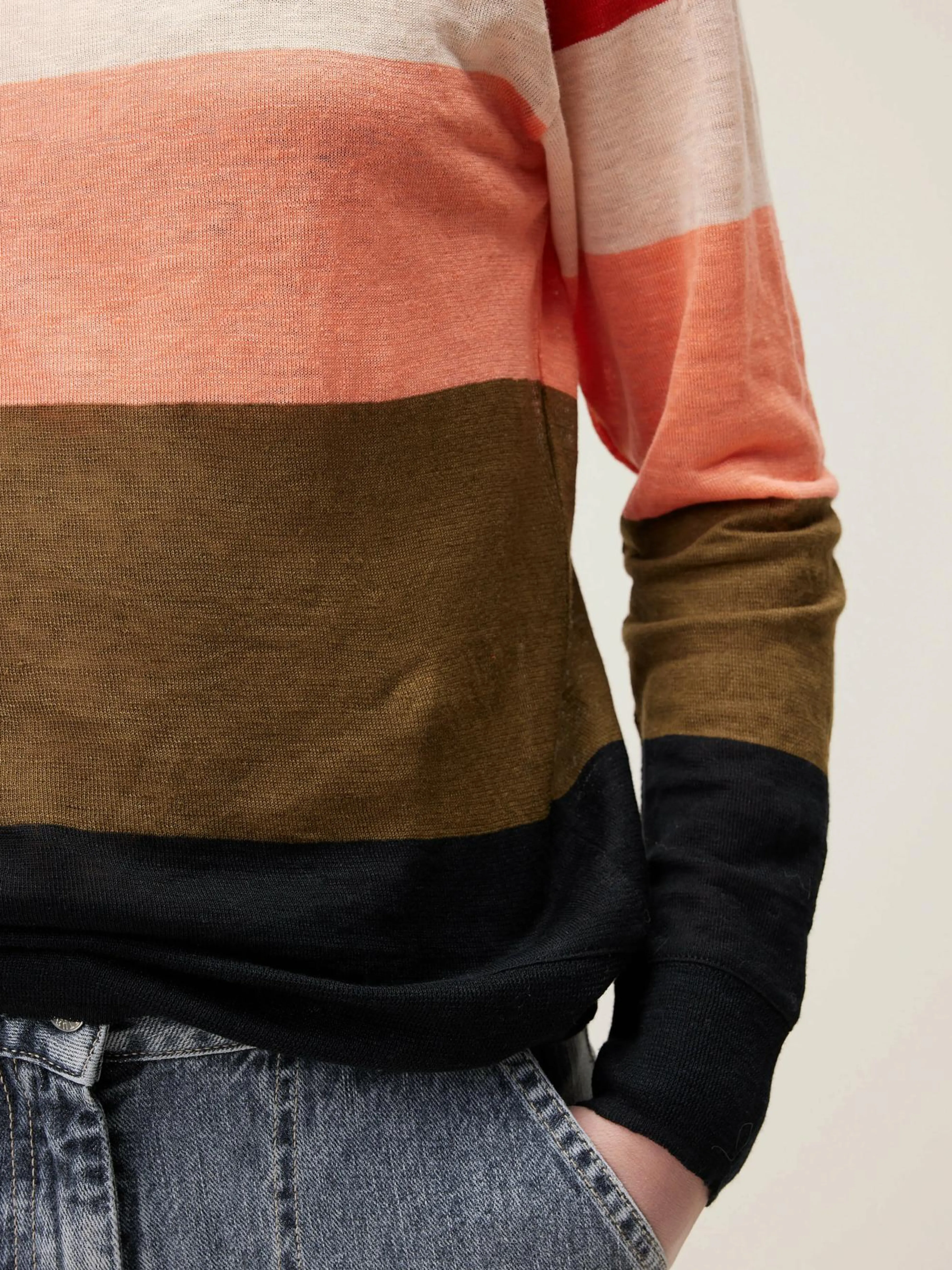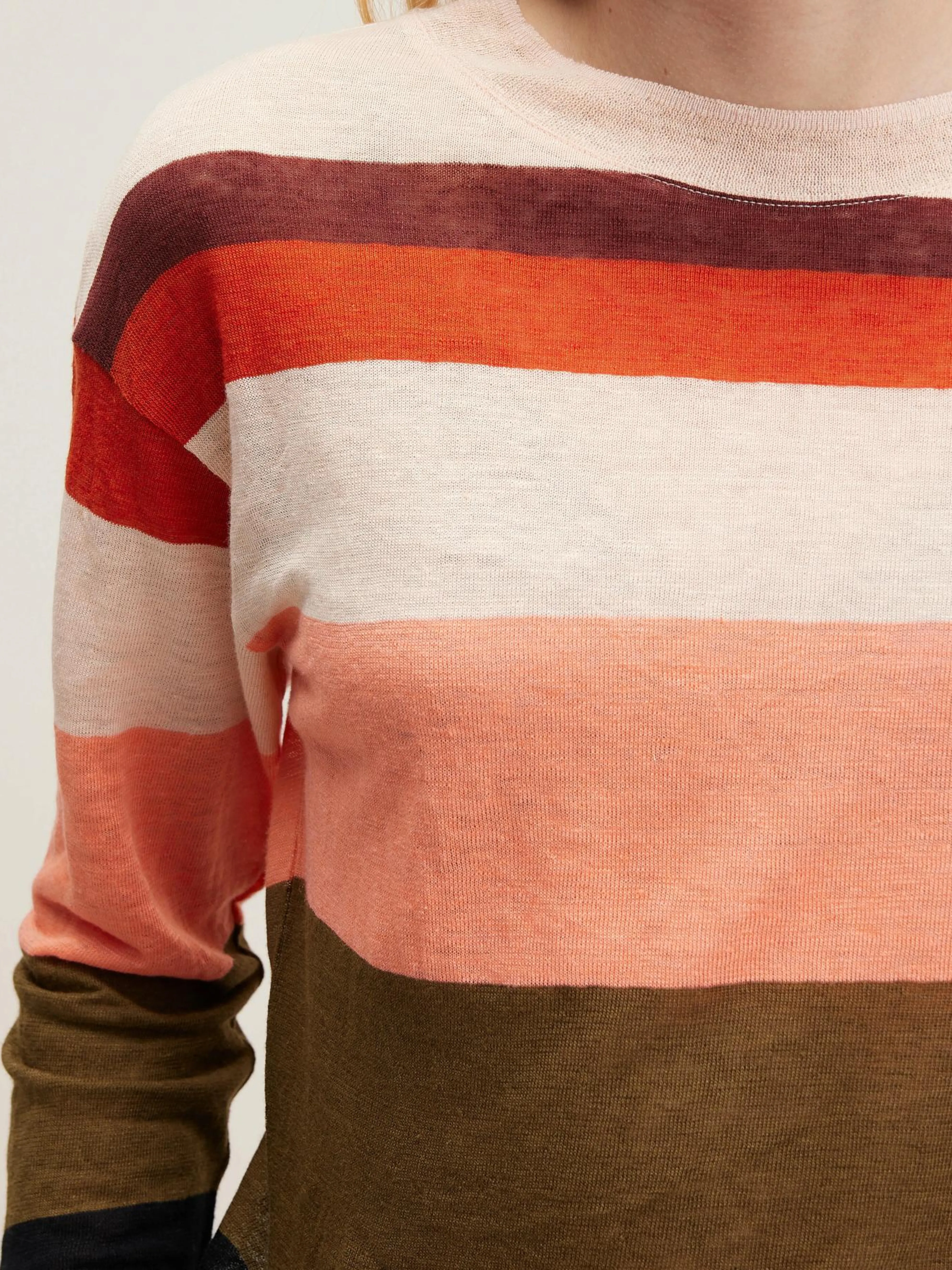 Relaxed T-shirt met lange mouwen, van gestreept linnen.