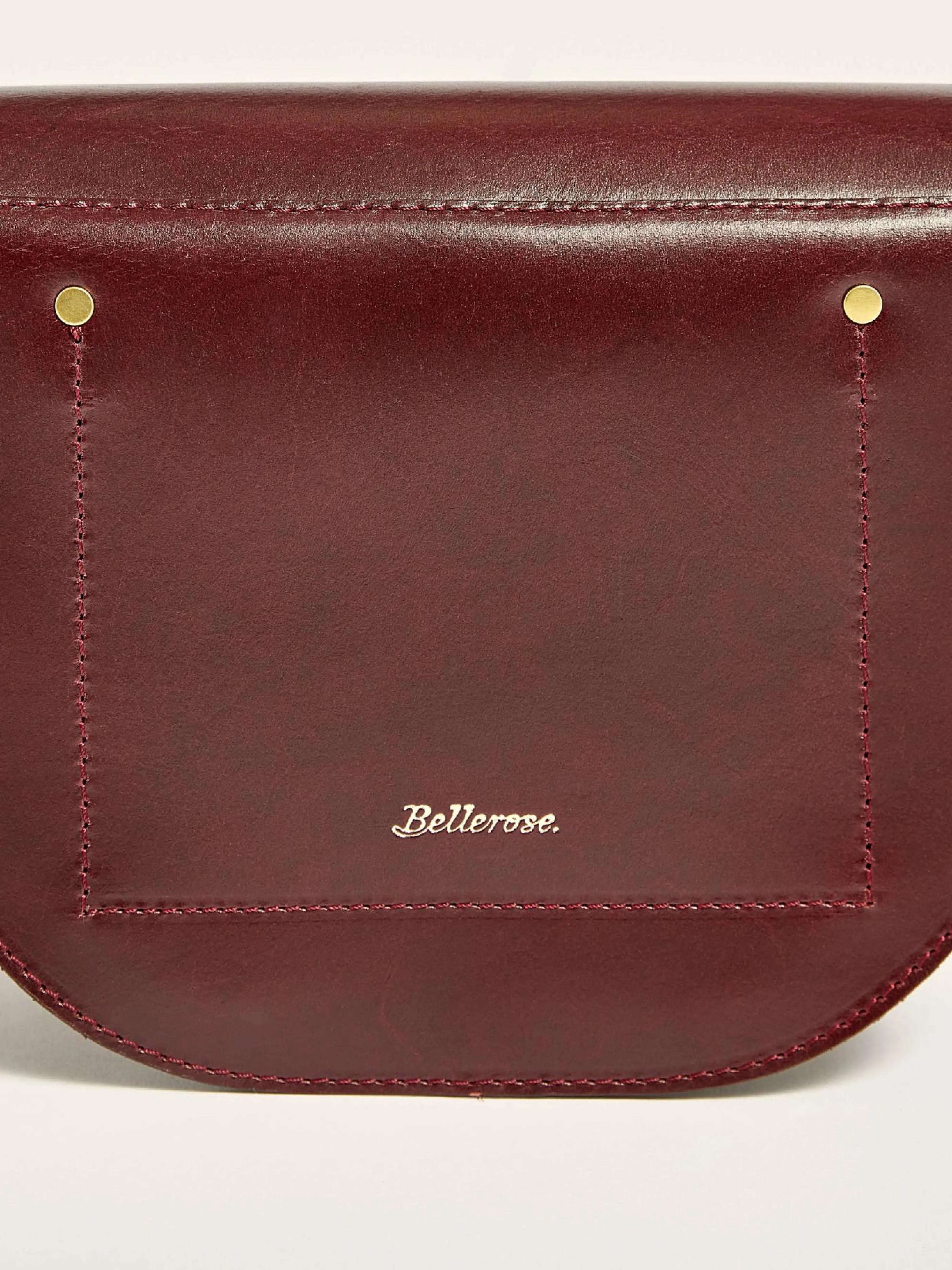 Halvemaanvormige schoudertas met gepolijste gesp, van wijnrood glad leer