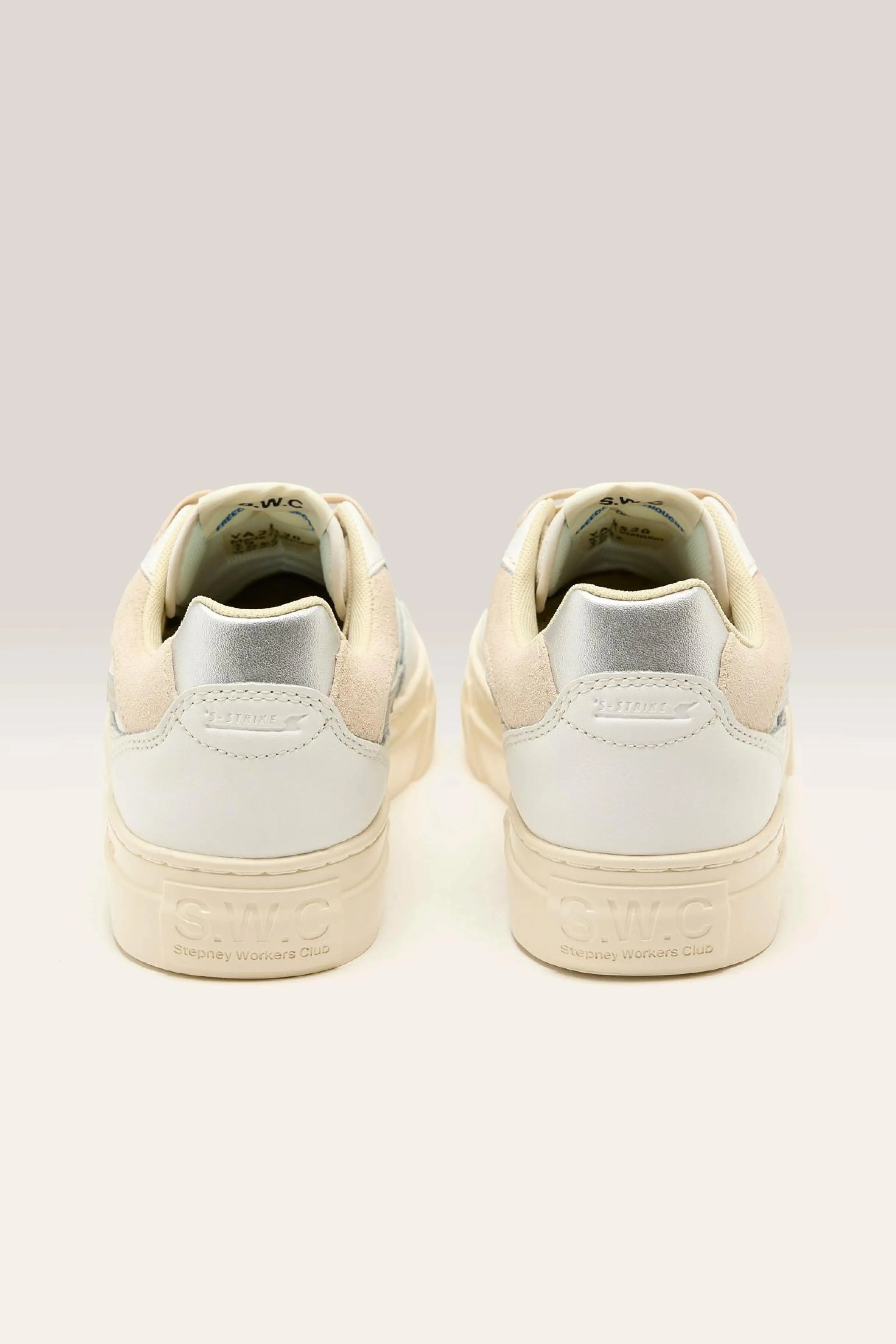 The Stepney Workers Club Pearl S-Strike sneaker features a paneled leather upper, padded nylon tongue, and rubber cupsole.