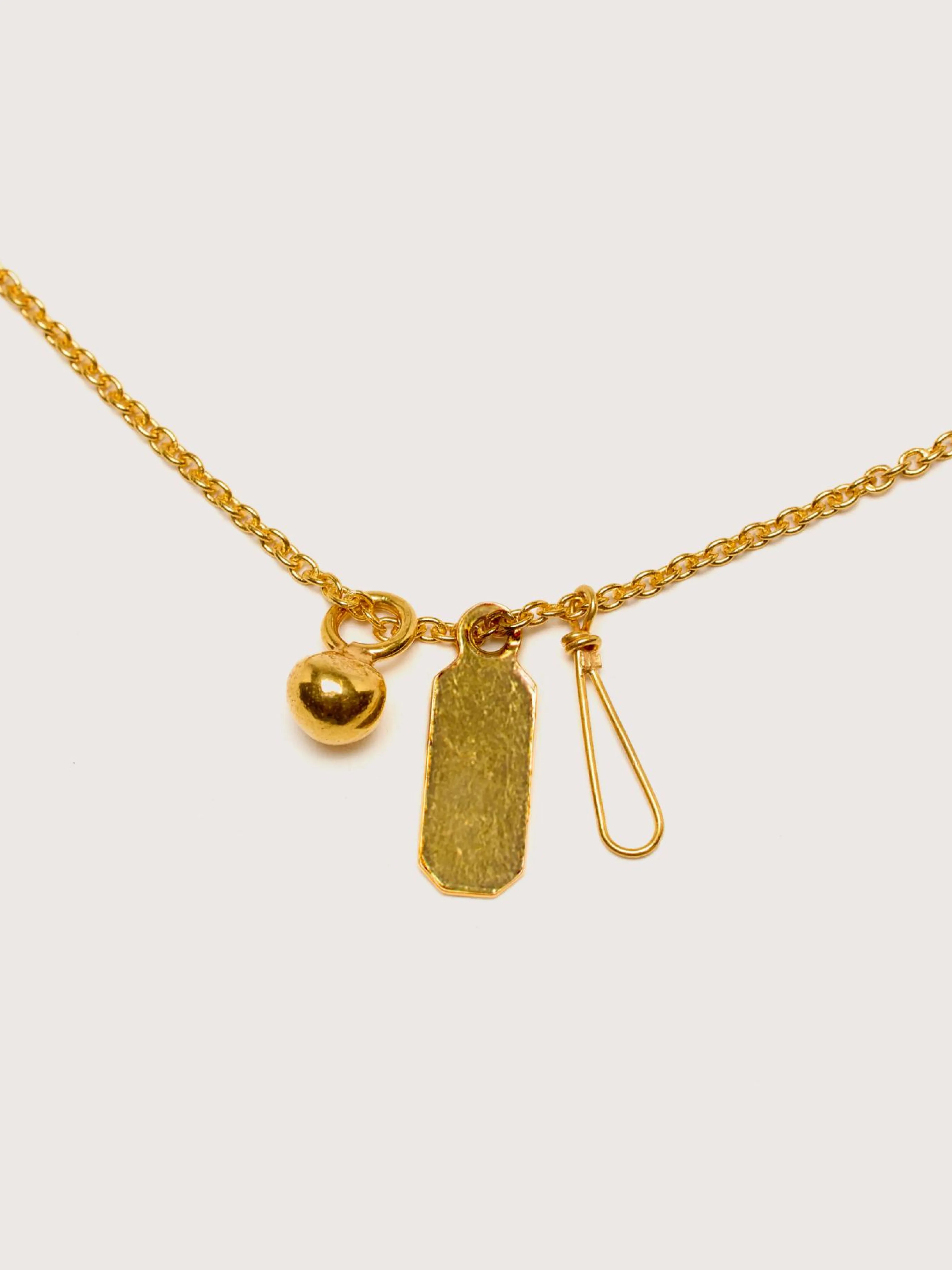 The GilbertGilbert Golden Pendant necklace features a long chain with golden pendants.