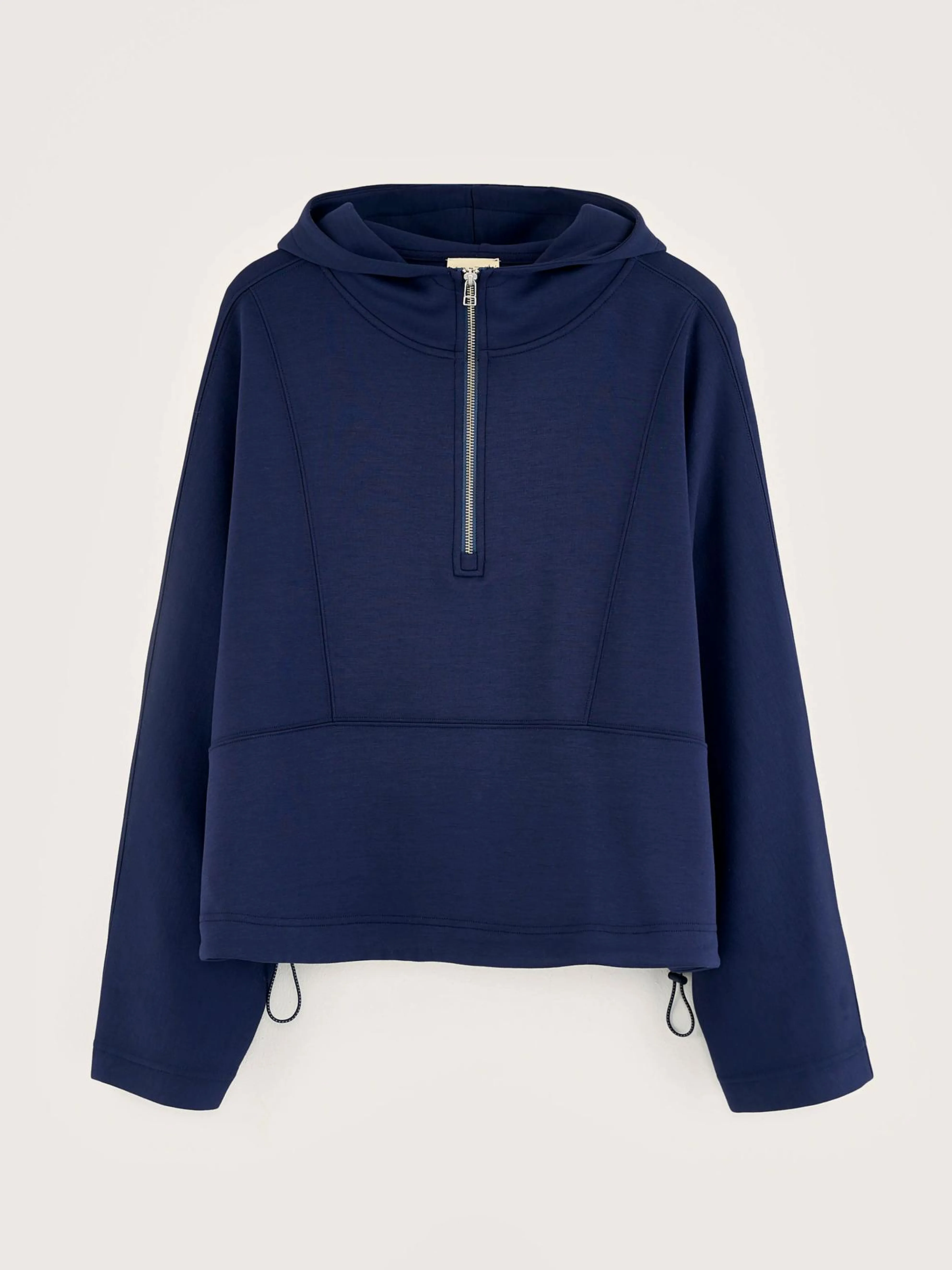 Oversized sweatshirt met capuchon van marineblauwe fleecestof.