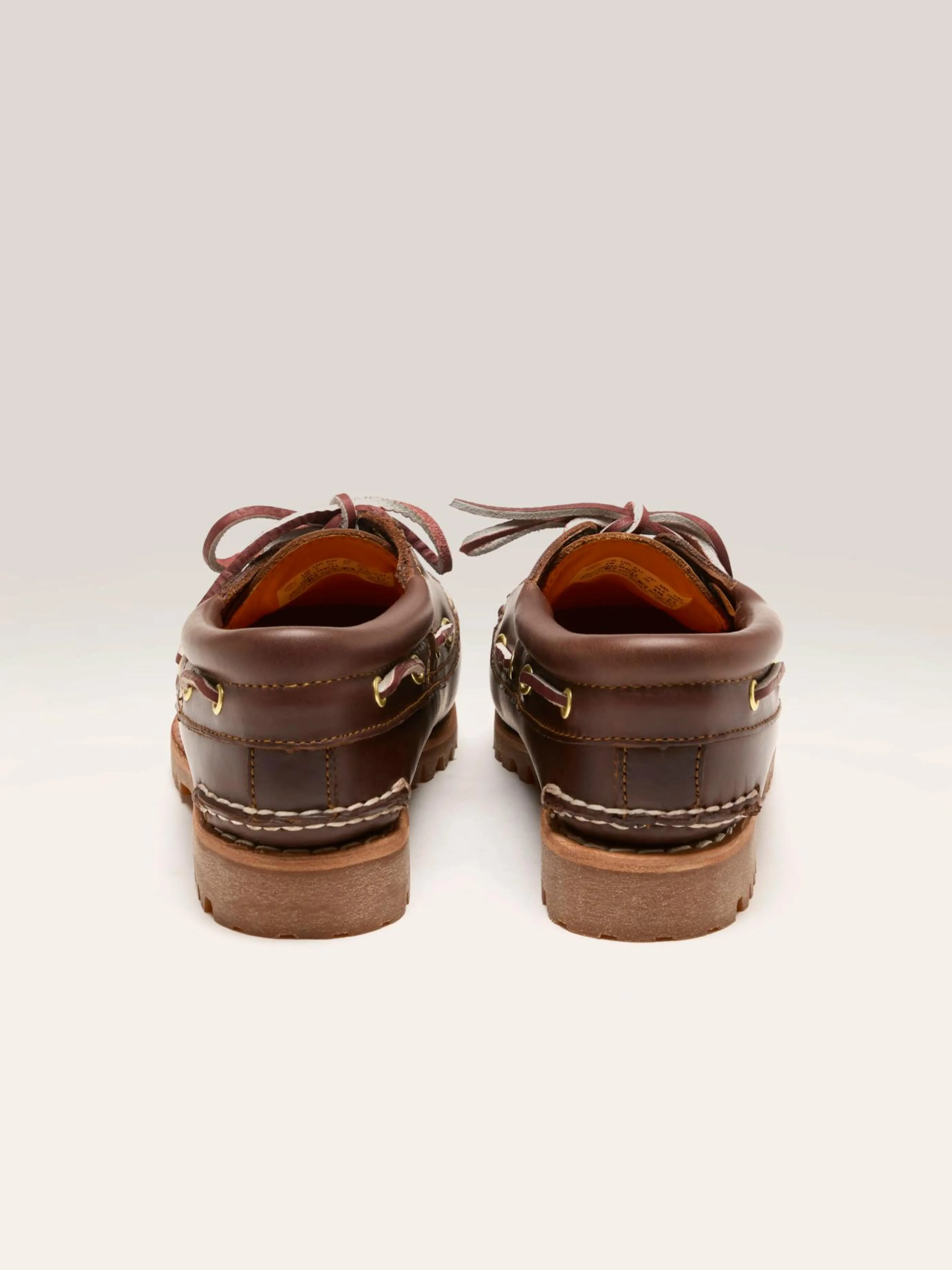 The Timberland Noreen handsewn boat shoe is a classic full-grain leather loafer with a 3-eye rawhide lacing system and rubber boot lug outsole.