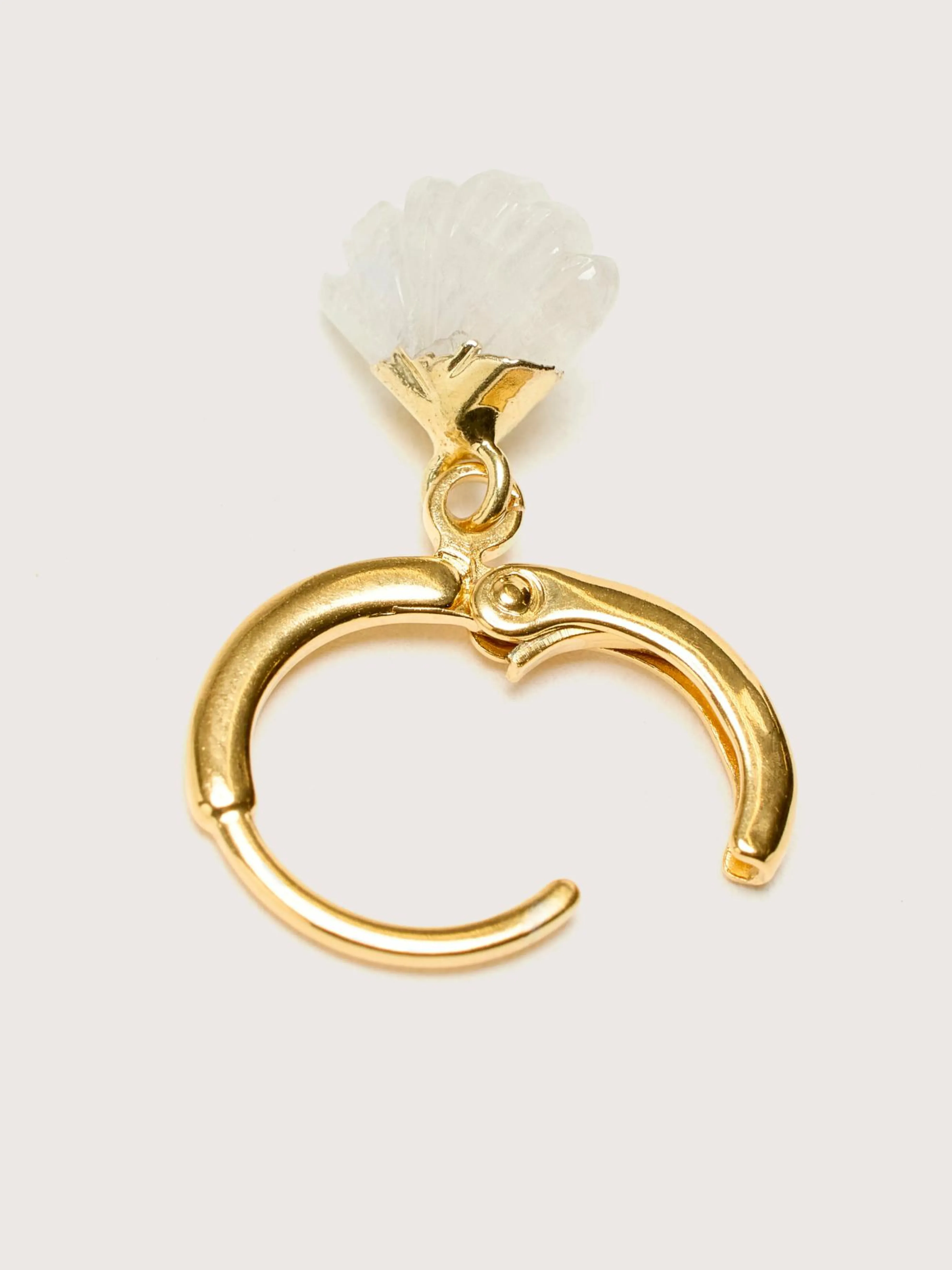 The Vadi Jewels Daya Hoop earrings are gold-plated small hoops with shell-shaped mother of pearl charms.
