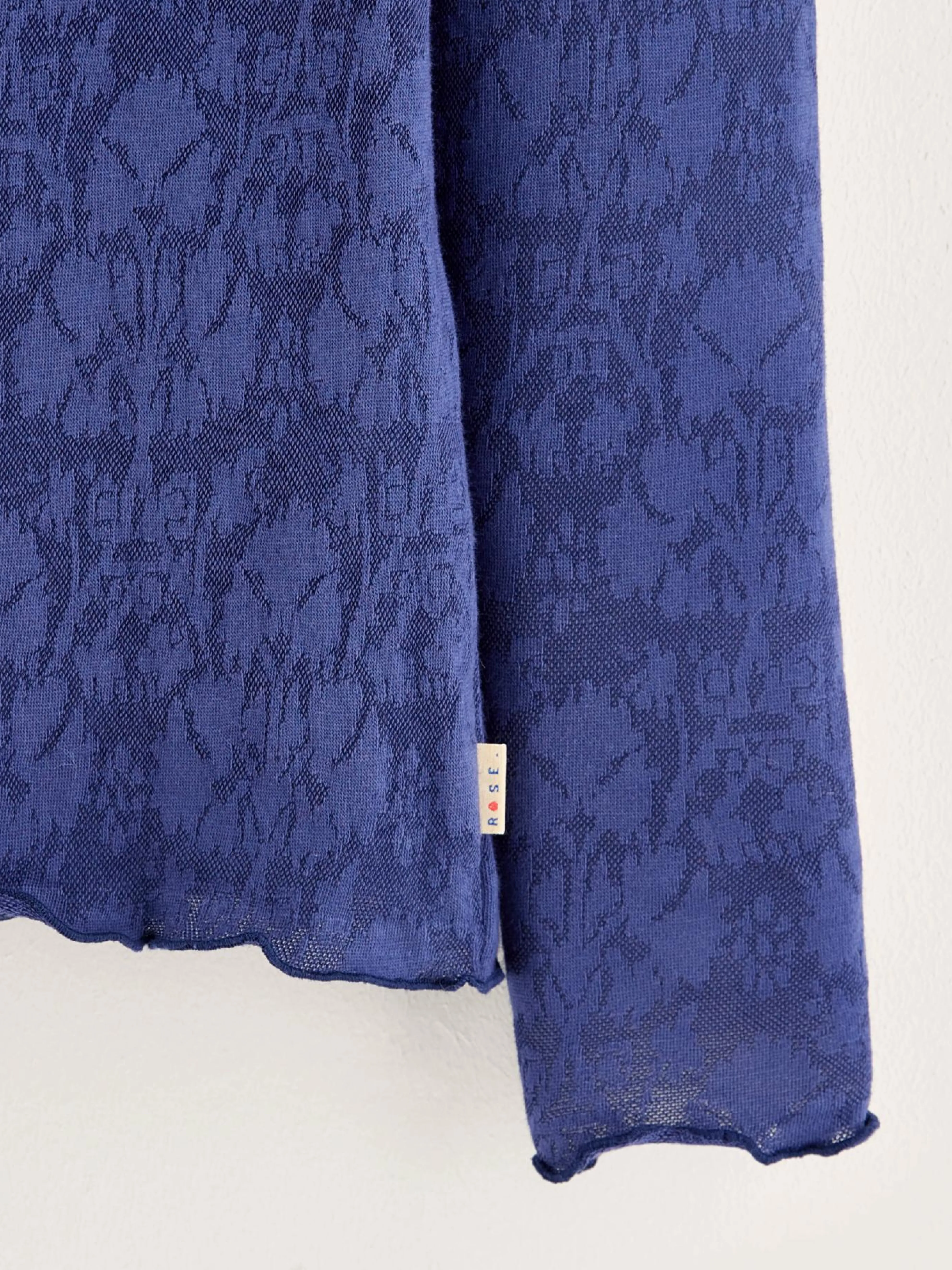 Kobaltblauw, aansluitend T-shirt met lange mouwen en een ronde hals.
