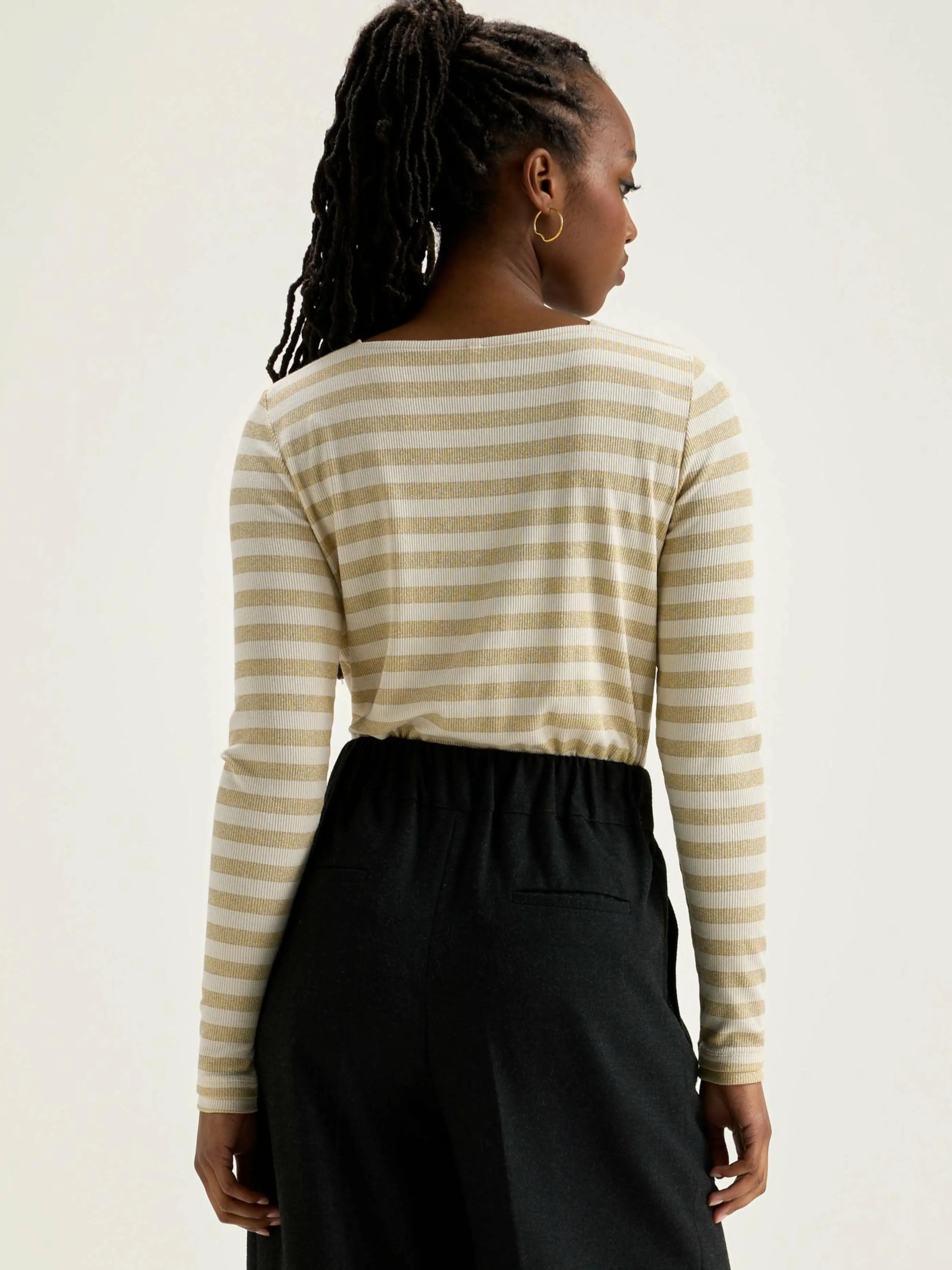T-shirt met slim fit model, met witte en zilveren lurexstrepen en een matrozenhals.