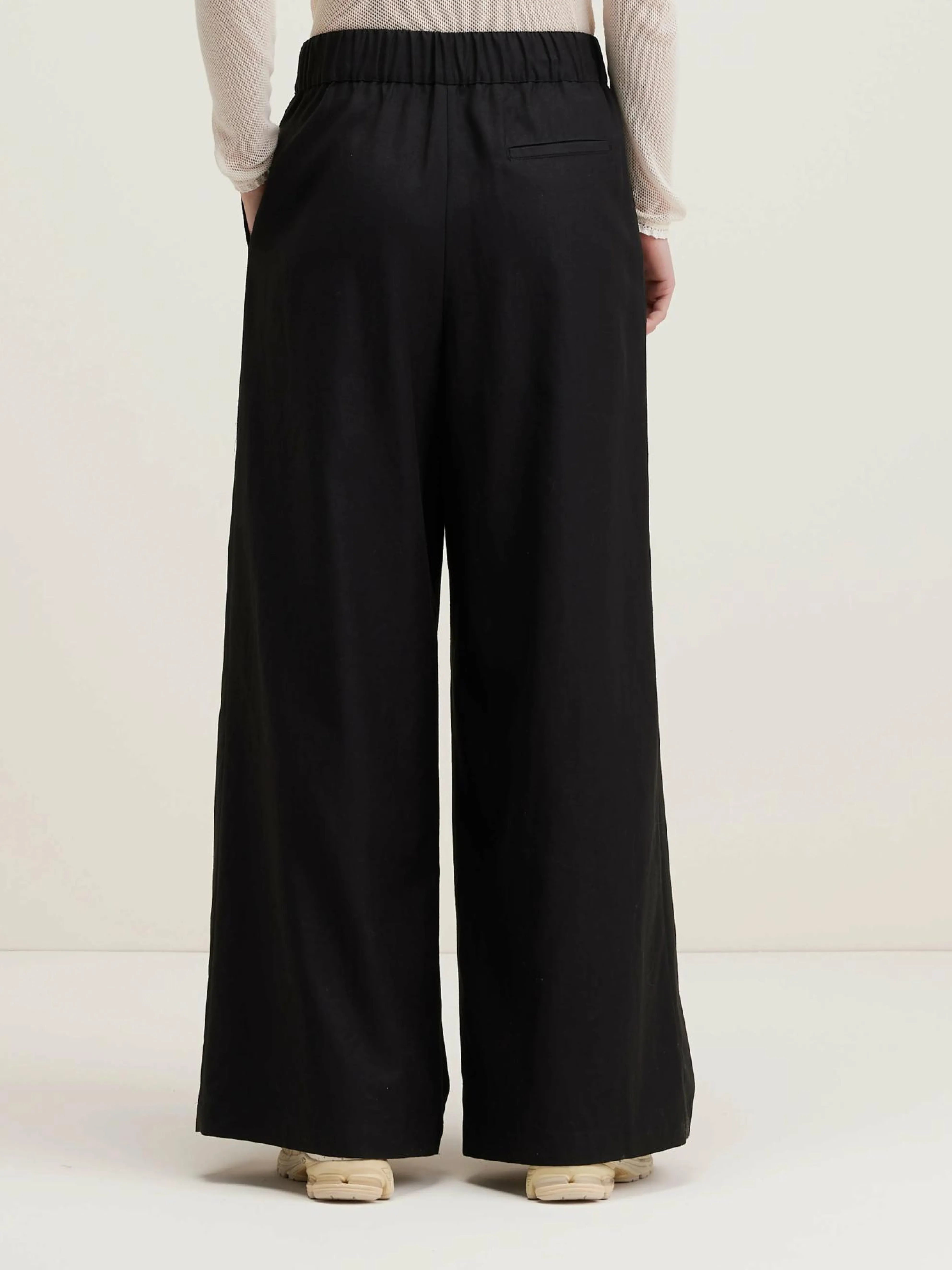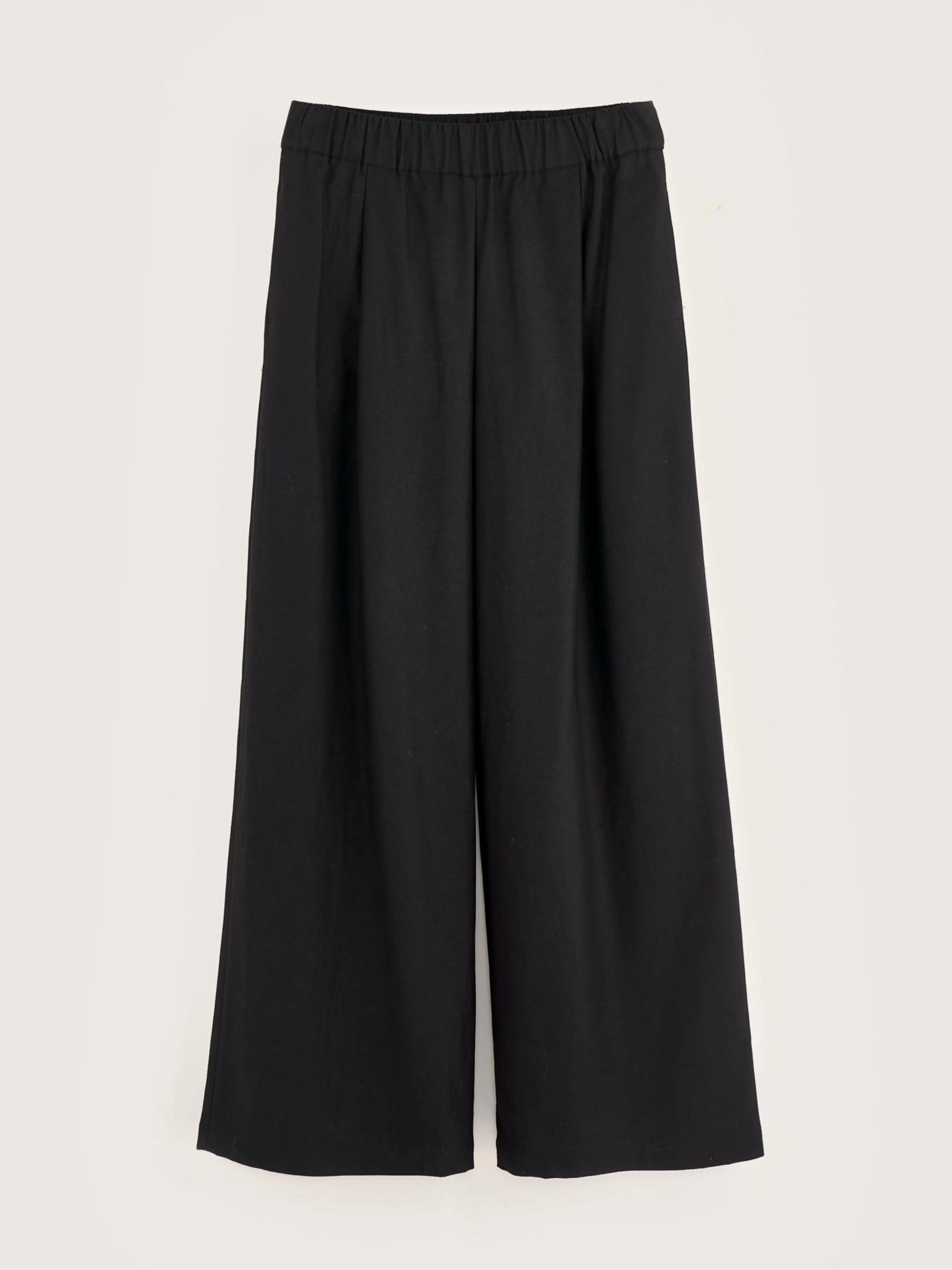Relaxede zwarte high-waist broek met wijde pijpen.