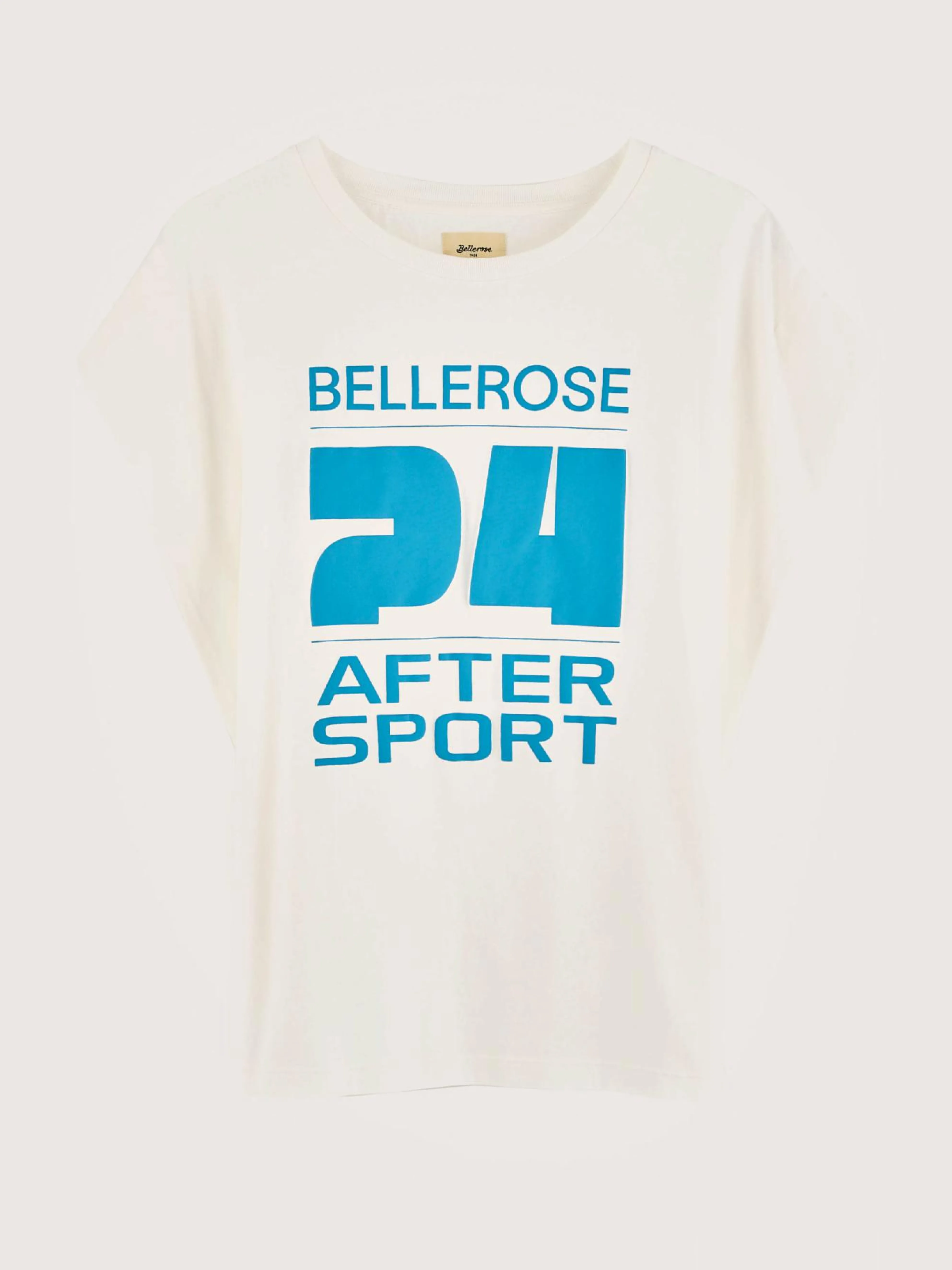 Katoenen haltertop in vintagewit met Bellerose 2024-print vooraan.