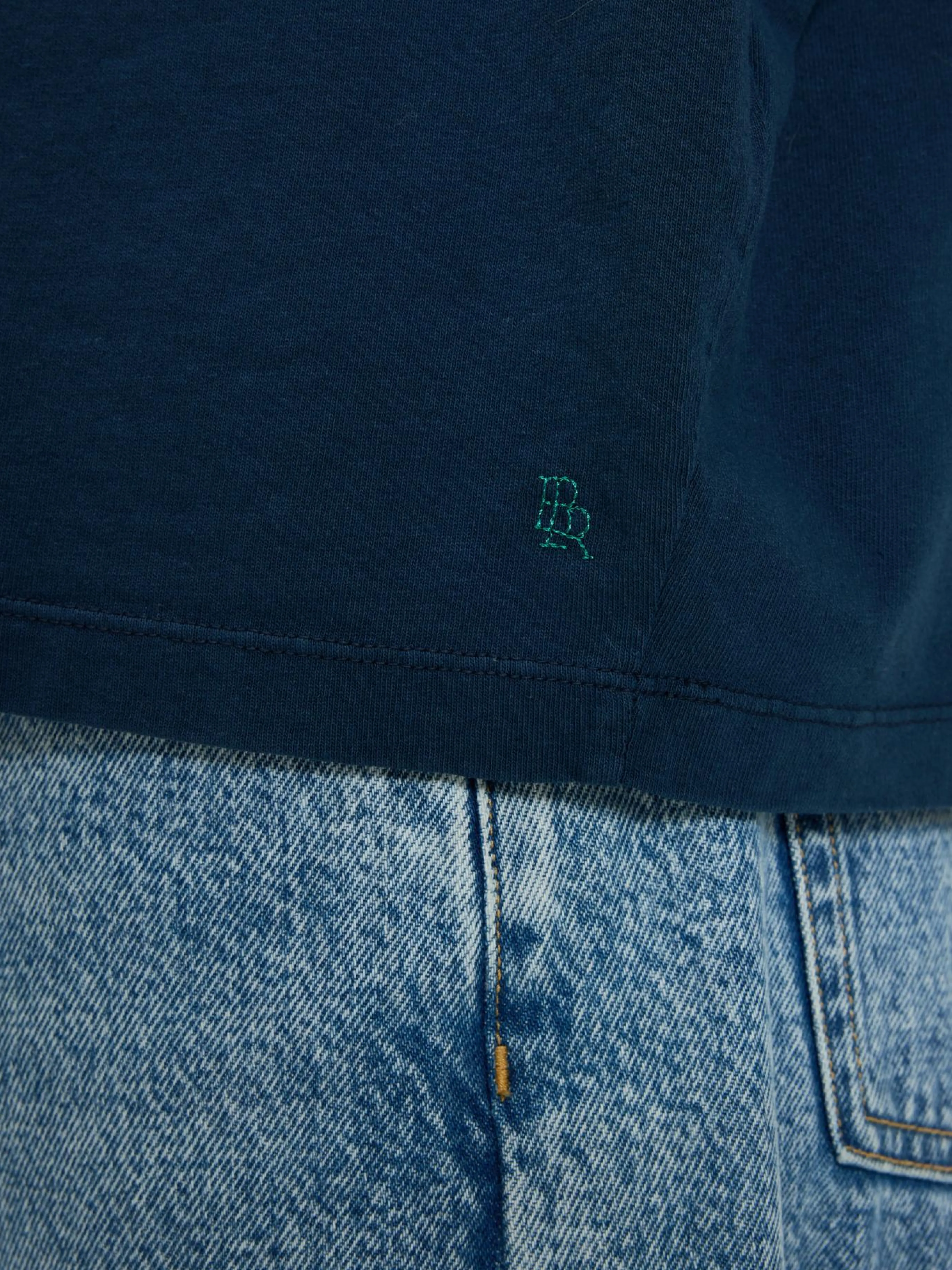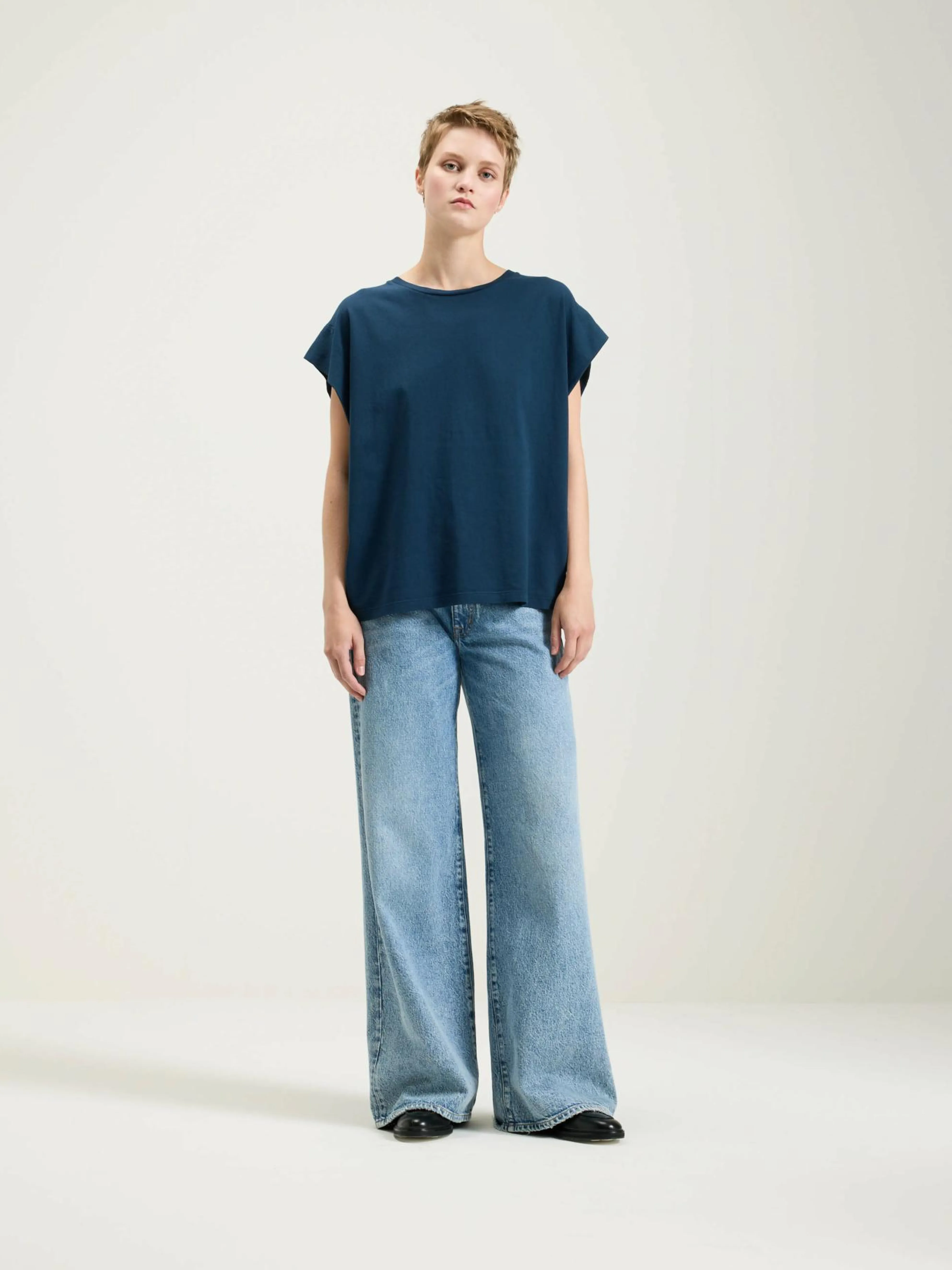 Muscle t-shirt met gevouwen schouders en ronde hals in inktblauwe katoenjersey.