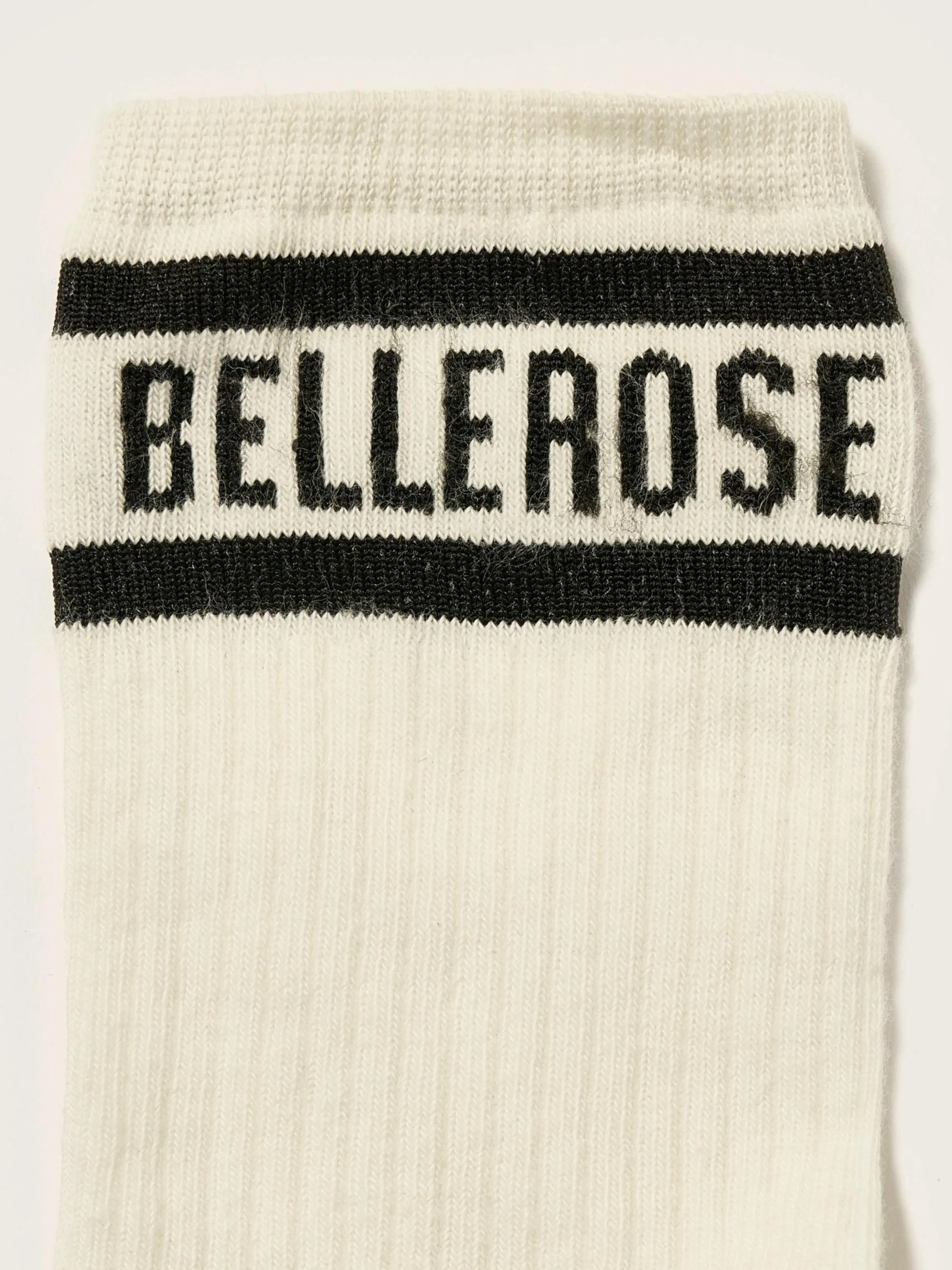 Klassieke sokken in ecru met Bellerose-logo in zwart op de enkel.