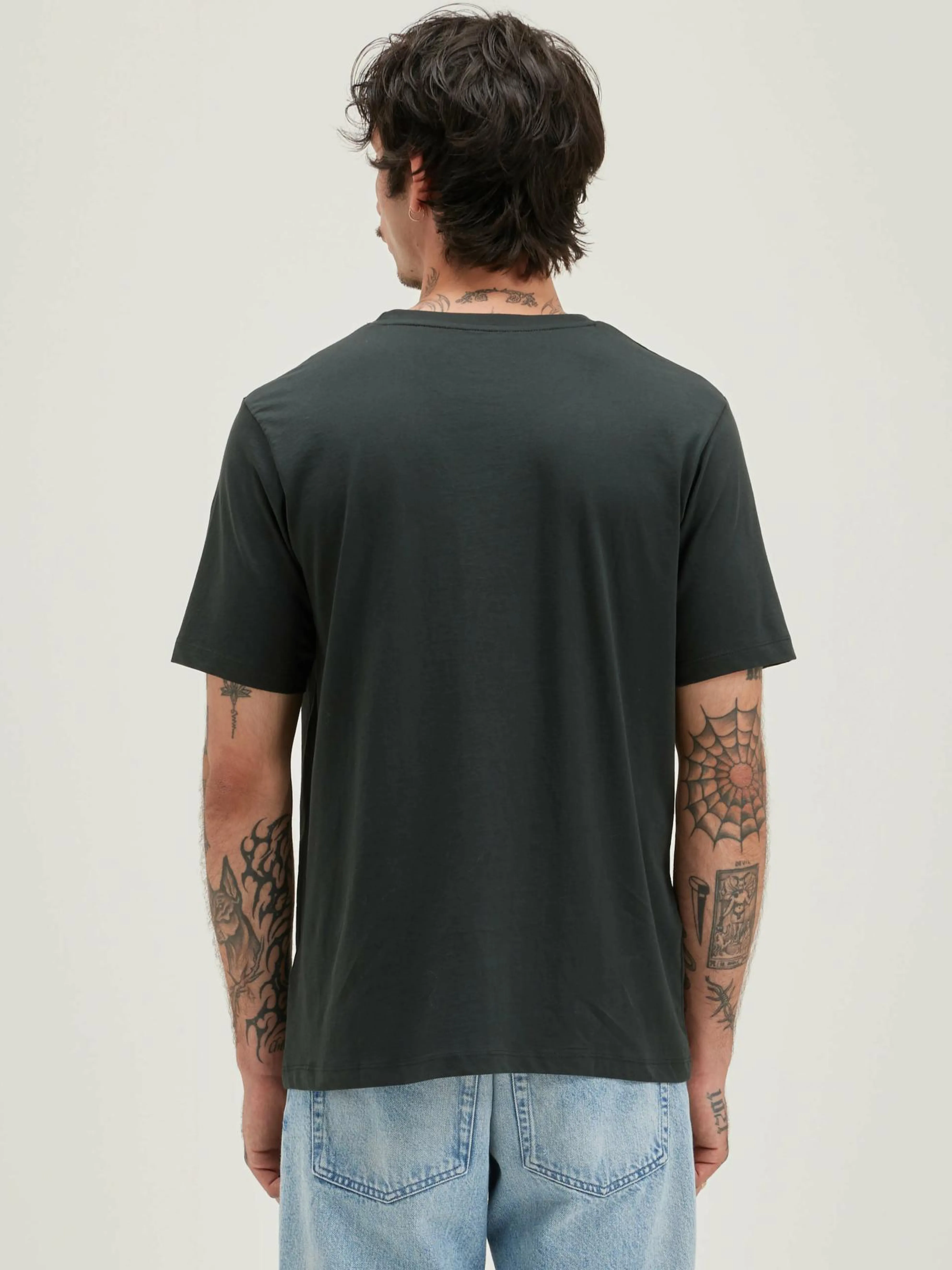 Klassiek t-shirt met korte mouwen in vintage donkergrijze katoen jersey.