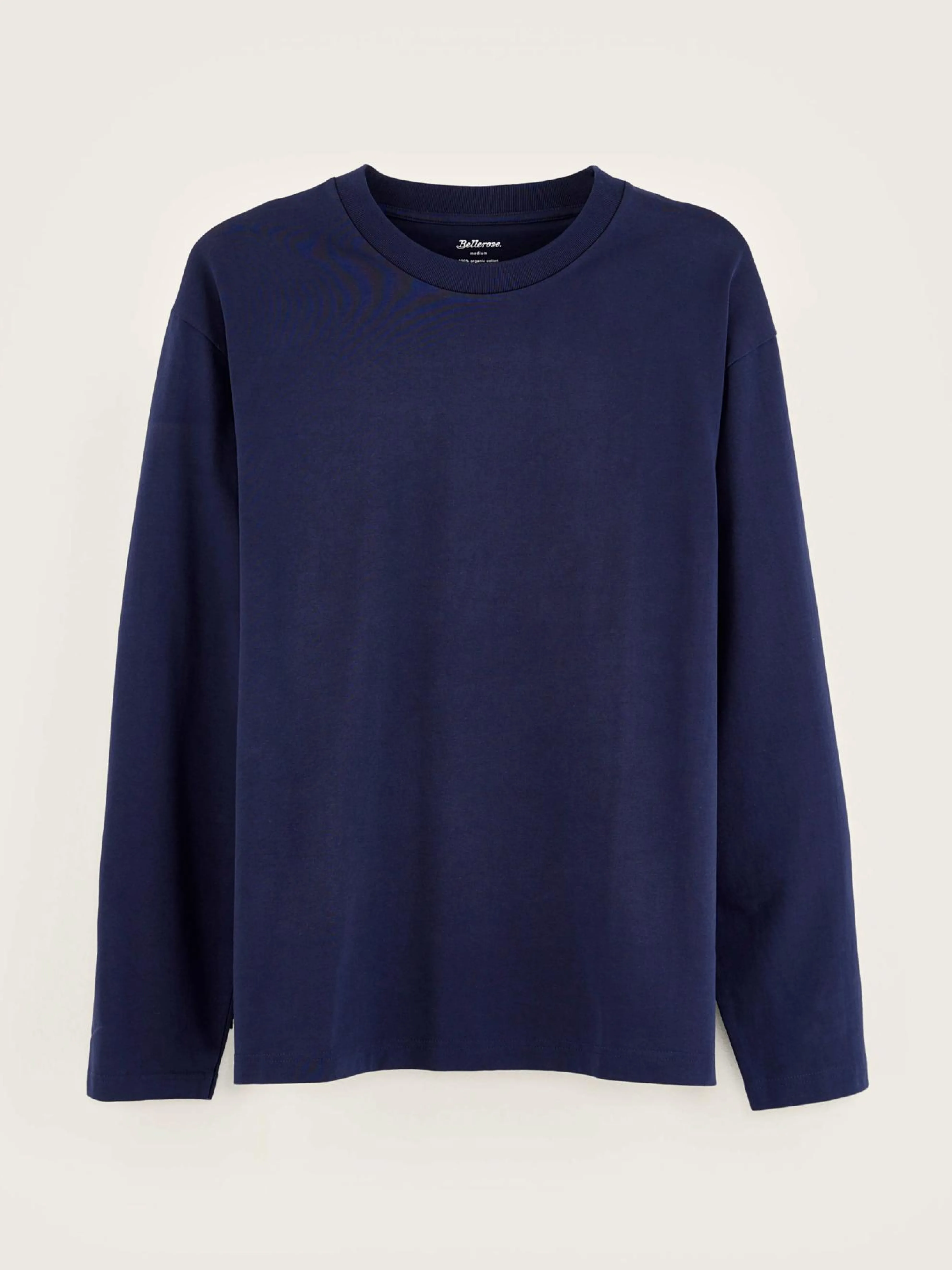 Relaxed fit, marineblauw T-shirt met lange mouwen van zware katoenjersey.