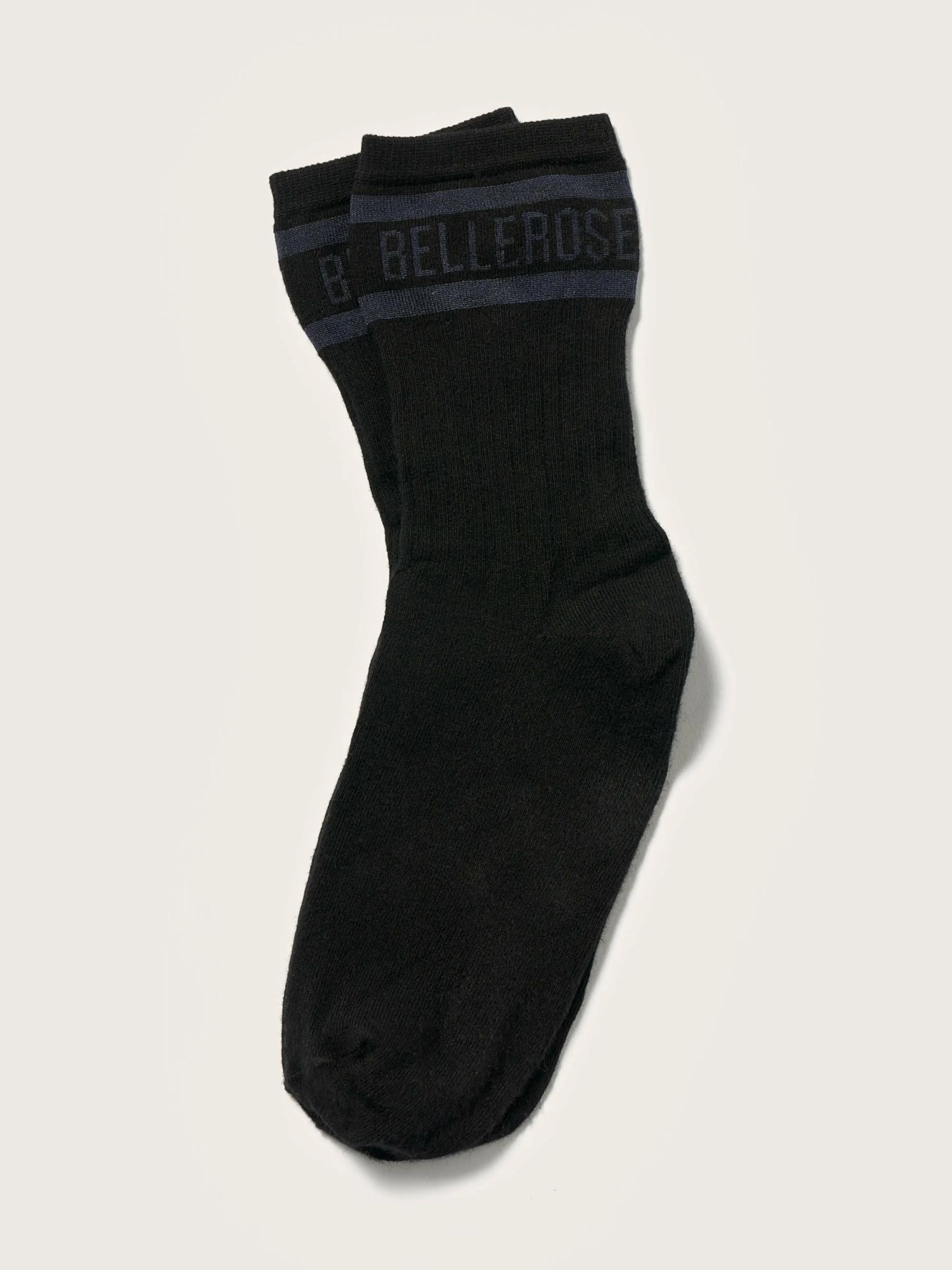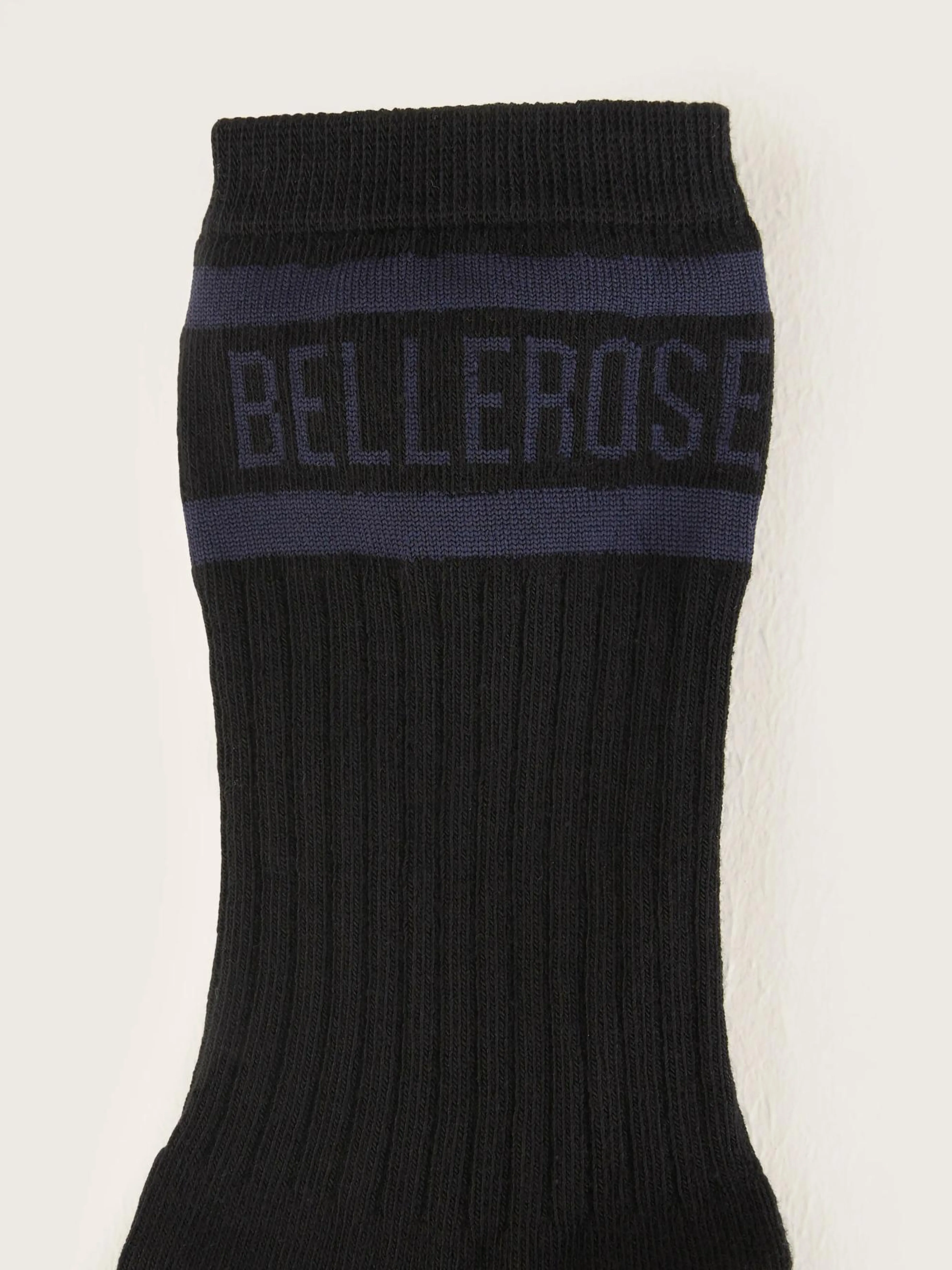 Klassieke sokken in zwart met Bellerose-logo in blauw op de enkel.