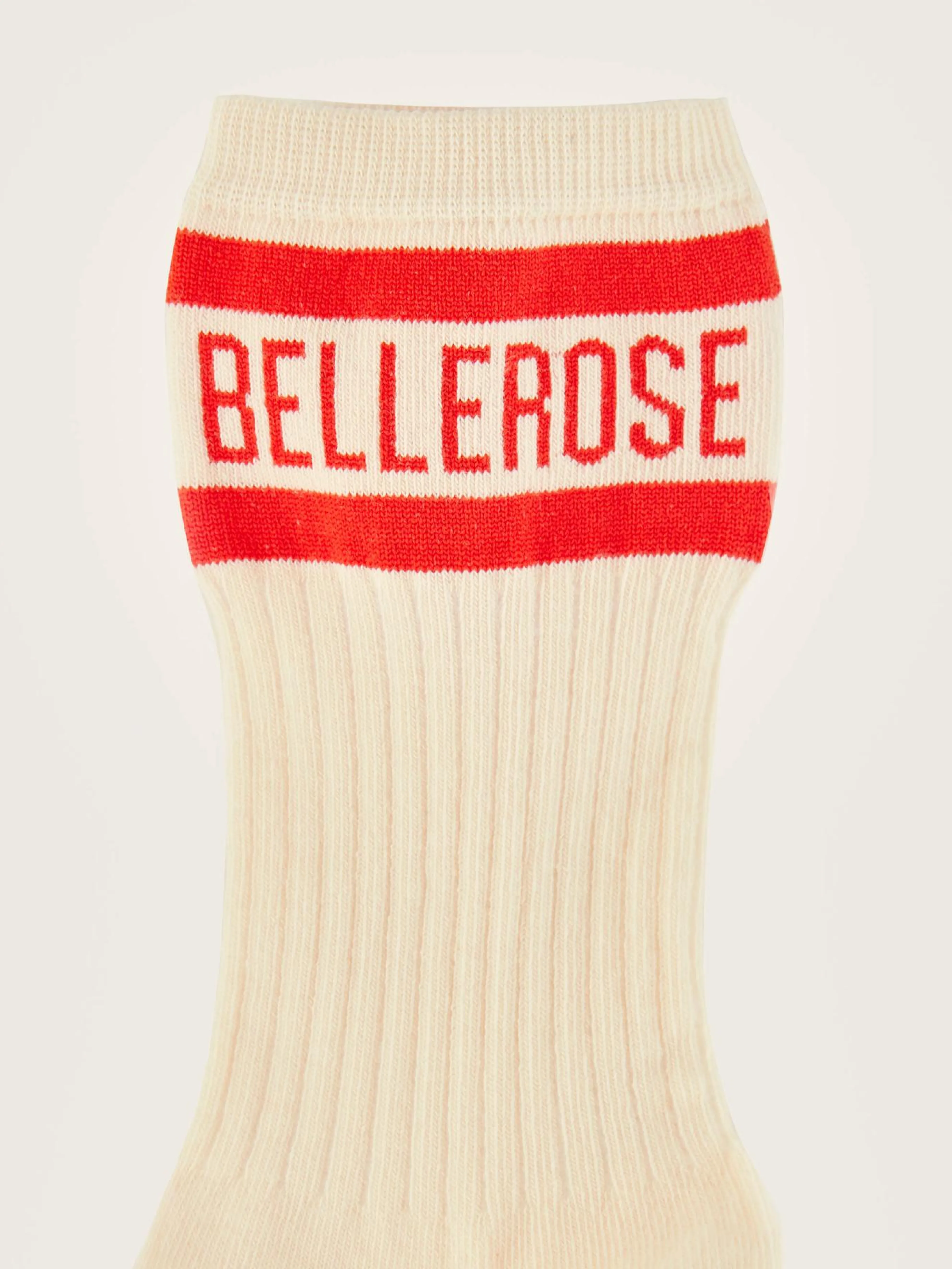 Klassieke sokken in ecru met Bellerose-logo in rood op de enkel.